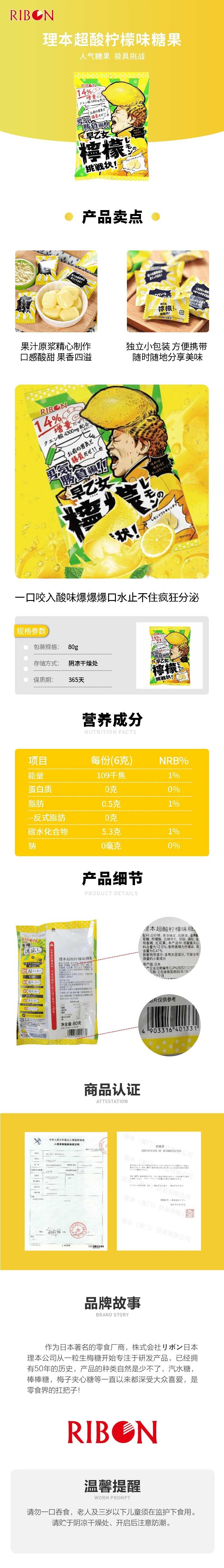 Imported Libenjin Sour Lemon Flavor Sandwich Candy 68g