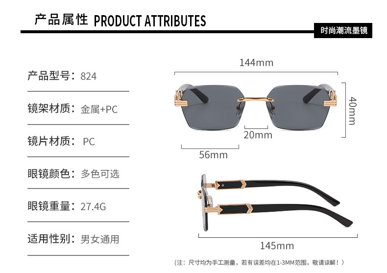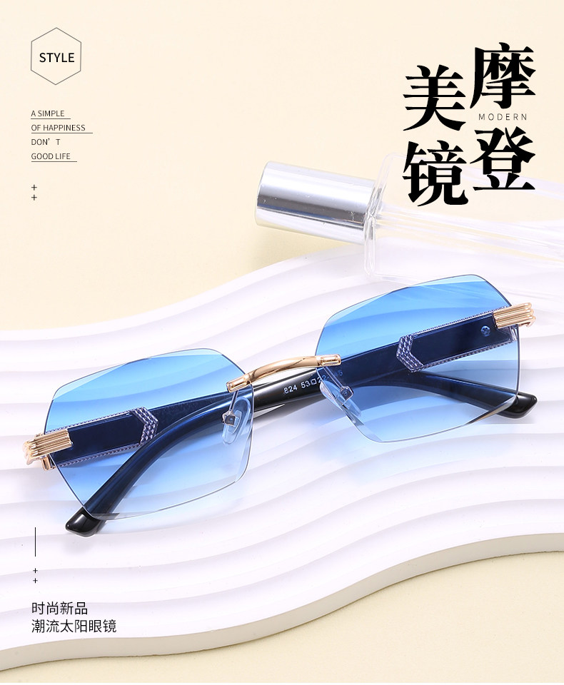 小脸墨镜女高级感ins无框时尚防紫外线强光太阳眼镜开车专用男士