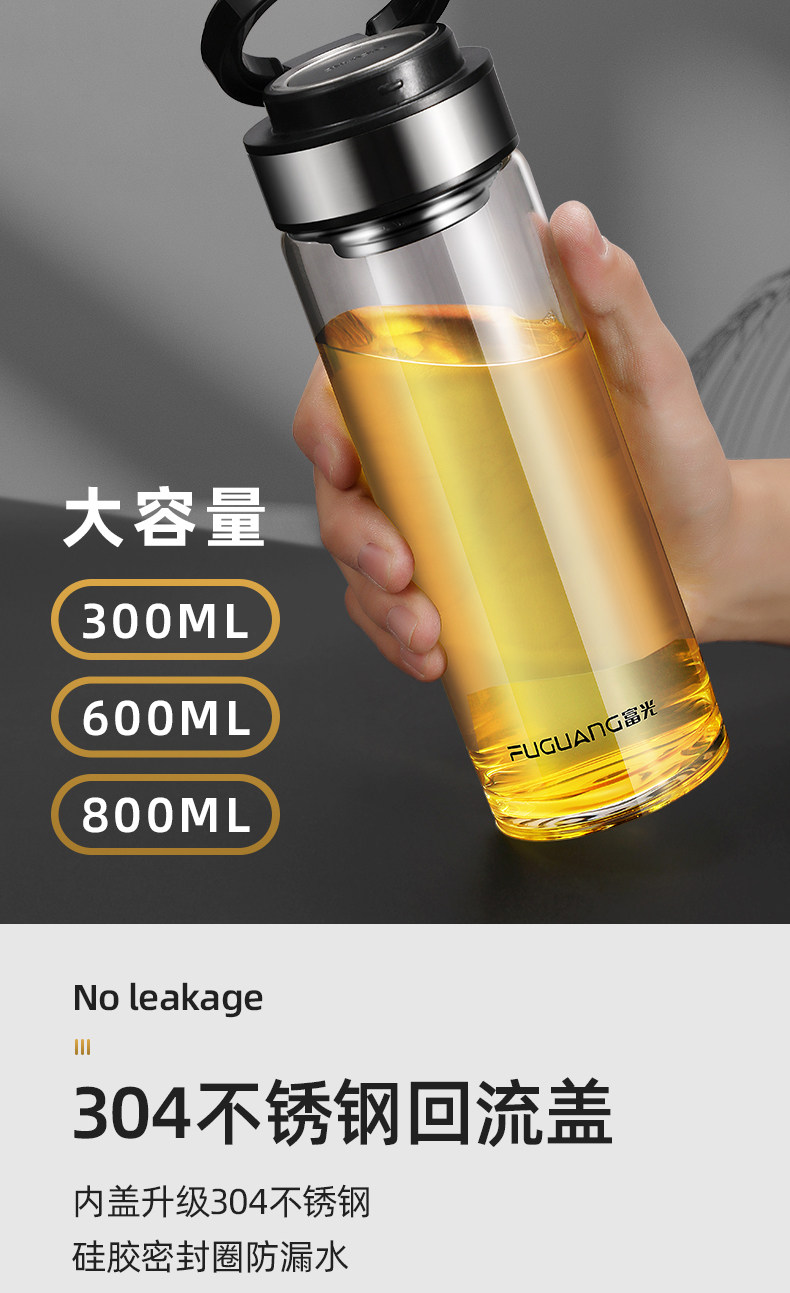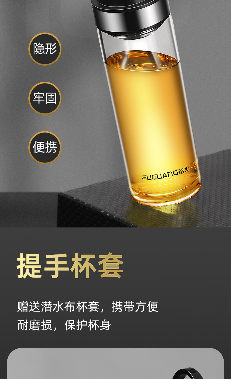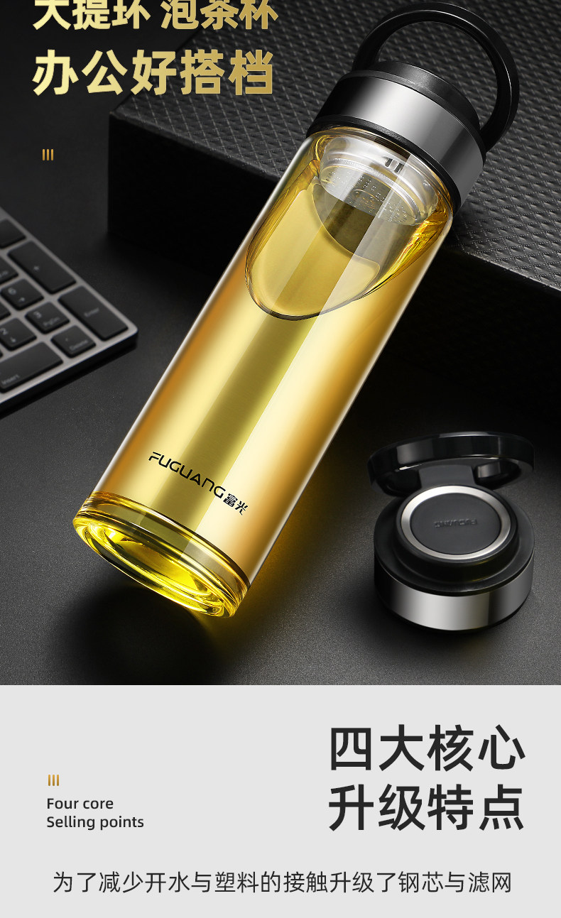 Fuguang Single-Layer Glass Cup for Men, Large Capacity Water Cup, Double-Layer Tea and Water Separation Tea Cup, Household Personal Use Cup