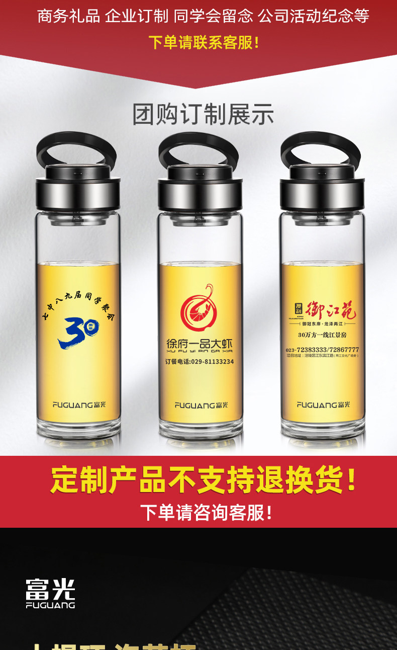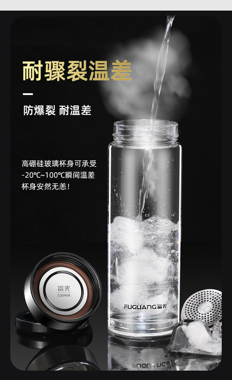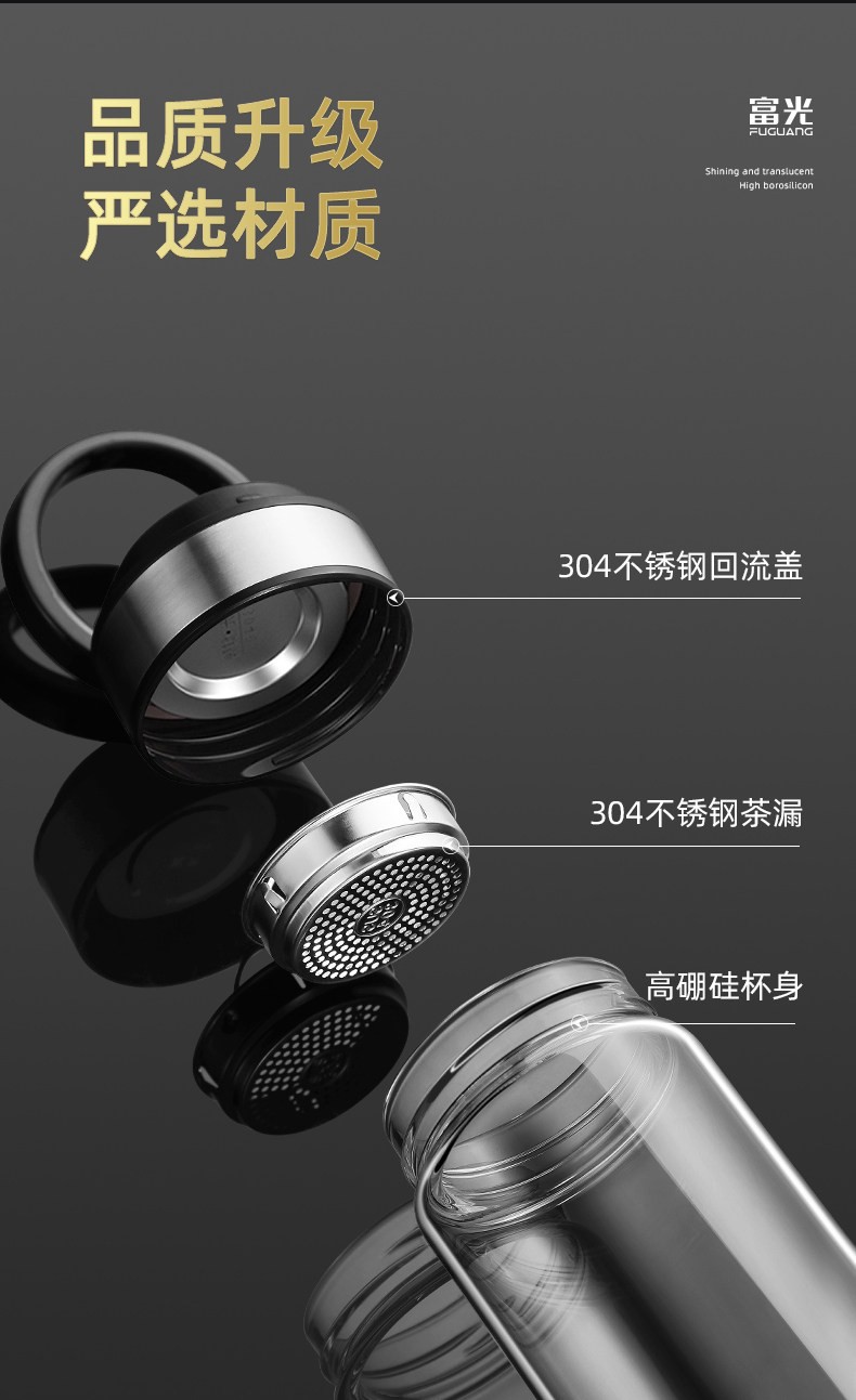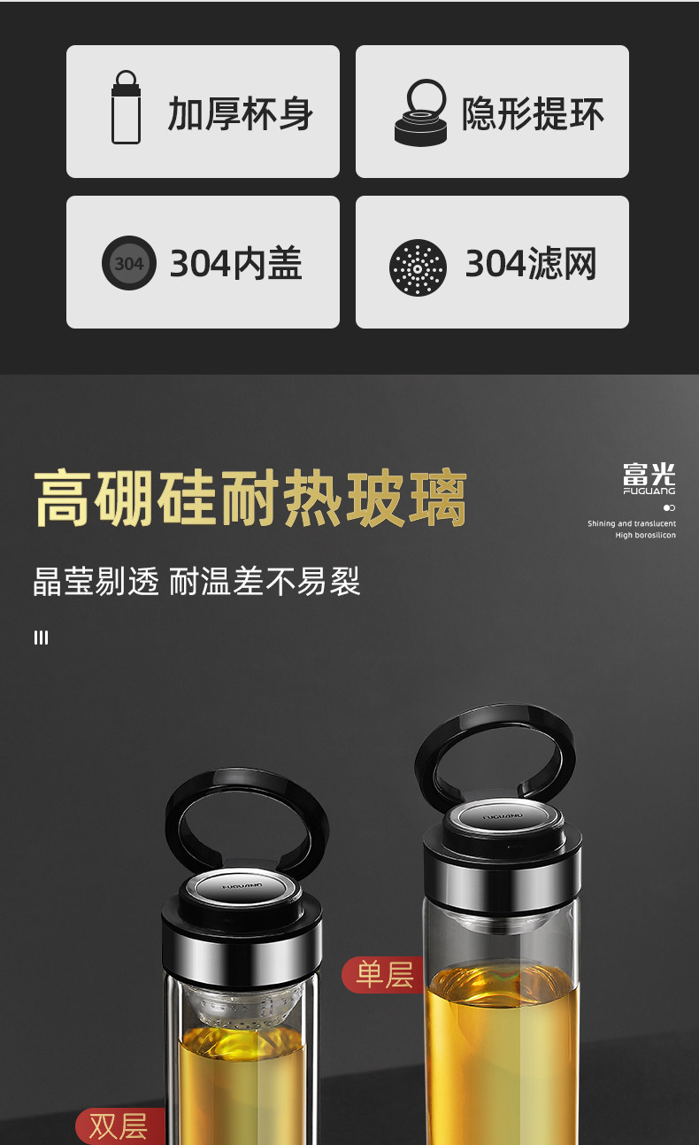 Fuguang Single-Layer Glass Cup for Men, Large Capacity Water Cup, Double-Layer Tea and Water Separation Tea Cup, Household Personal Use Cup