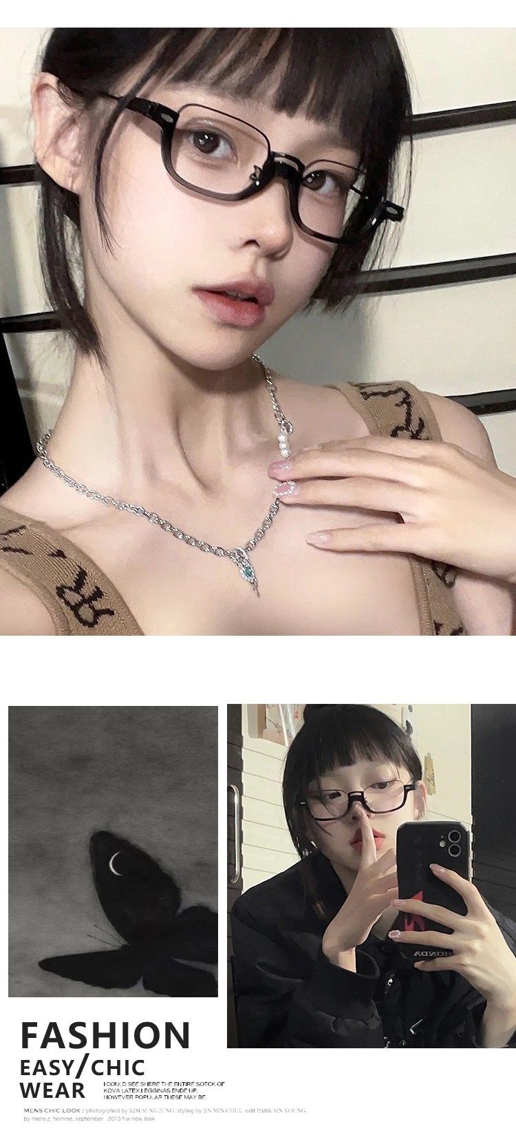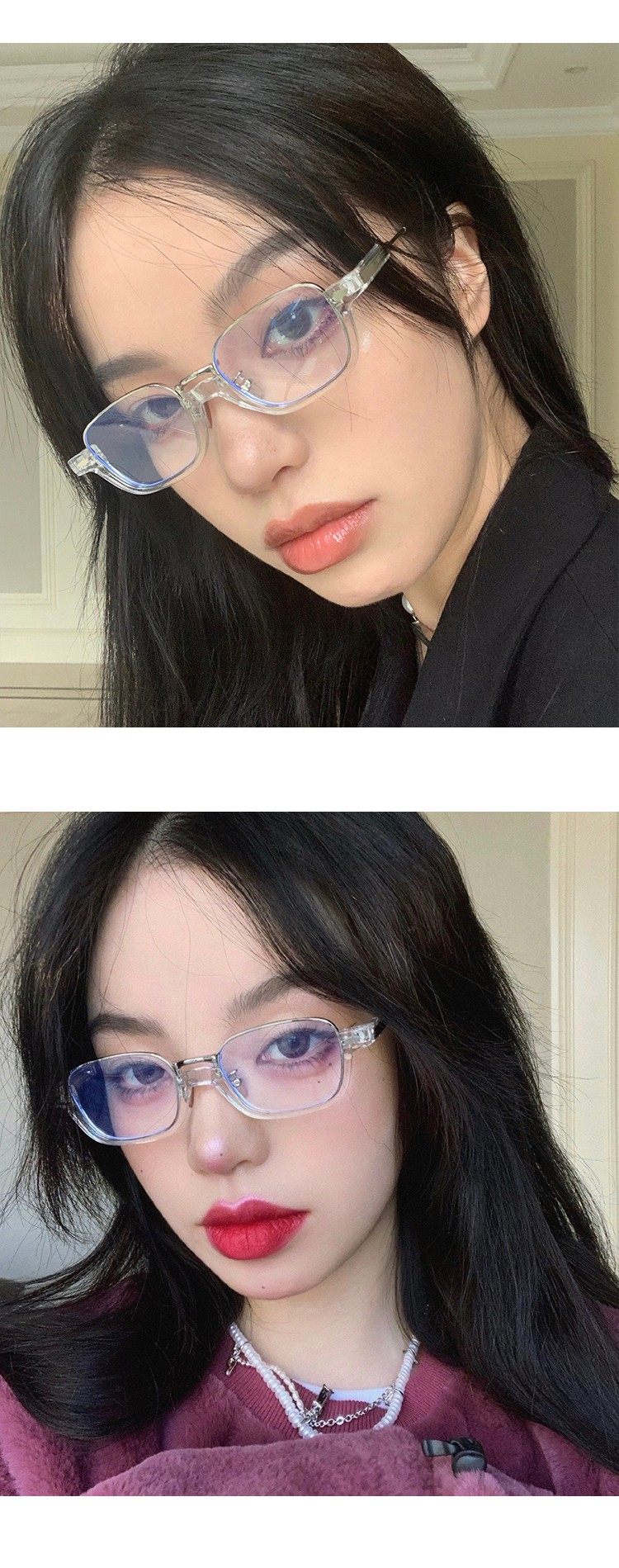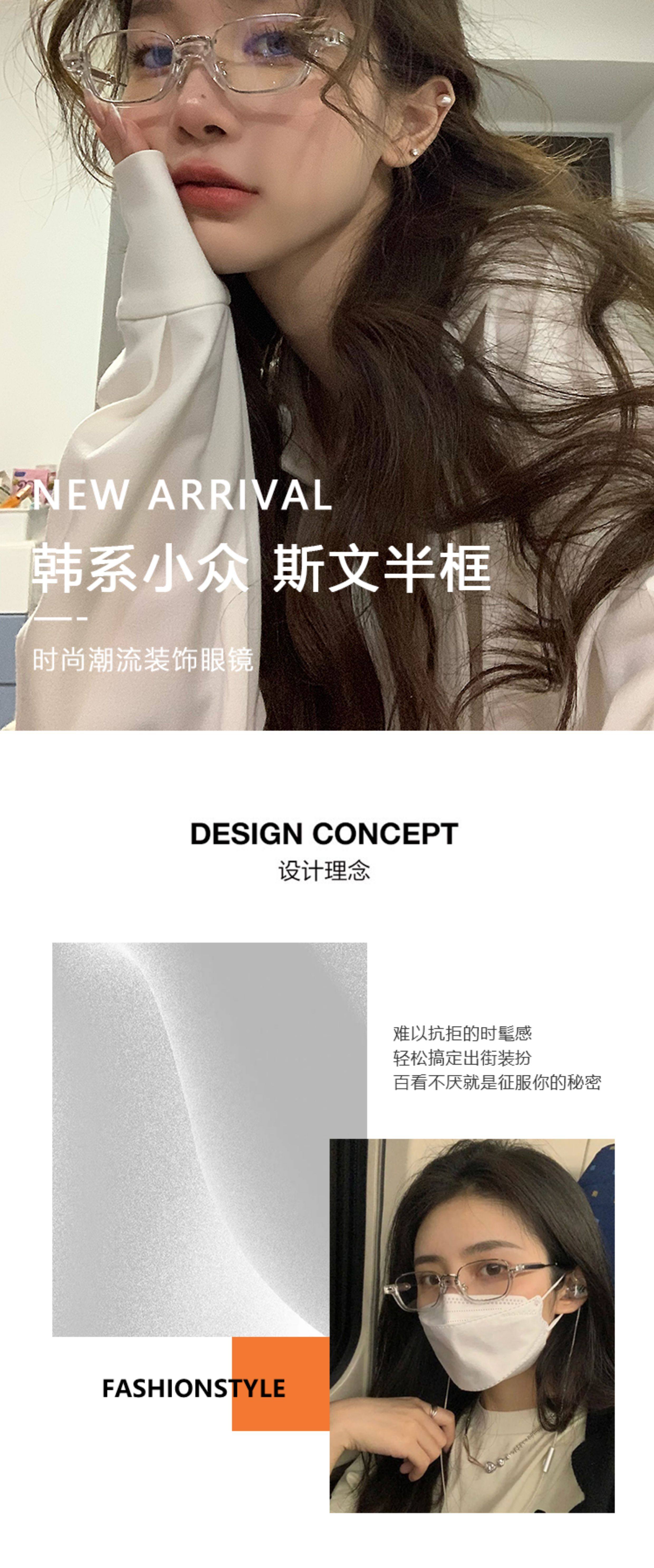 Niche Design Transparent Half-Frame Eyeglass Frames for Women, a Makeup-Free Essential, Small Frame Decorative Prescription Glasses That Can Be Customized with Prescription Lenses