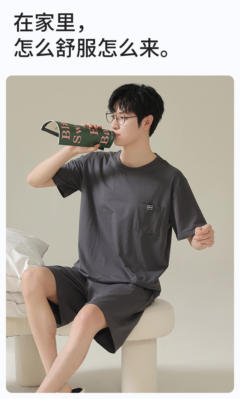 Catman pajamas men's spring and summer short-sleeved 2025 new cool teenagers large size home wear set can be worn outside