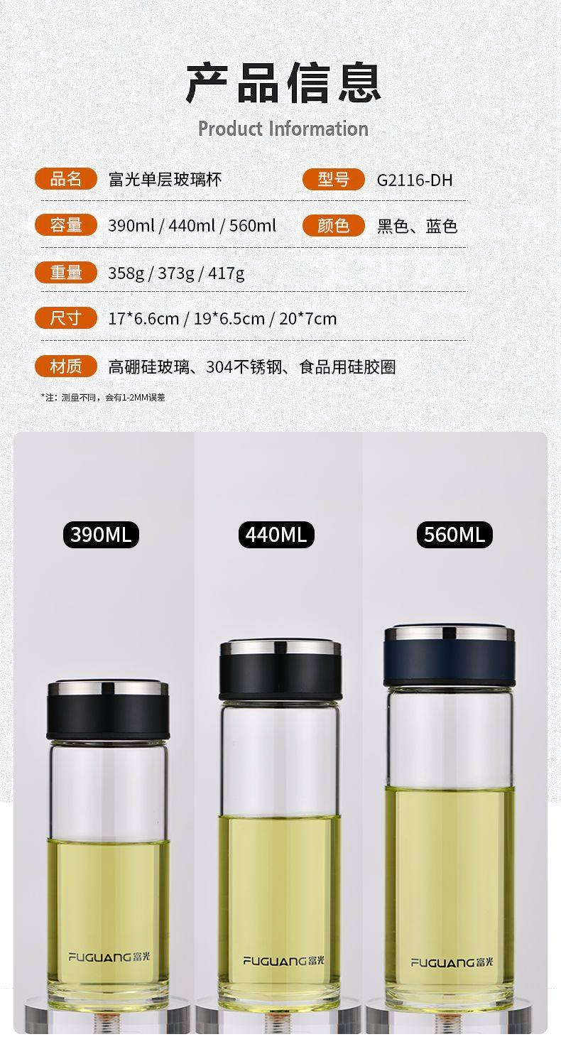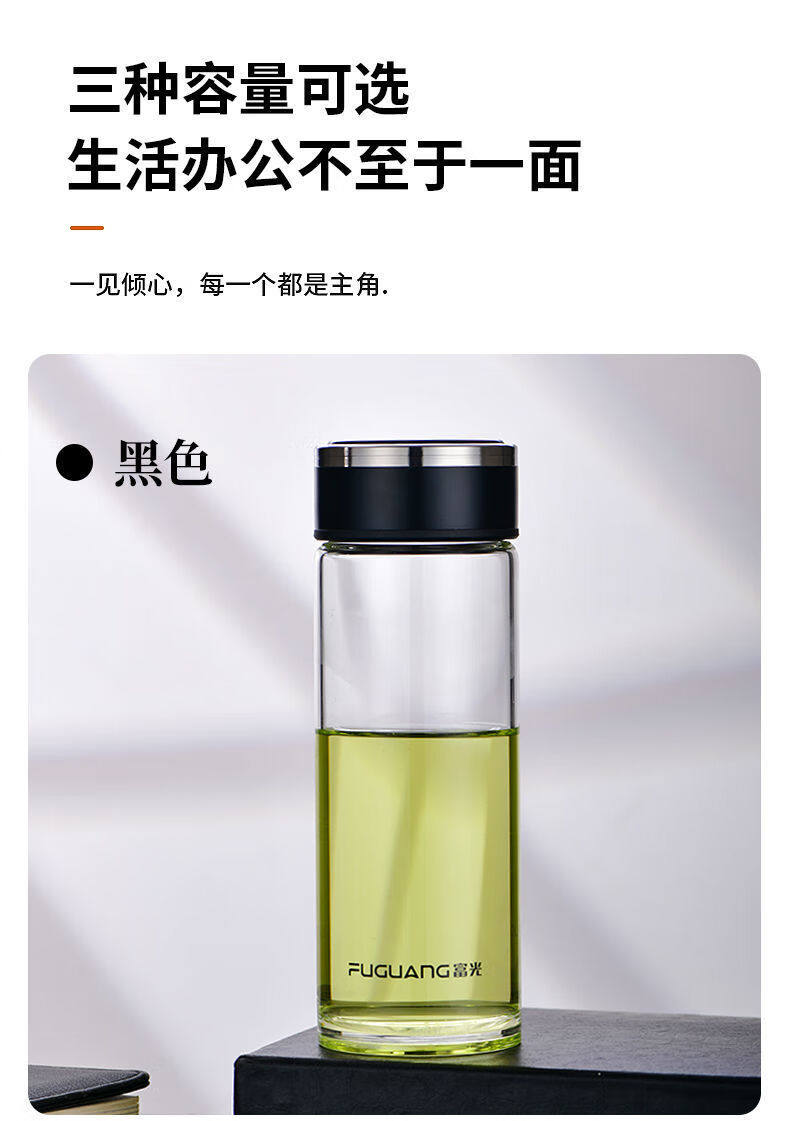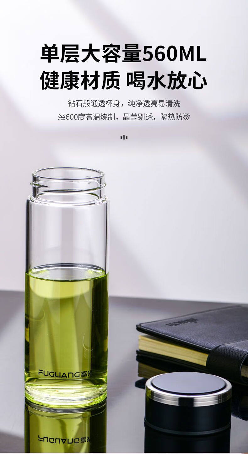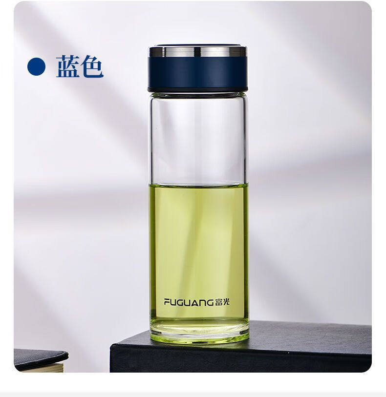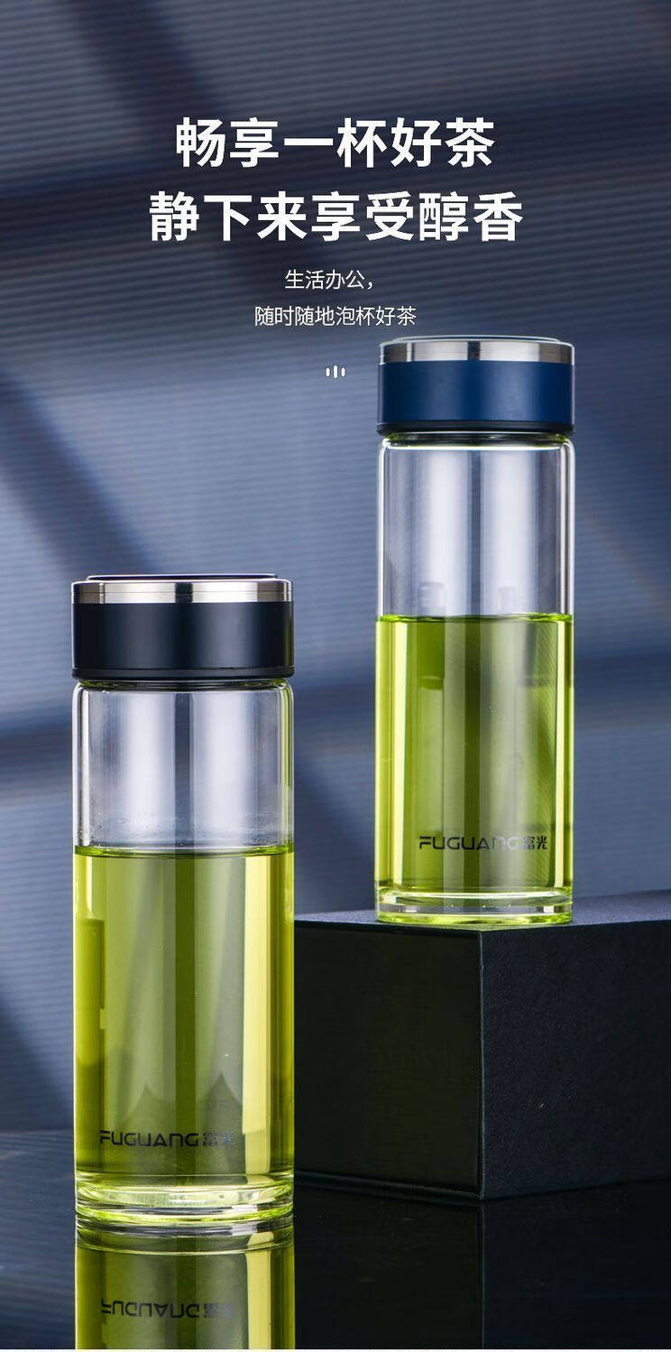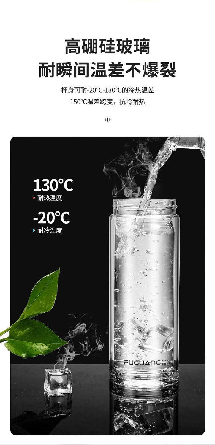Fuguang Double-Layer Glass Cup for Men and Women, Single-Layer Thickened High Borosilicate Water Cup, Large Capacity Tea-Water Separation Cup