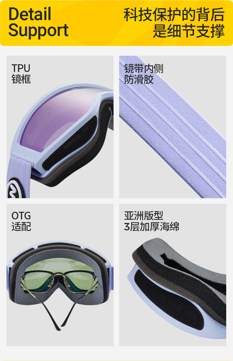 NANDN snow goggles, American style double-layer anti-fog ski goggles, all-match snow goggles, ski goggles for women