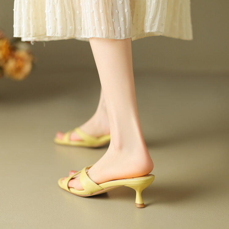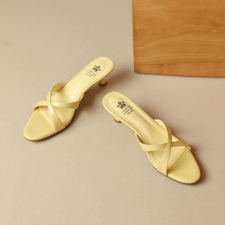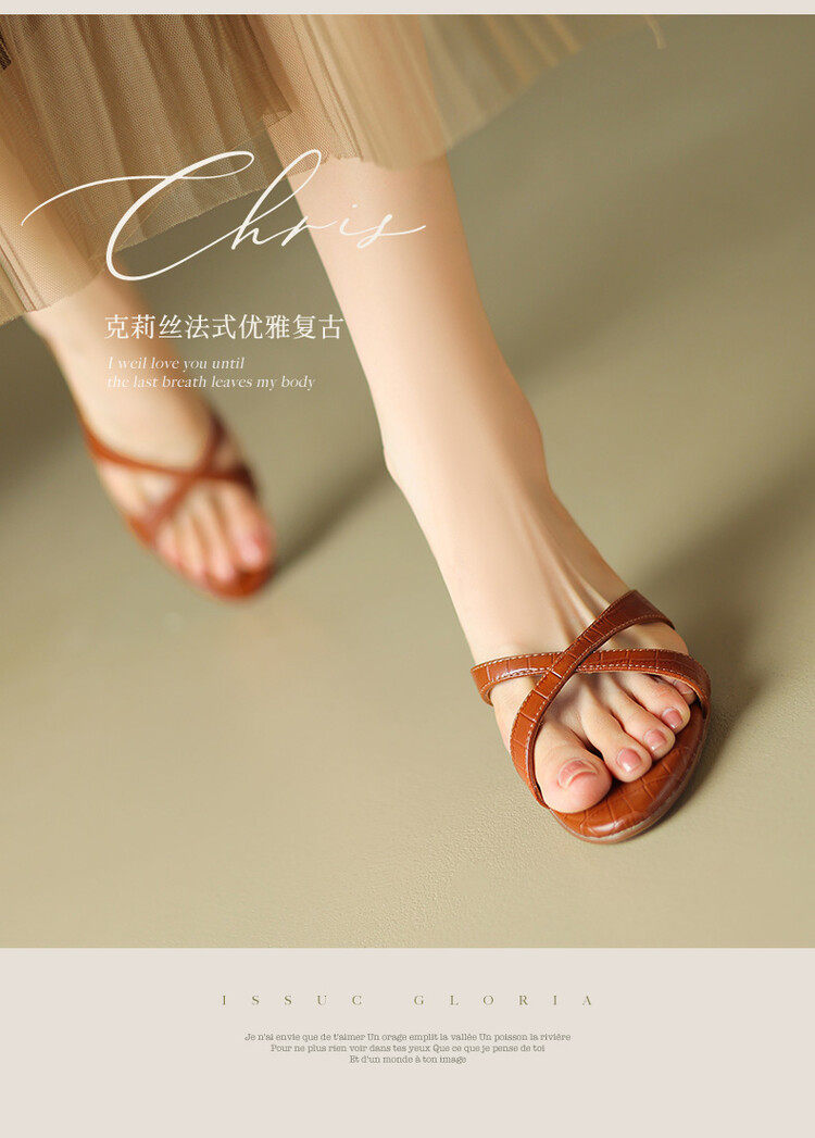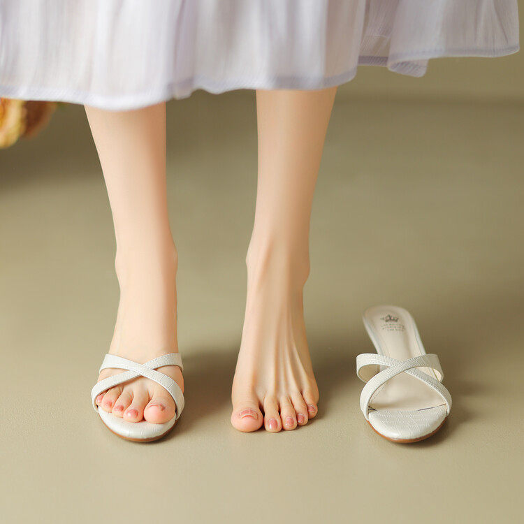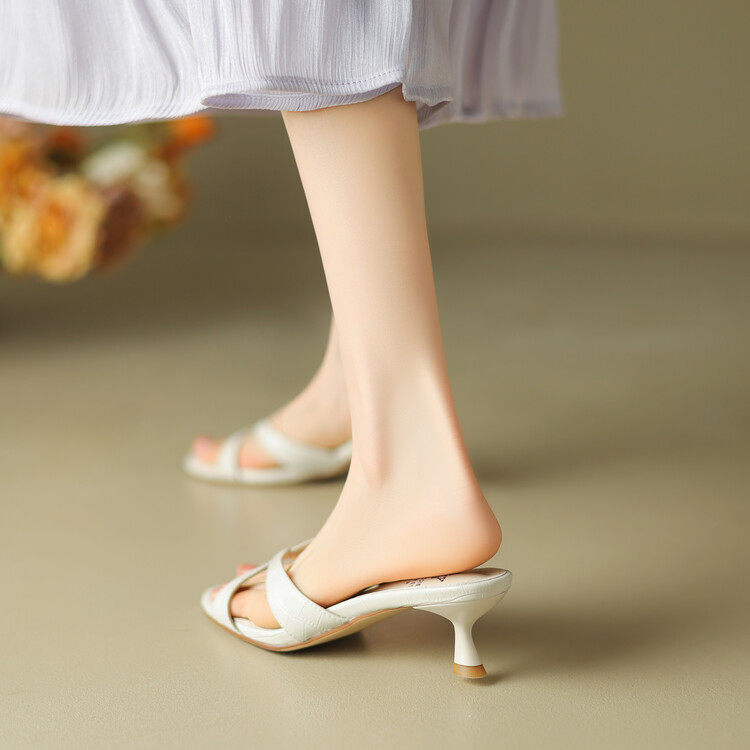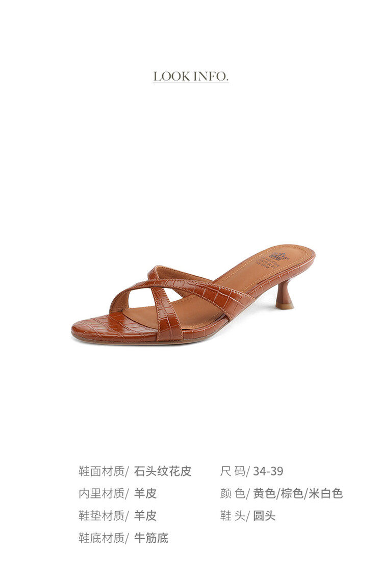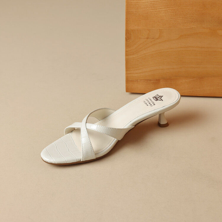 Zi Dou LAOSHU Small Heeled Slippers for Women, Summer Outdoor Wear, Cross-Strap Kitten Heel, High Heel, White French Niche Style, Thin Heel Sandals