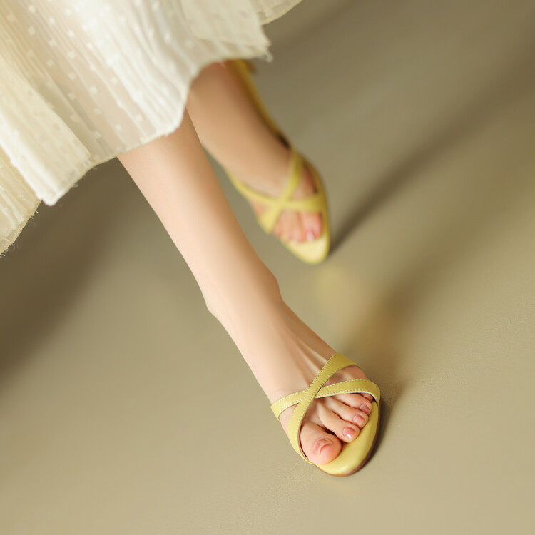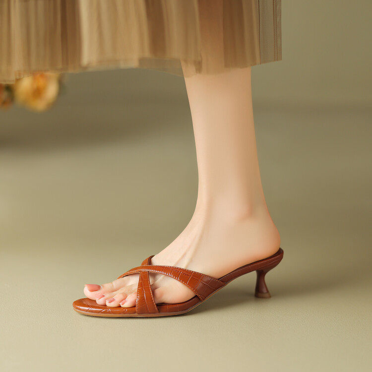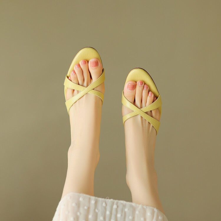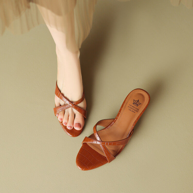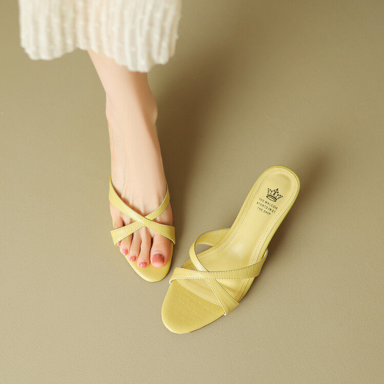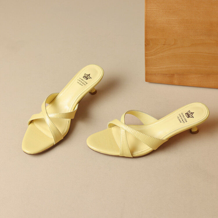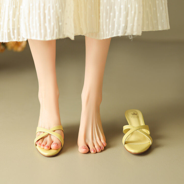 Zi Dou LAOSHU Small Heeled Slippers for Women, Summer Outdoor Wear, Cross-Strap Kitten Heel, High Heel, White French Niche Style, Thin Heel Sandals