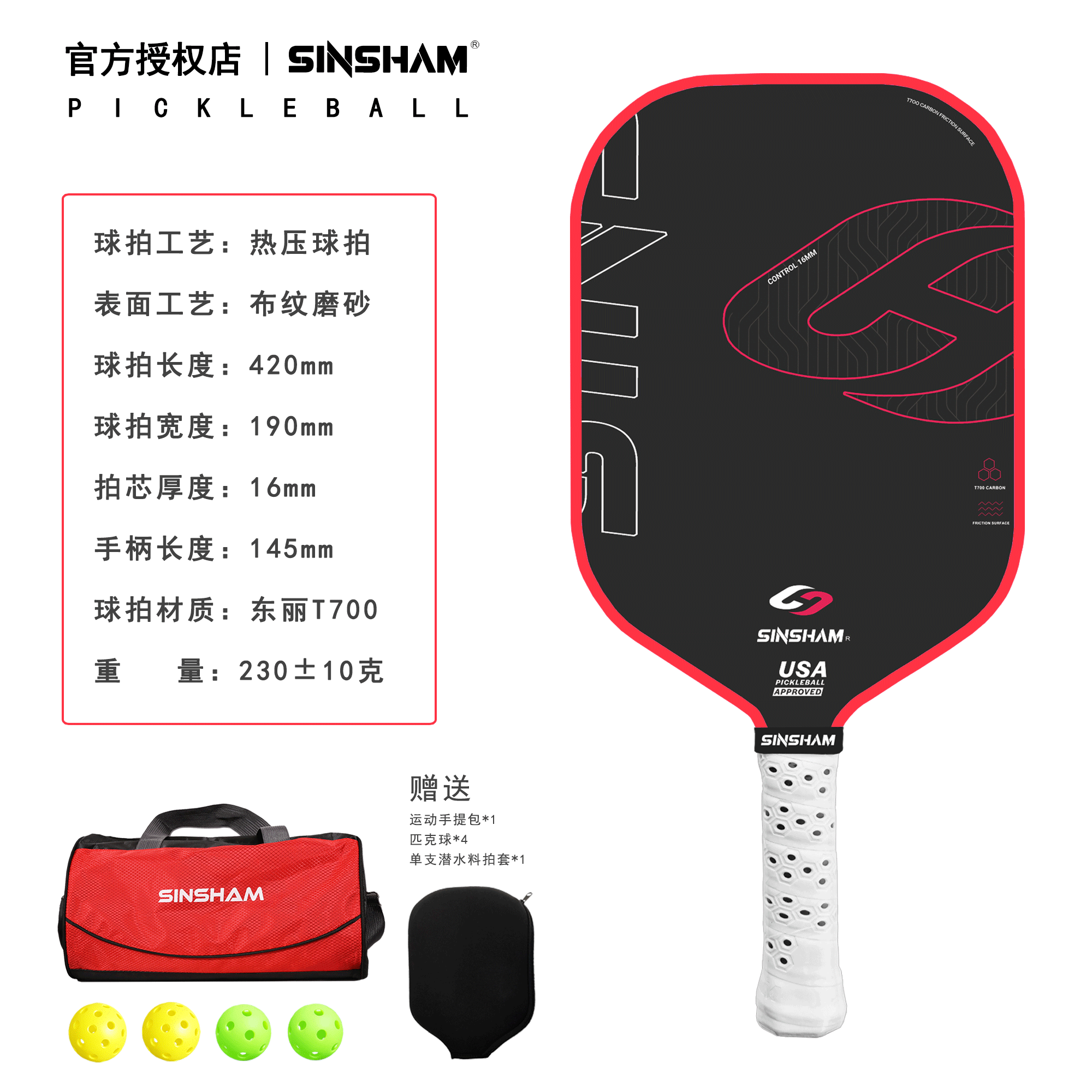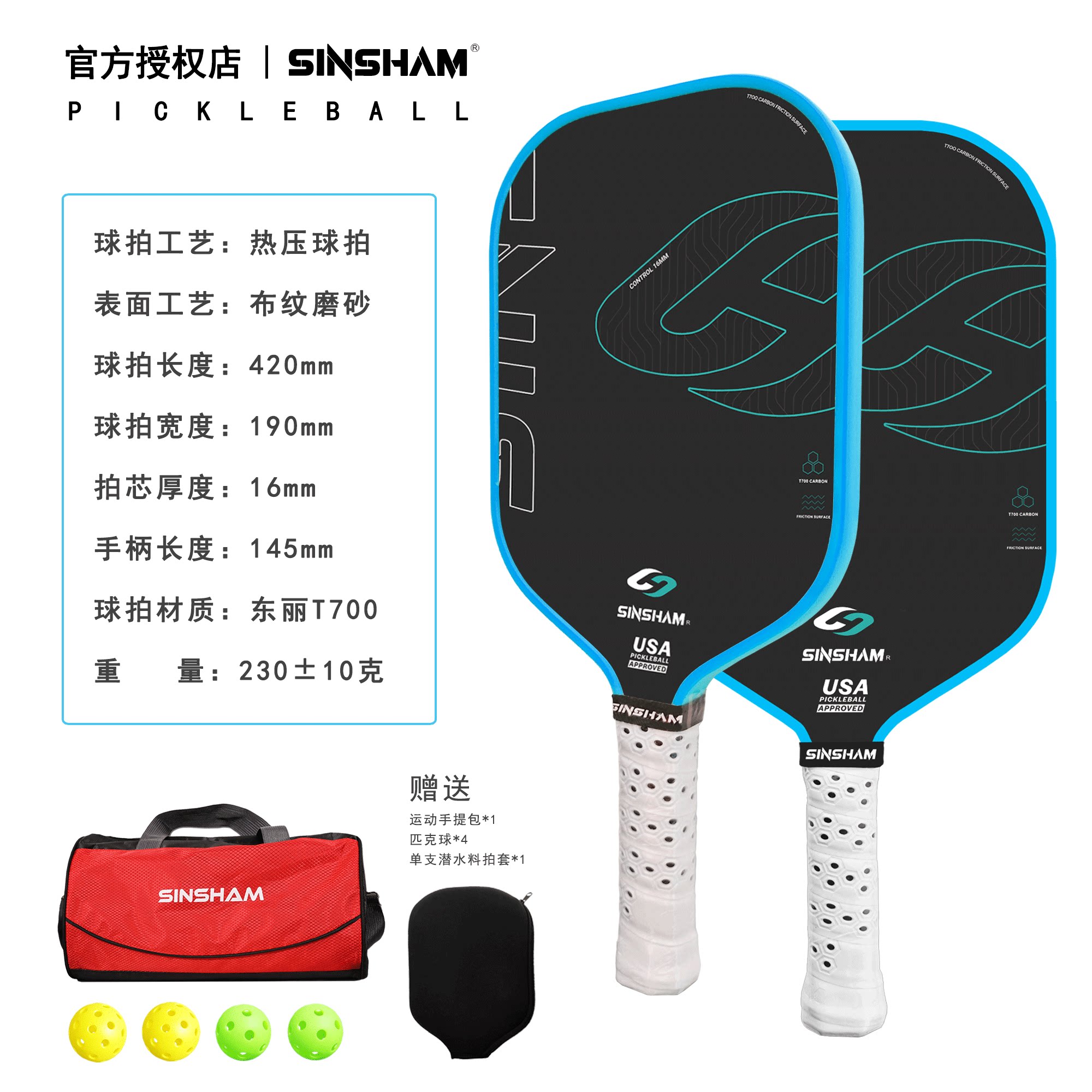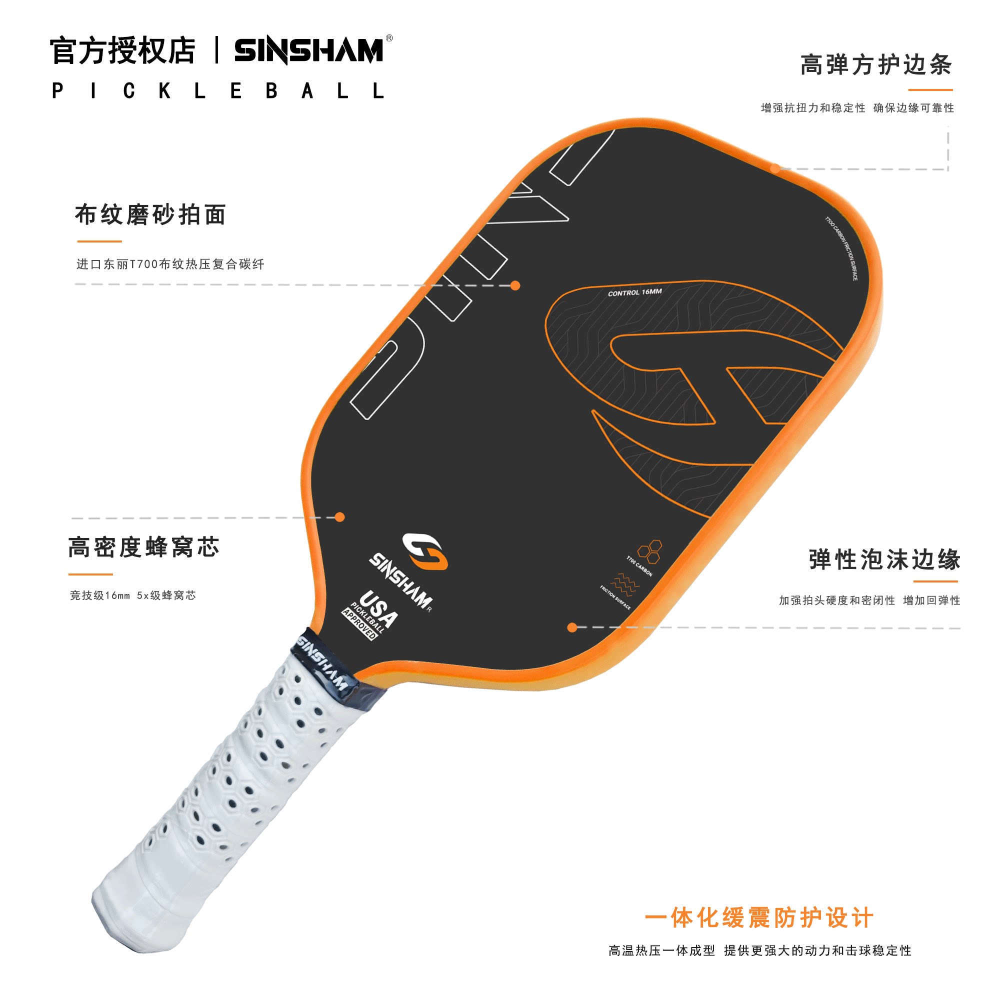 Sinsham Hot-Pressed Textured Matte T700 Toray Carbon Fiber Sponge Core Professional-Grade Pickleball Paddle