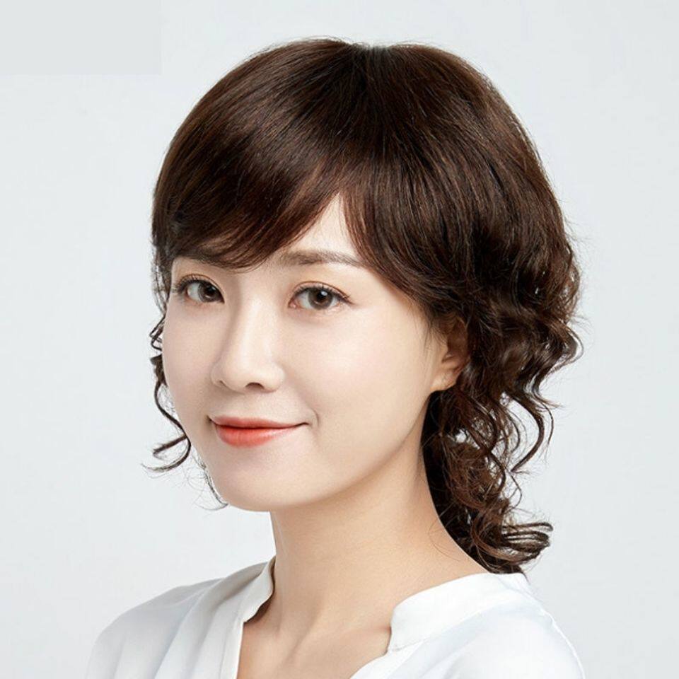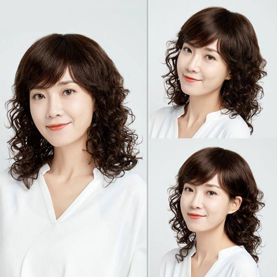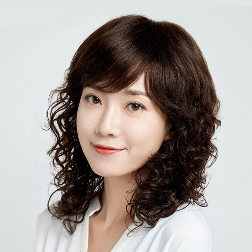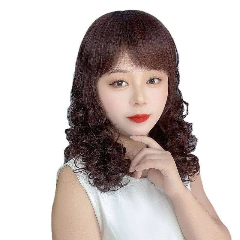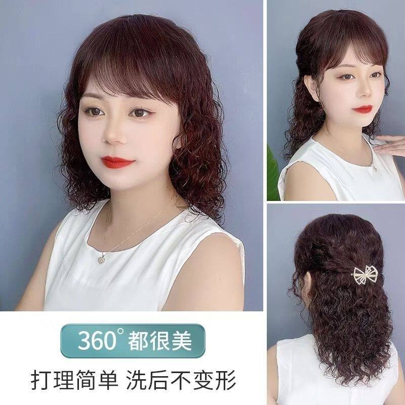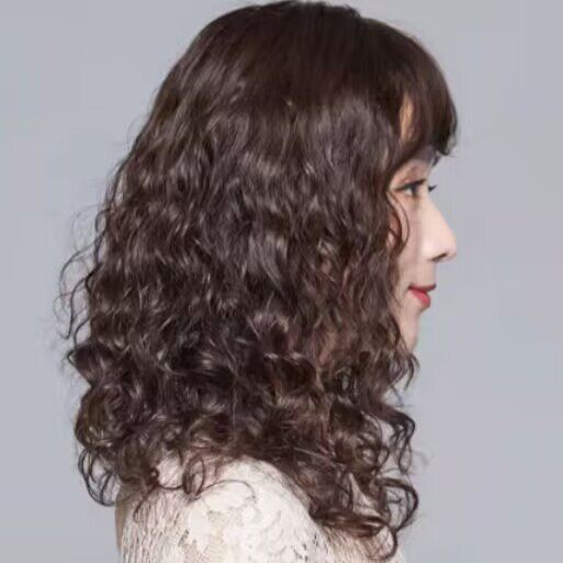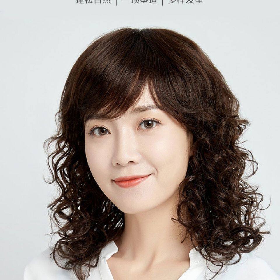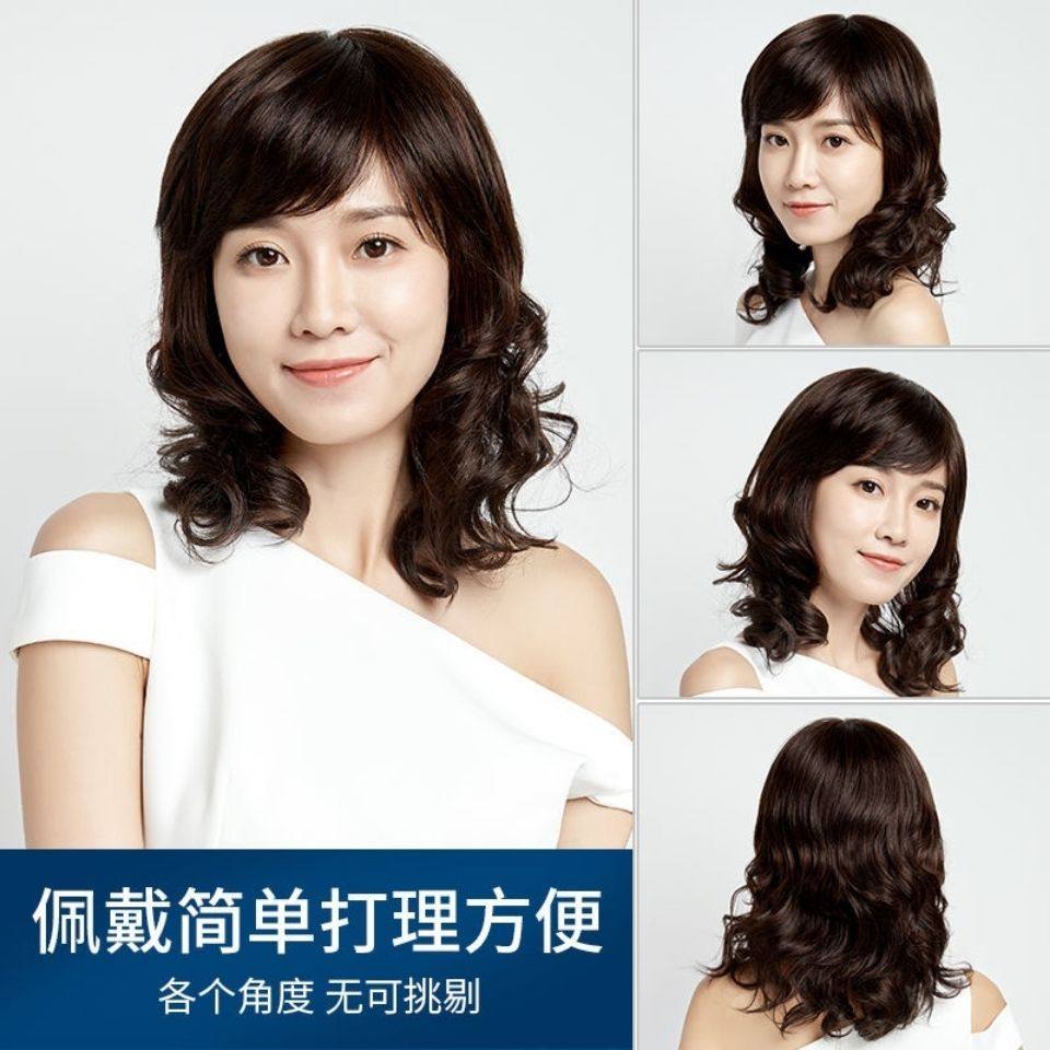 New wig for middle-aged and elderly ladies with medium and long curly hair, realistic and fluffy, high-end wool curls, simulated human hair full headgear