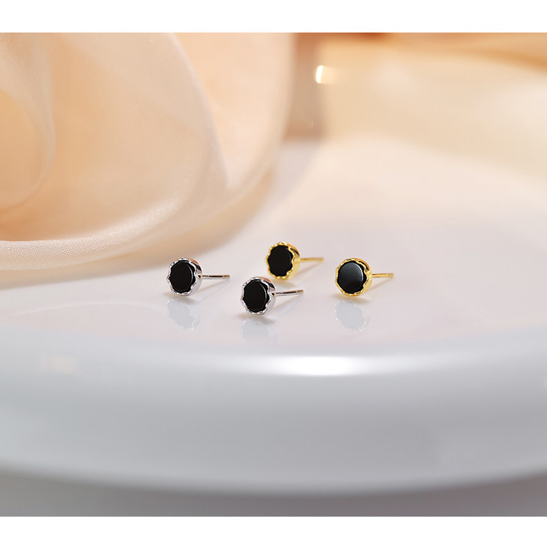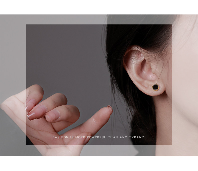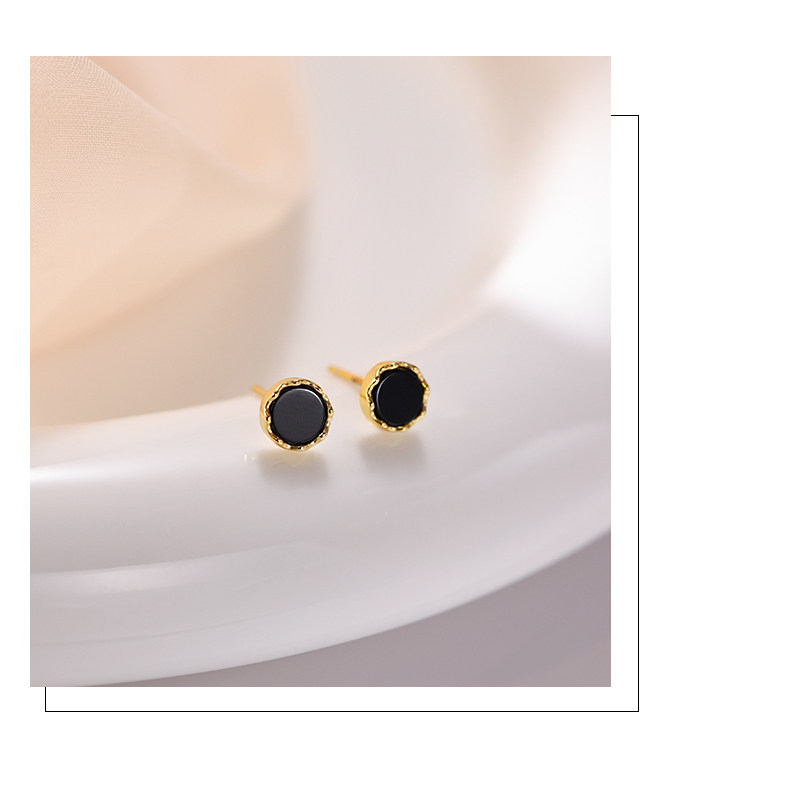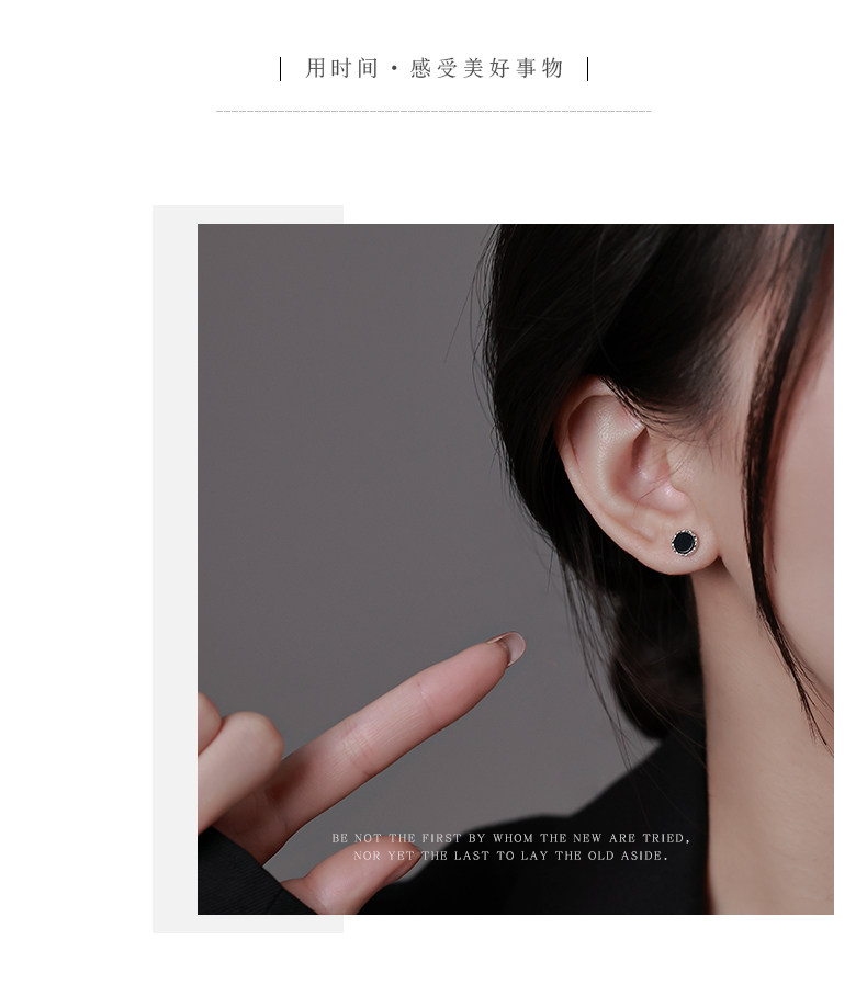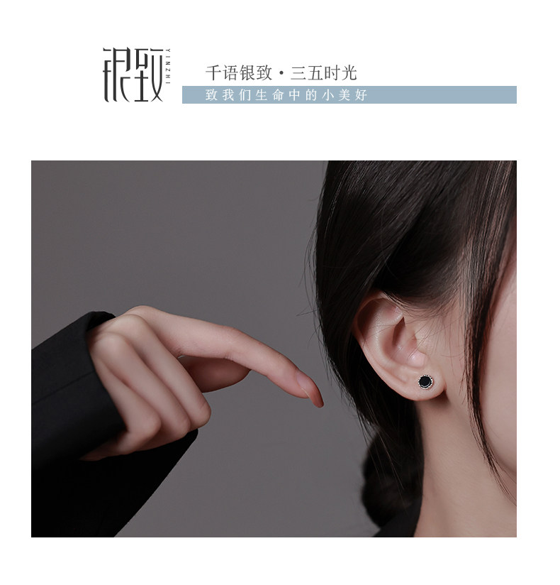 925 silver earrings women's black earrings 2025 new popular style ear piercing niche design high-end temperament earrings