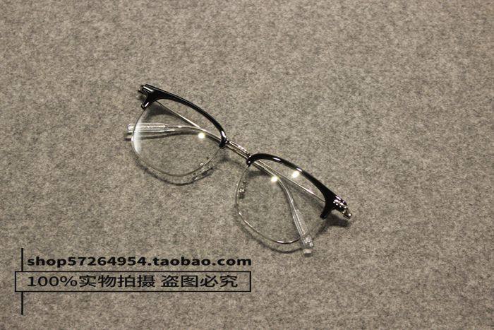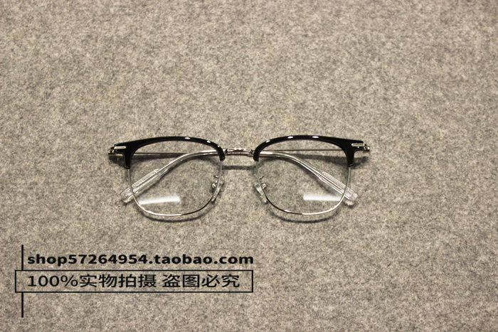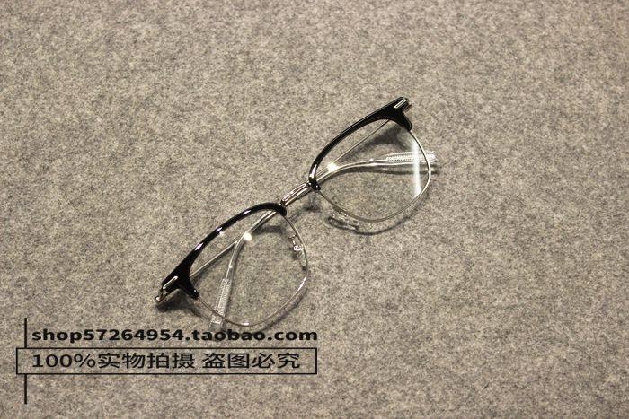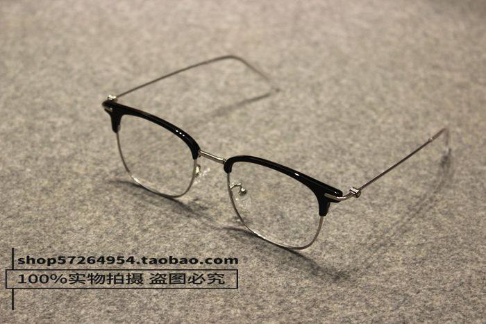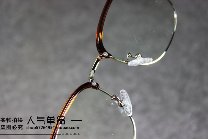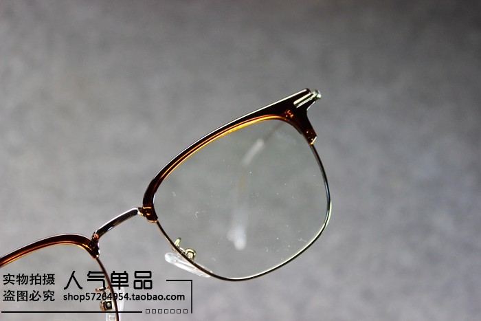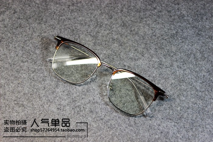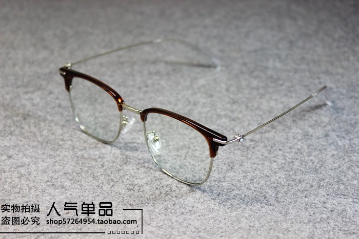 British Style New Retro Black Tea-Colored Metal Thin-Rimmed Half-Frame Non-Prescription Glasses for Men and Women with Blue Light Protection
