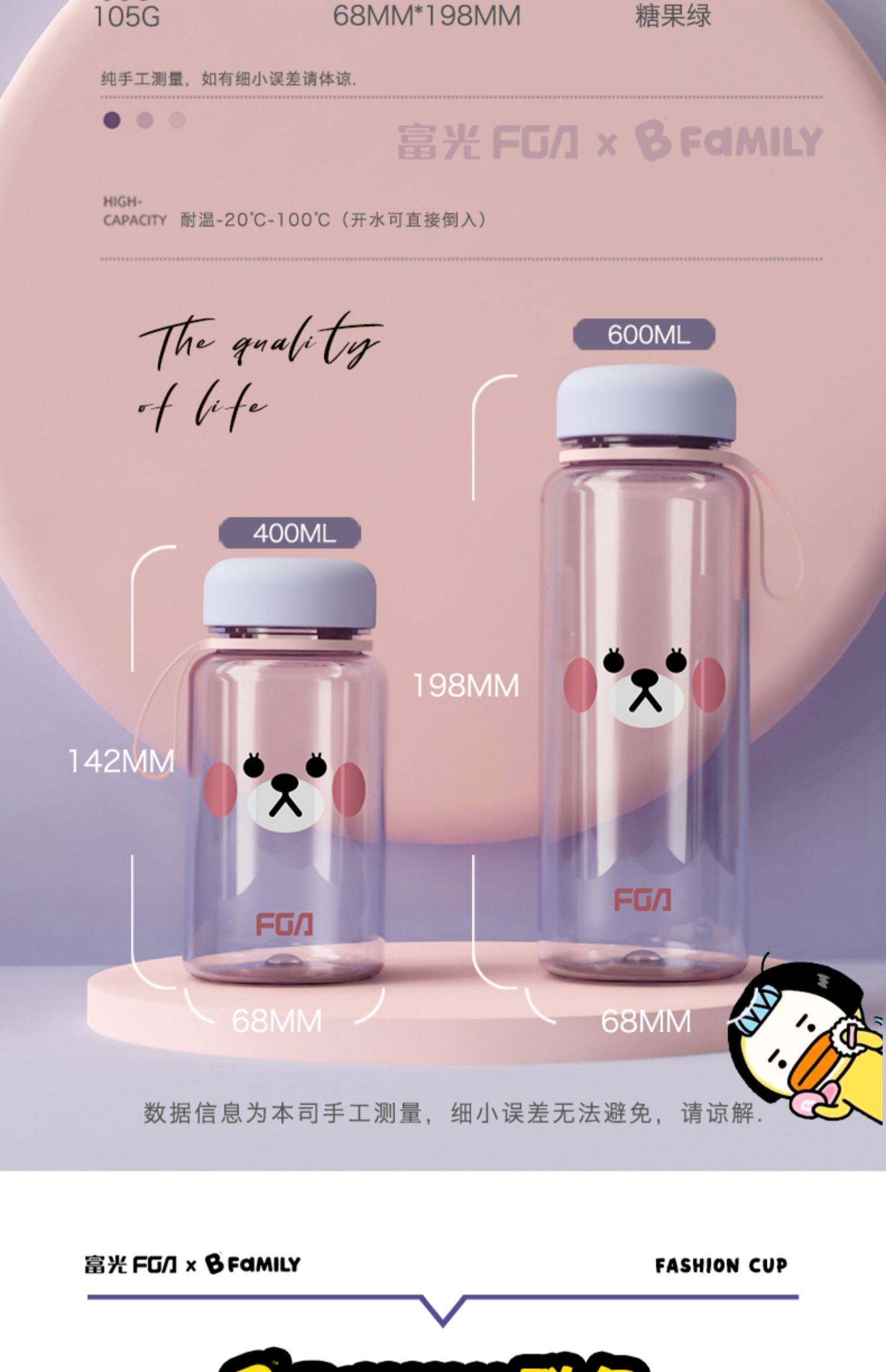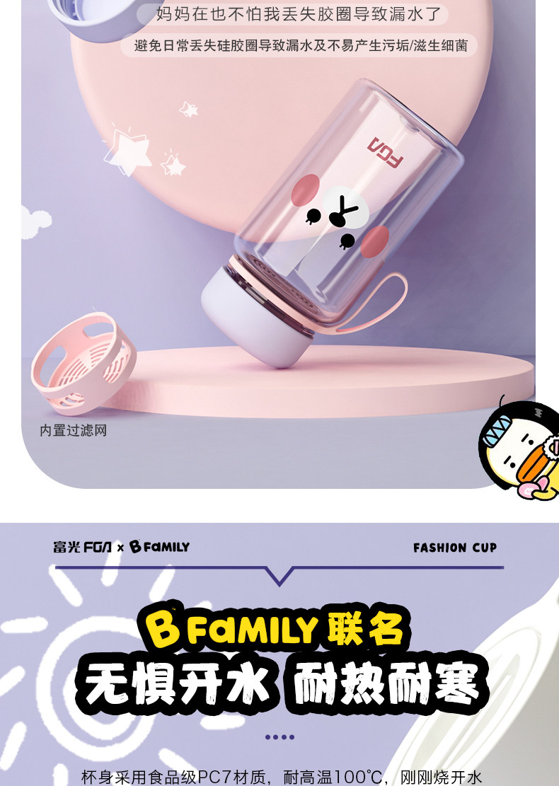 Fuguang Water Cup for Women with Good Looks, Outdoor Portable Plastic Cup for Kidsren and Students Going to School, Anti-Fall and High Temperature Resistant Cup
