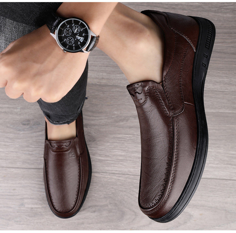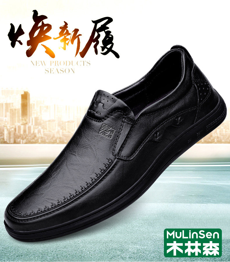 Mulinsen leather shoes men's genuine leather soft leather soft sole middle-aged and elderly dad's shoes men's slip-on business casual shoes