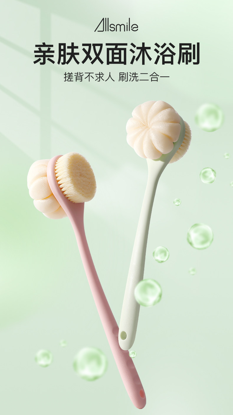 Allsmile Soft Bristle Bath Brush Bath Brush Back Brush Long-Handed Bath Artifact Brush Back Bath Flower Ball