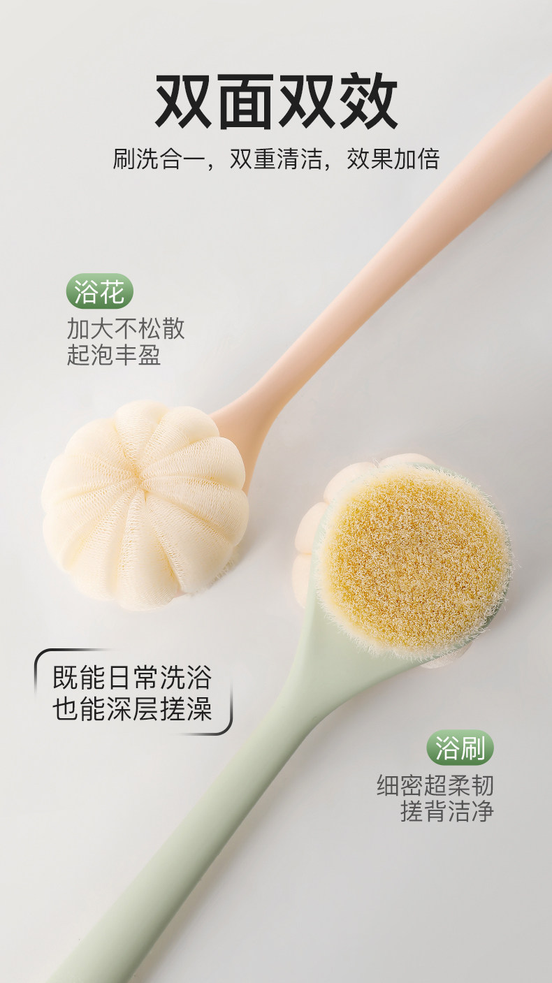 Sort by color Upgraded soft and lint-free bath brush with long handle (Jelly Bean Green),Use bath flowers on one side and scrub on the other - long-handled bath brush (taro purple),New long handle bath brush-emerald green,New long handle bath brush-Spring powder,New long-handled bath brush-Emerald Green 1+Spring Pink 1,New long-handled bath brush - spring powder + long-handled shampoo comb - mousse powder,New long handle bath brush - spring powder + foot scrub - shell white