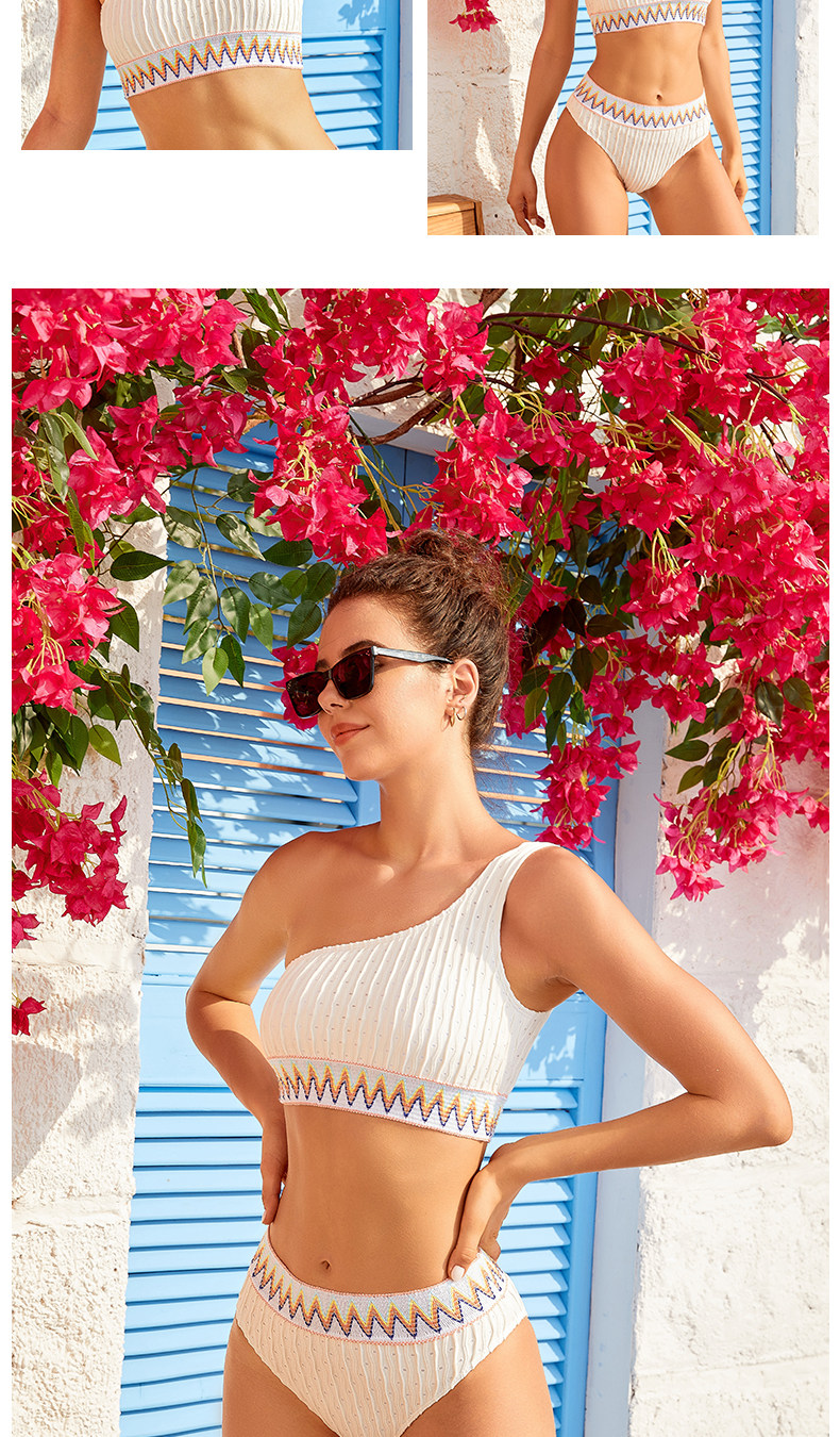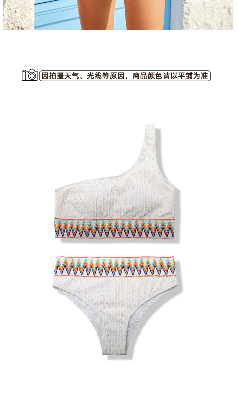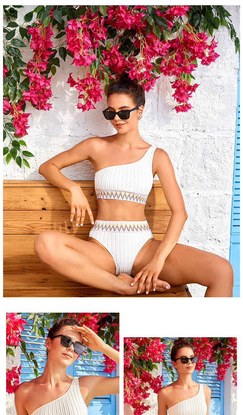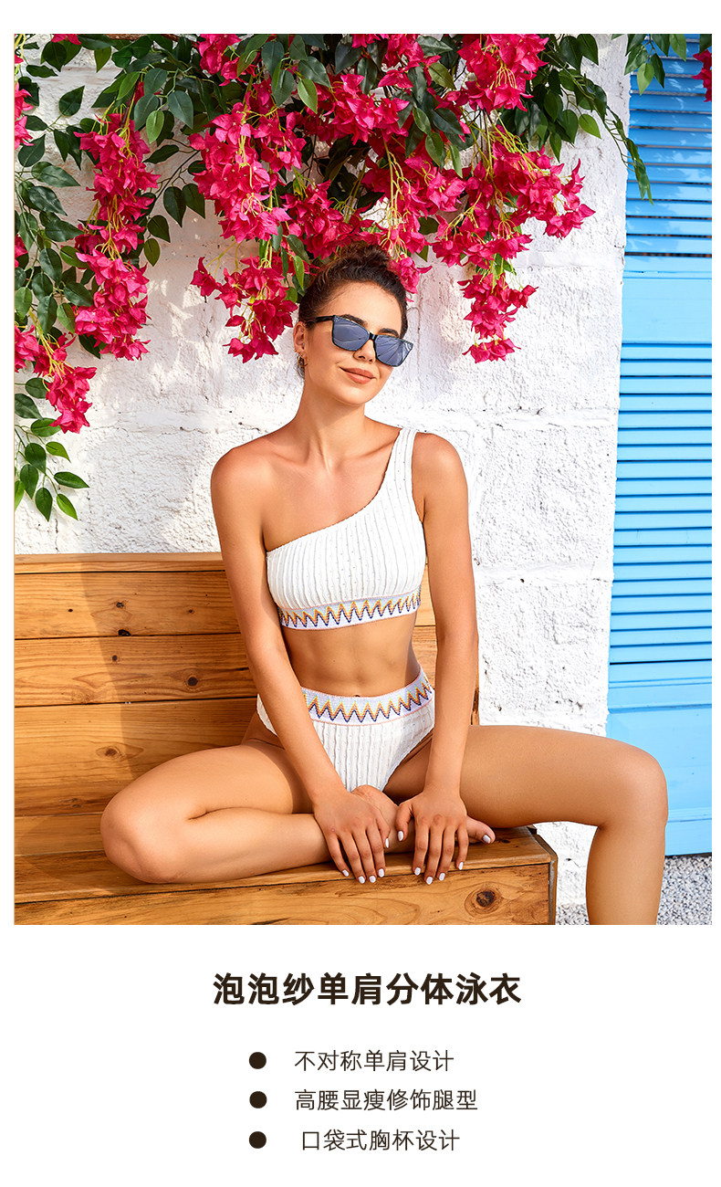 One-shoulder white high-waist triangle split surf suit bikini swimsuit female sexy three-point small breast push-up swimsuit