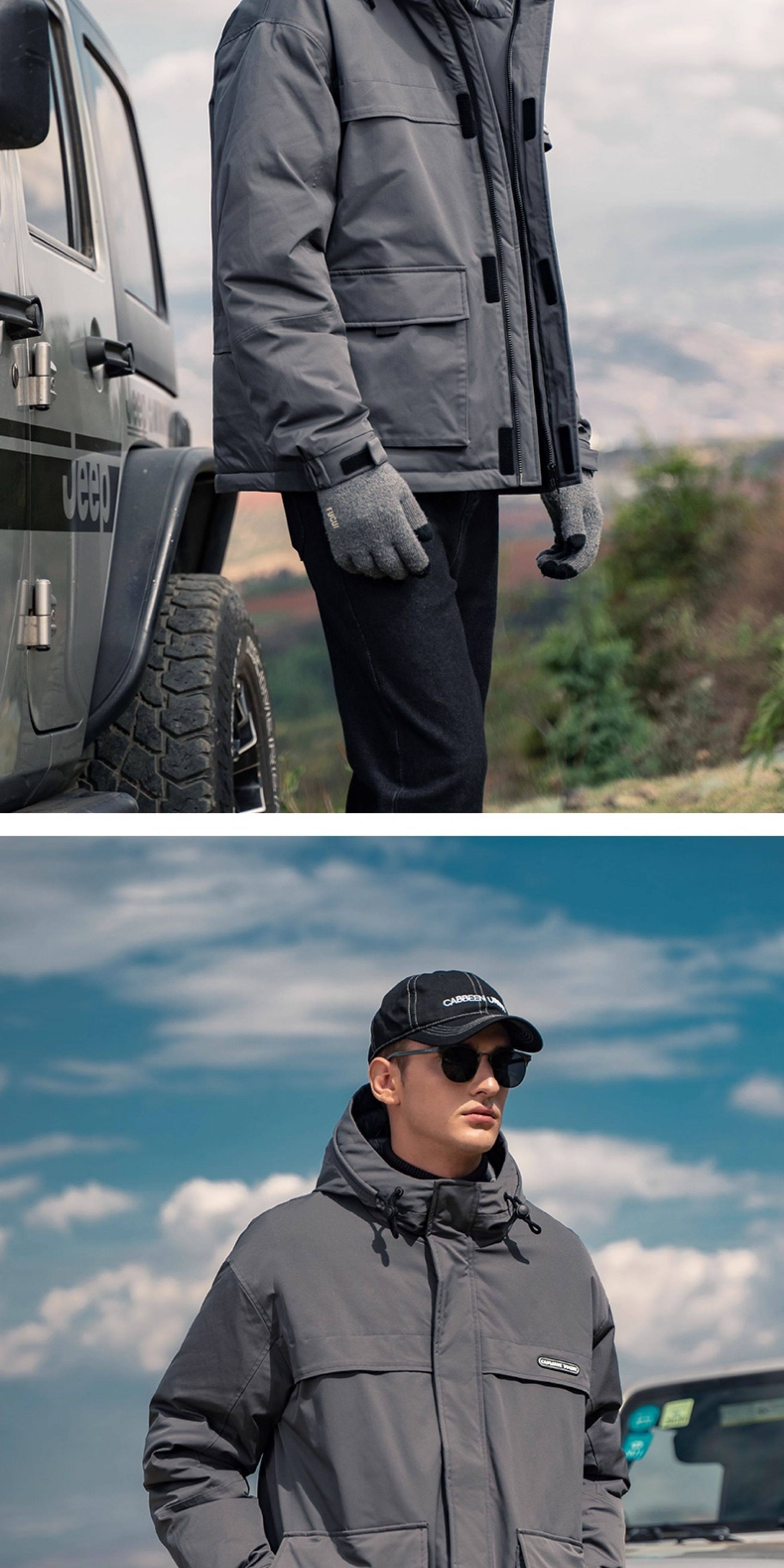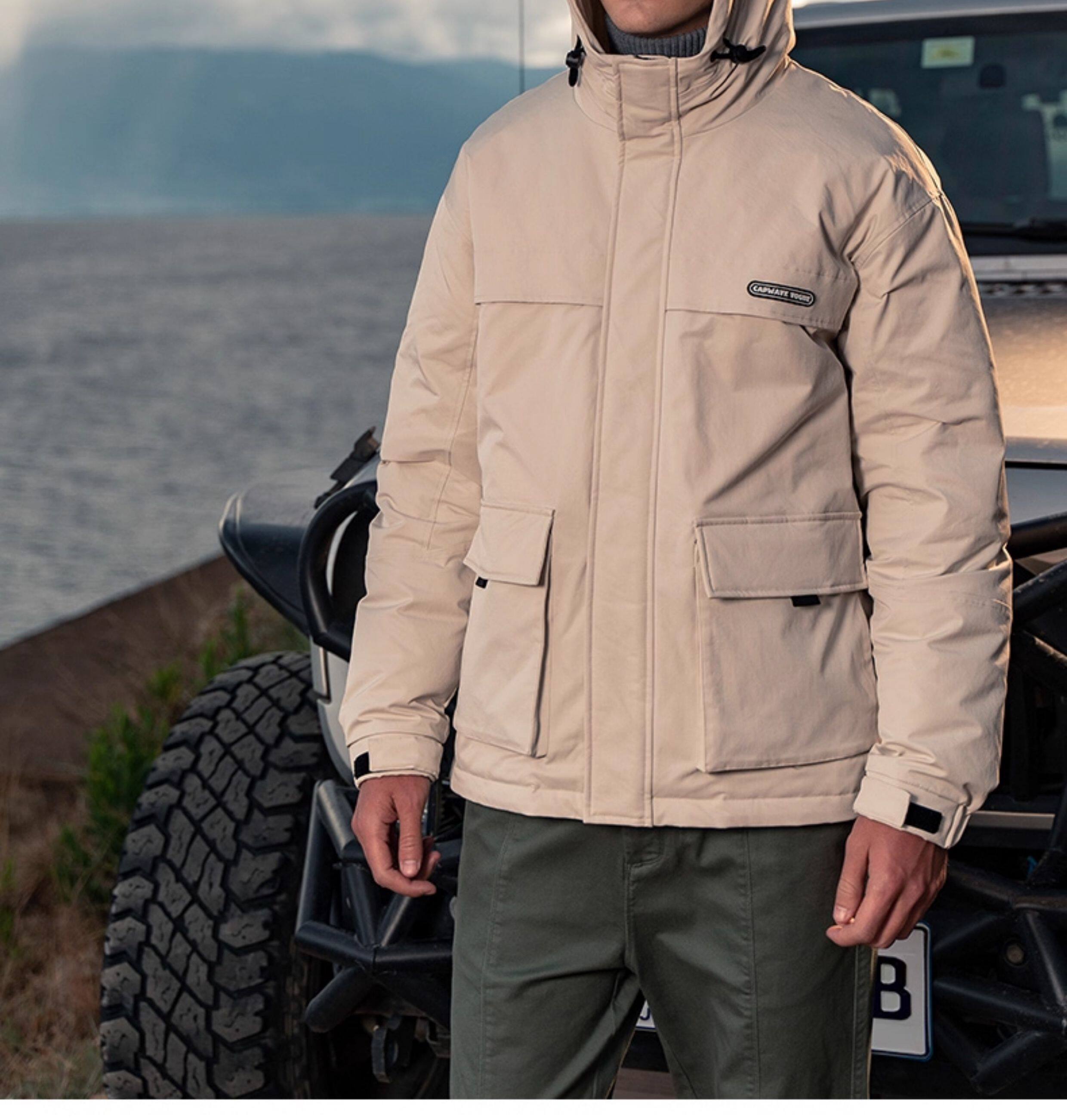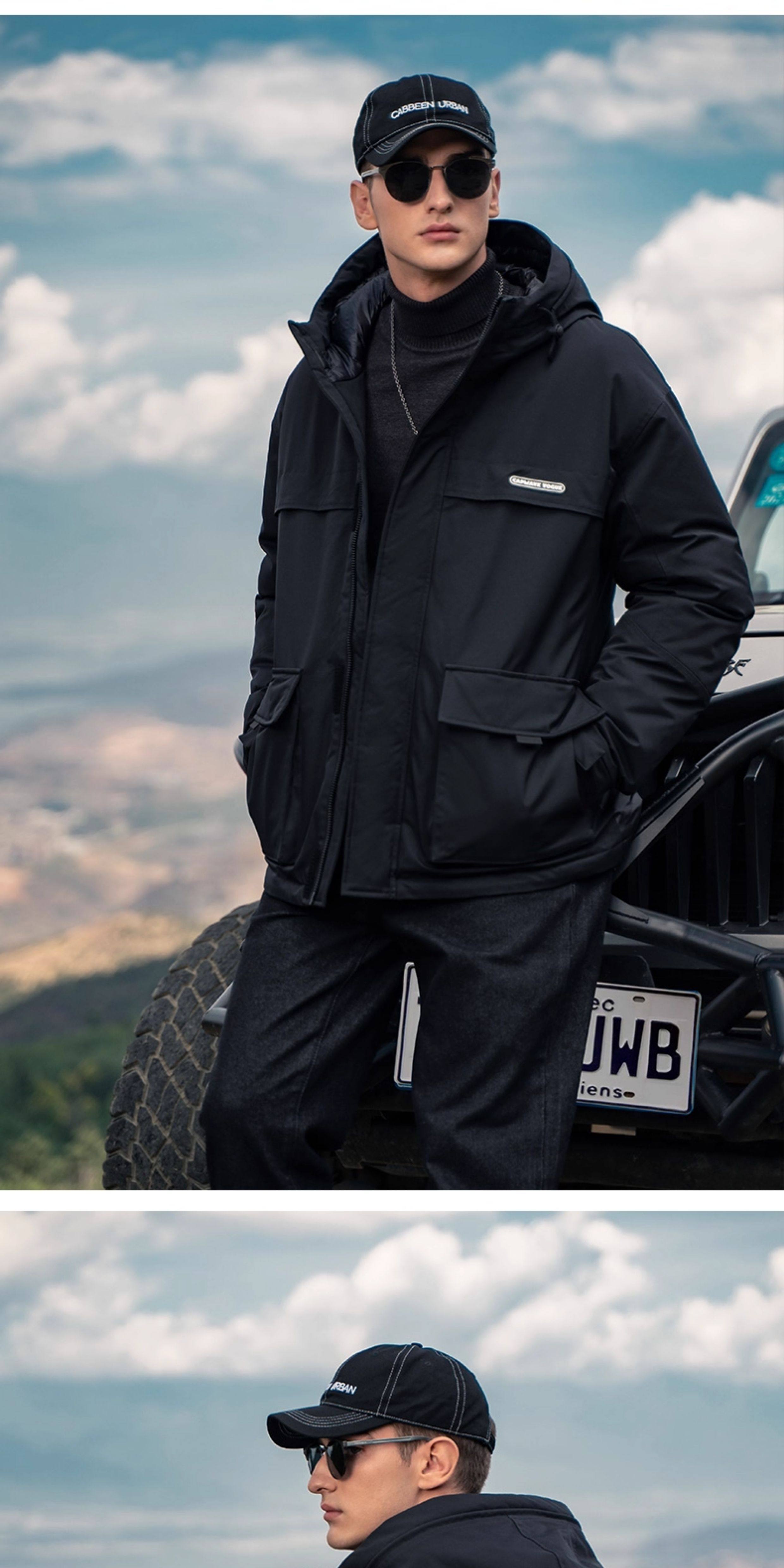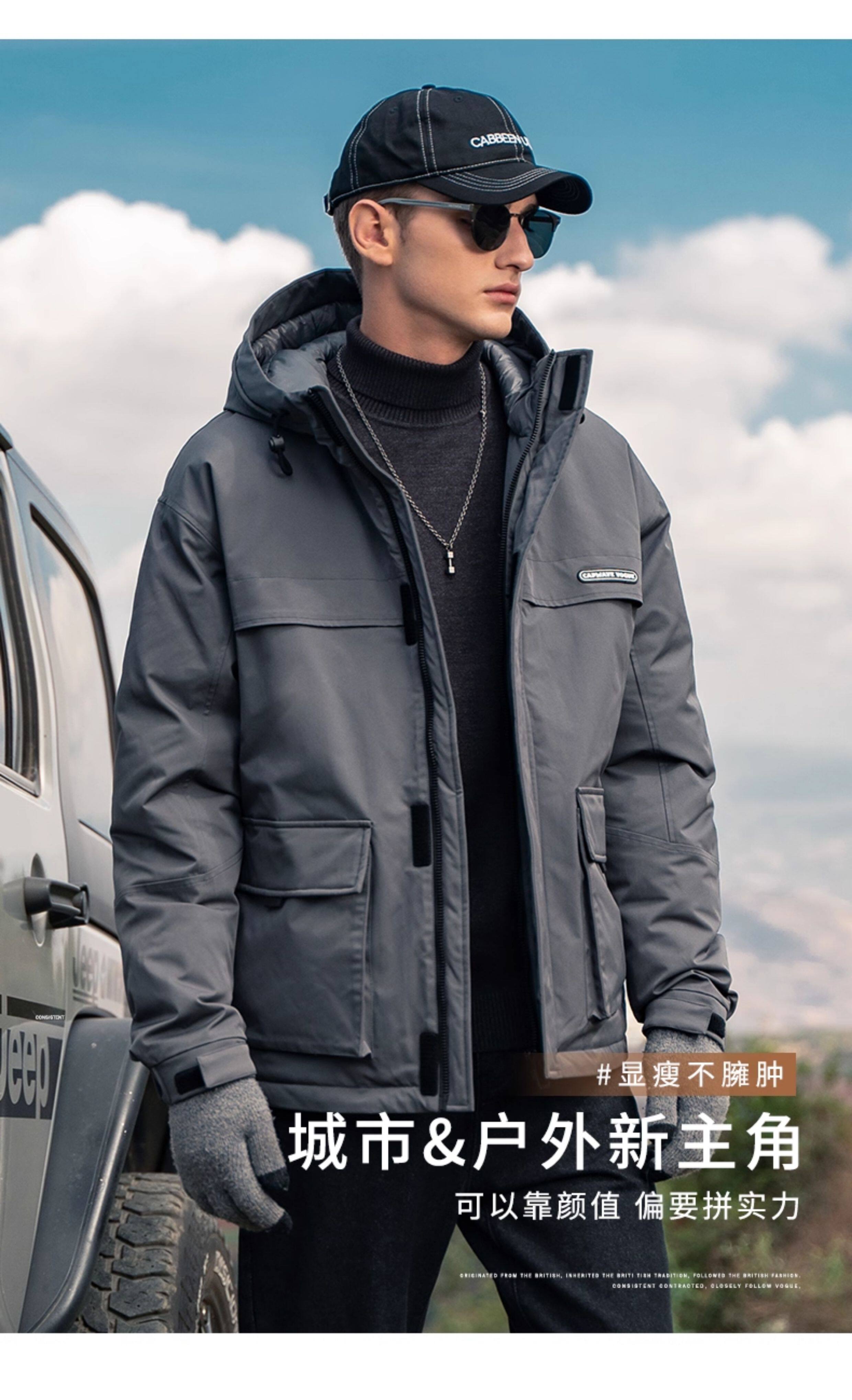 Yingjuerun high-fill 90 white duck down workwear down jacket men's hooded warm winter wear winter windproof jacket