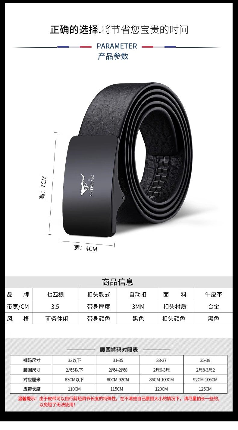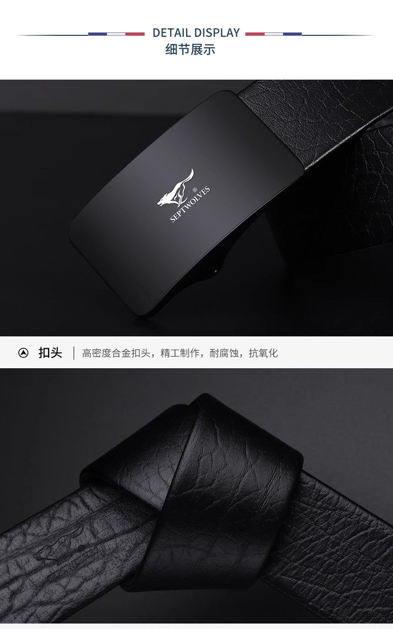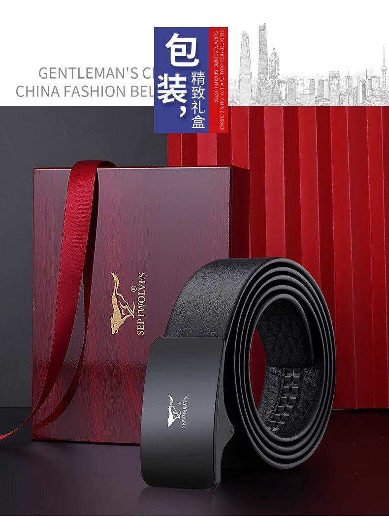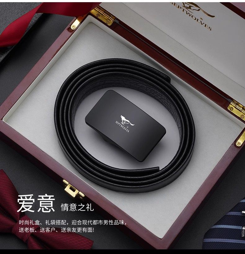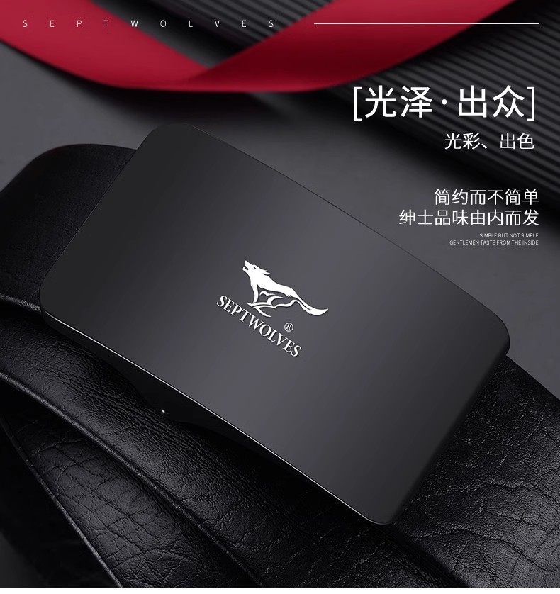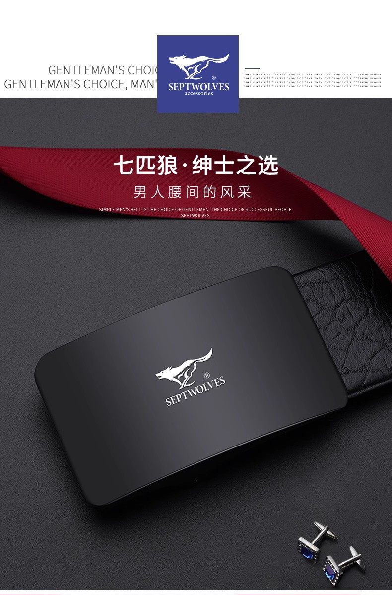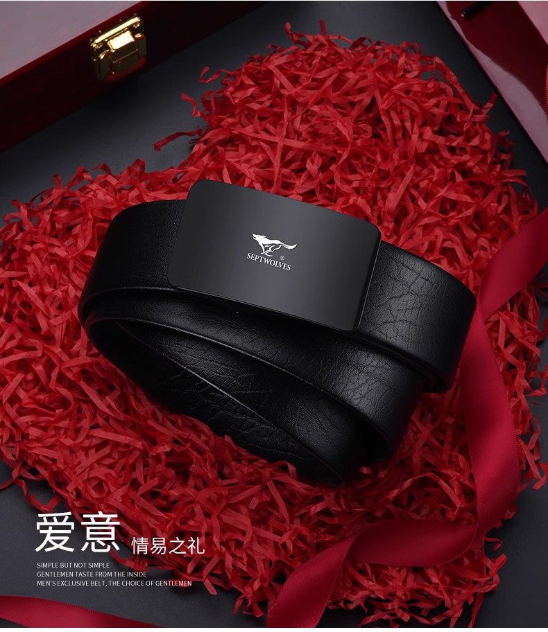 Septwolves Belt Men's Genuine Leather Belt High-end New Year's Gift for Boyfriend and Husband Brand Flagship Store Trouser Belt