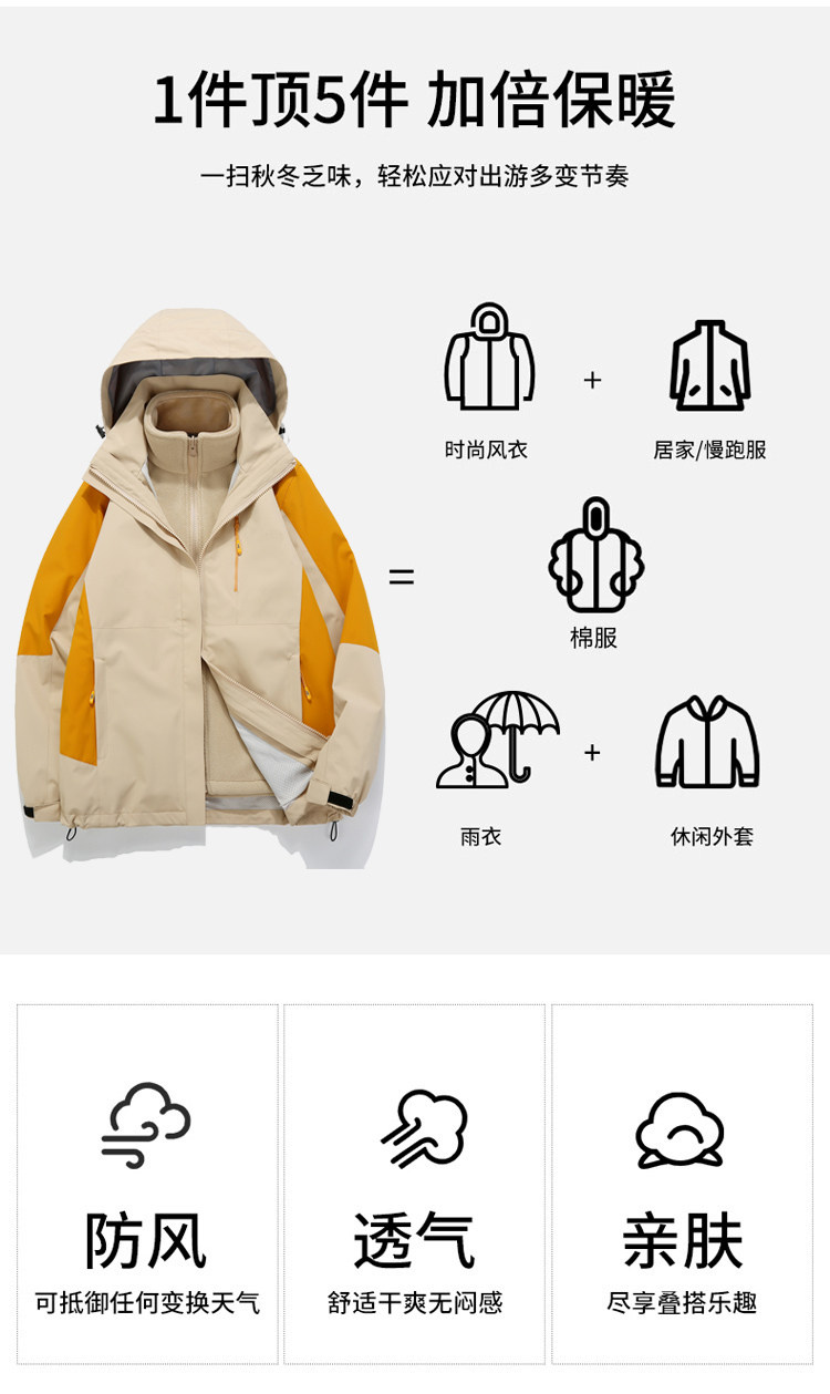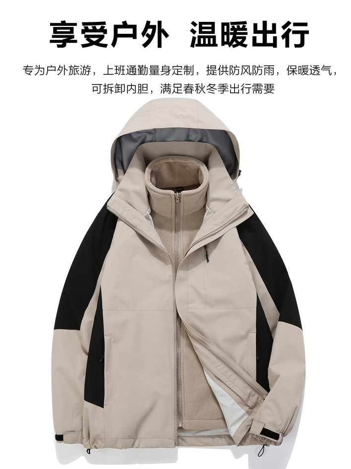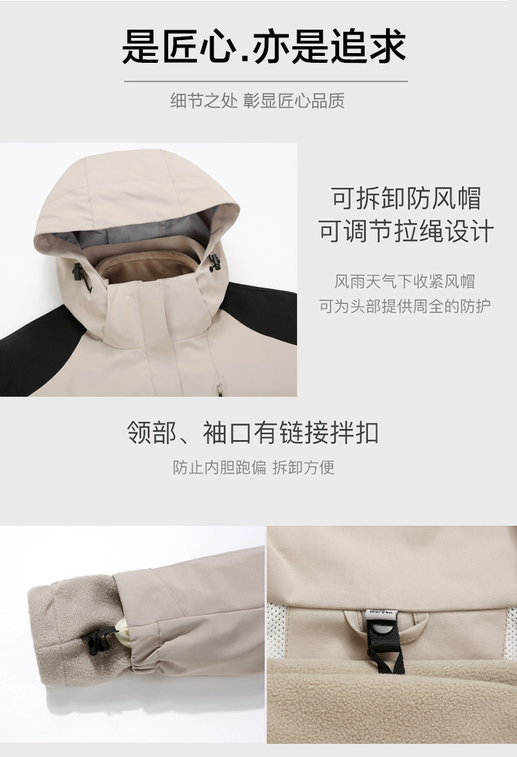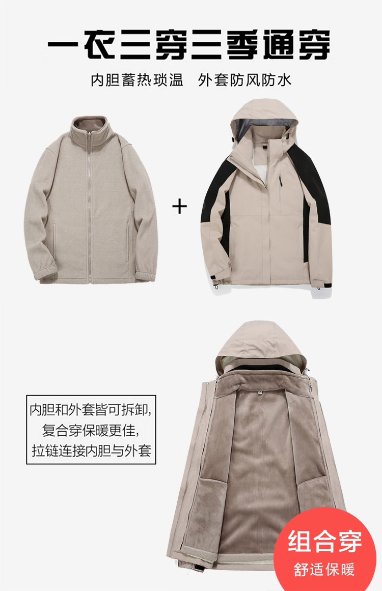 New Outdoor Ivory White Jacket for Men and Women, Three-In-One Detachable Jacket, Autumn and Winter Windproof and Waterproof Mountaineering Clothing