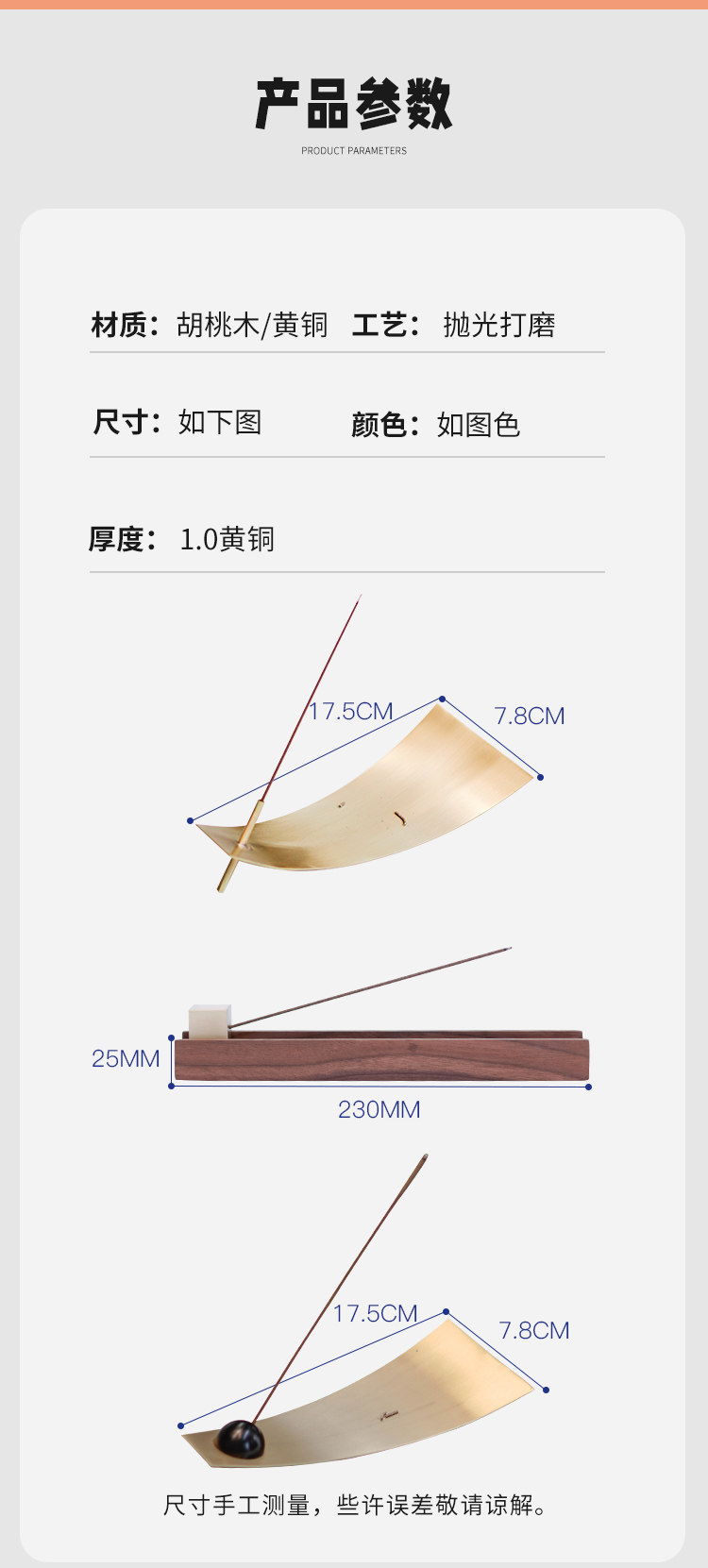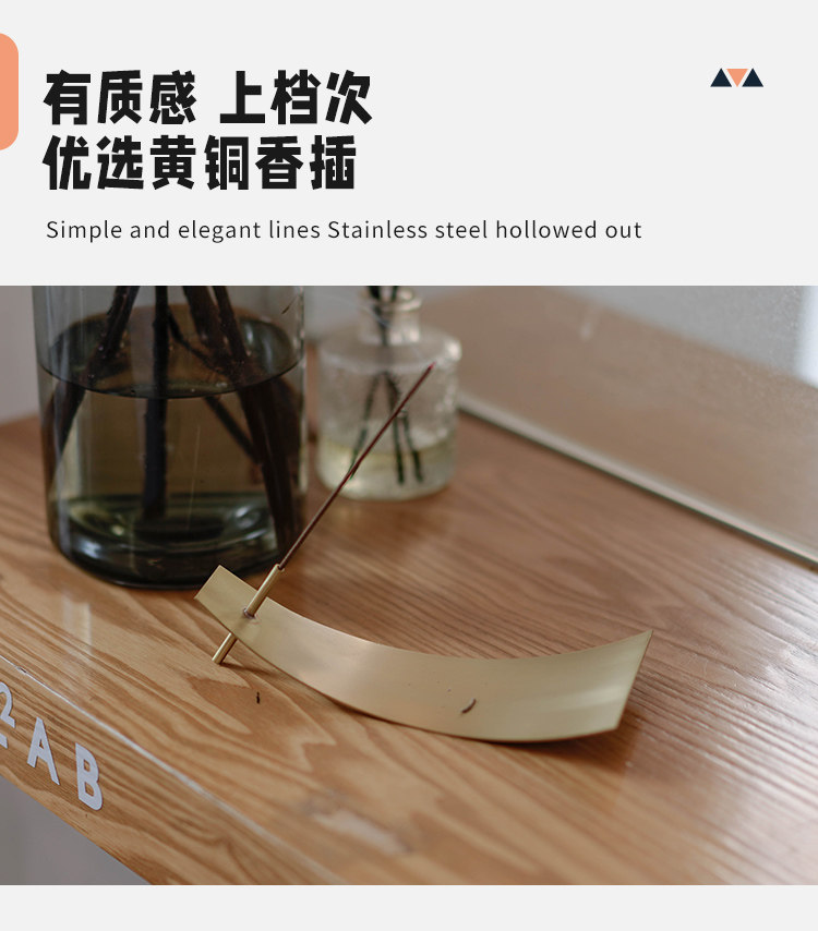 Japanese incense insert pure copper high-end home study tea room bookcase simple niche incense seat wooden incense holder base