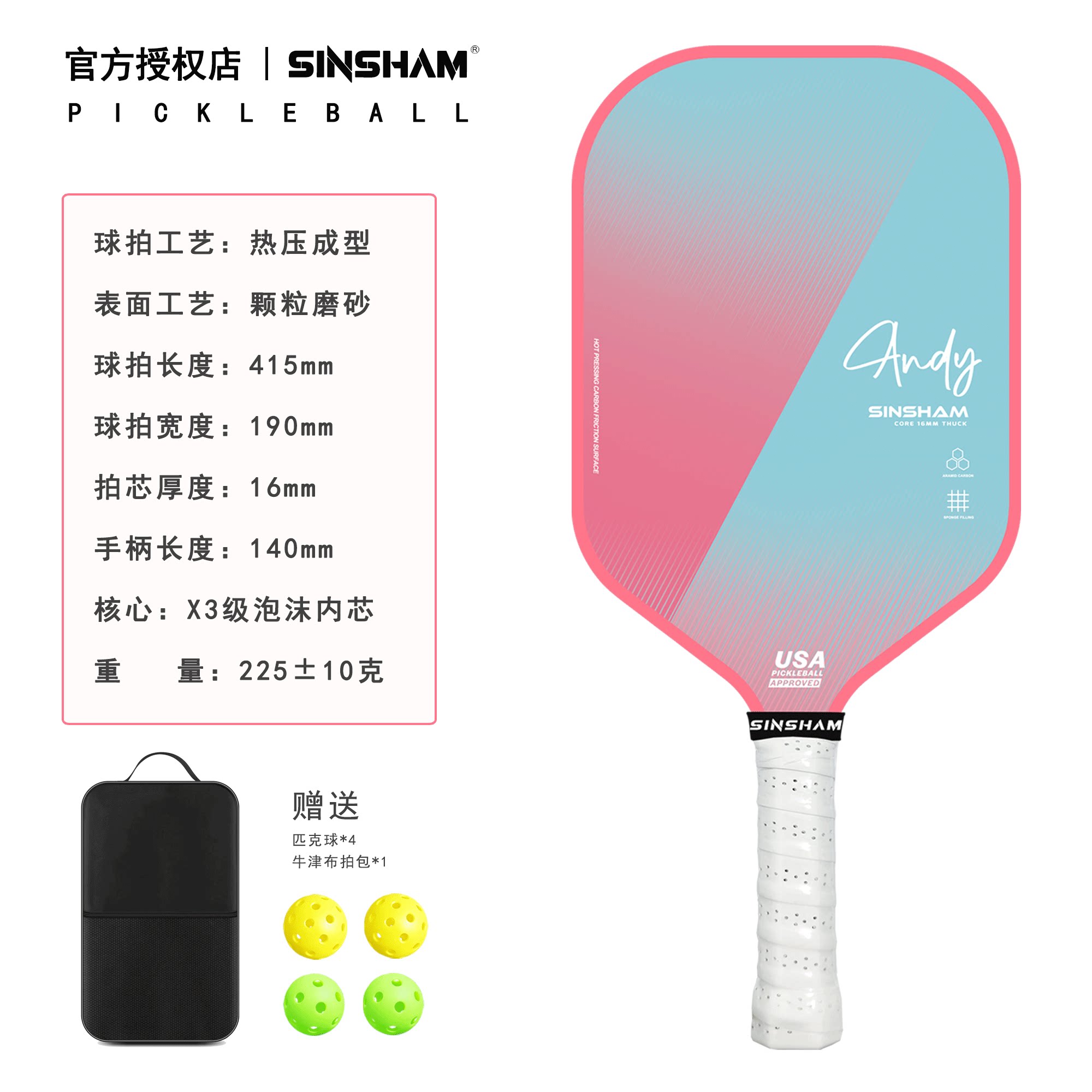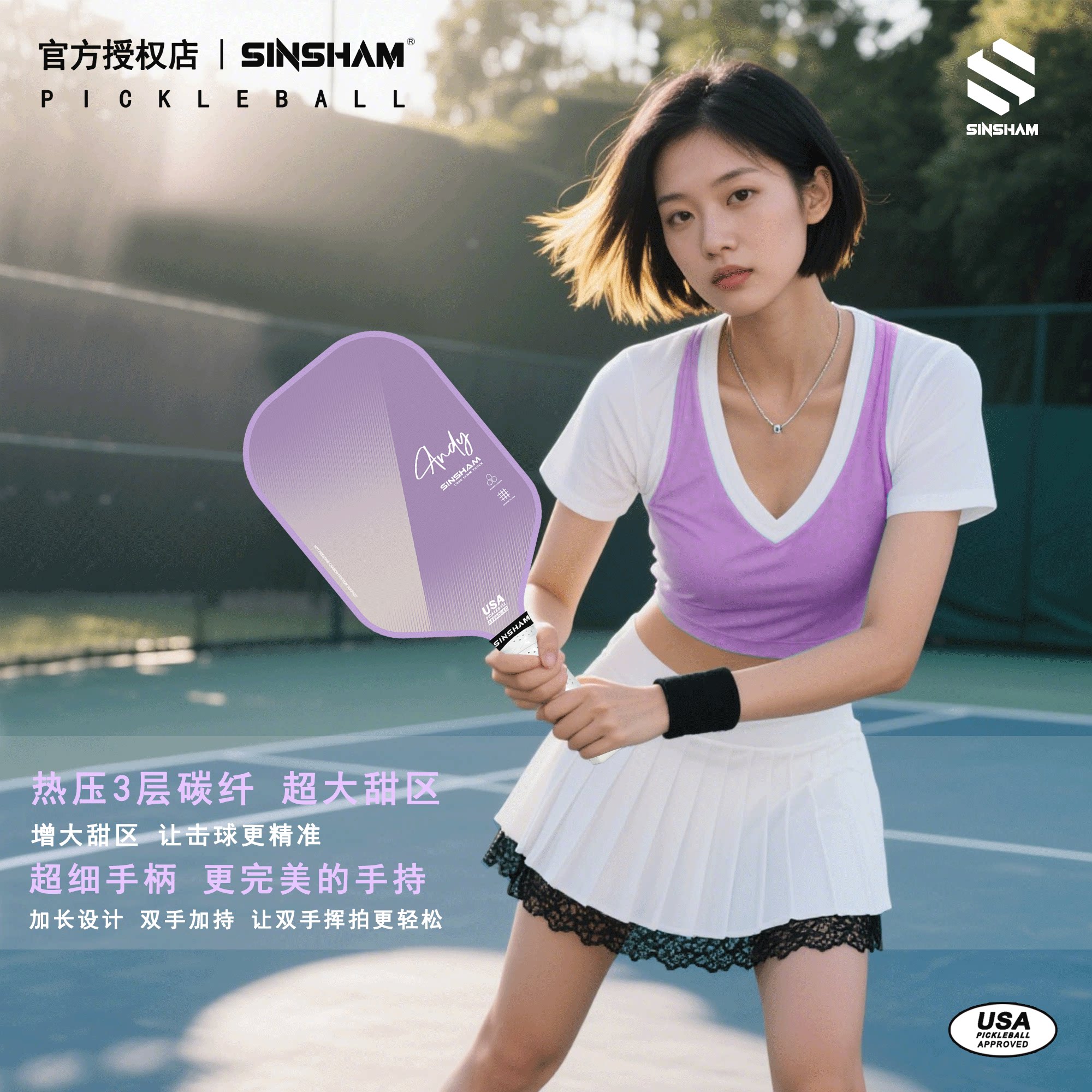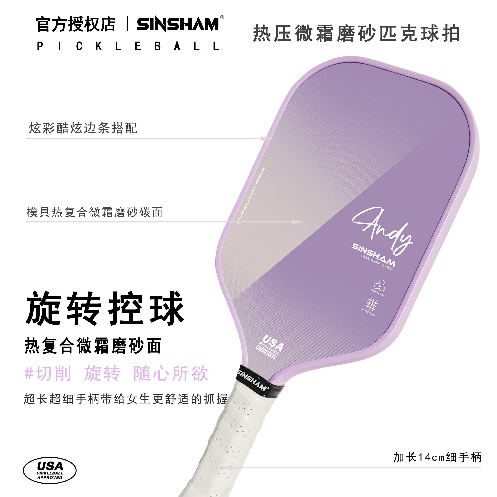 Sinsham Hot-Pressed Particle Frosted High-Elastic Competition-Grade Sponge-Filled Dream Pink Pickleball Paddle Carbon Fiber