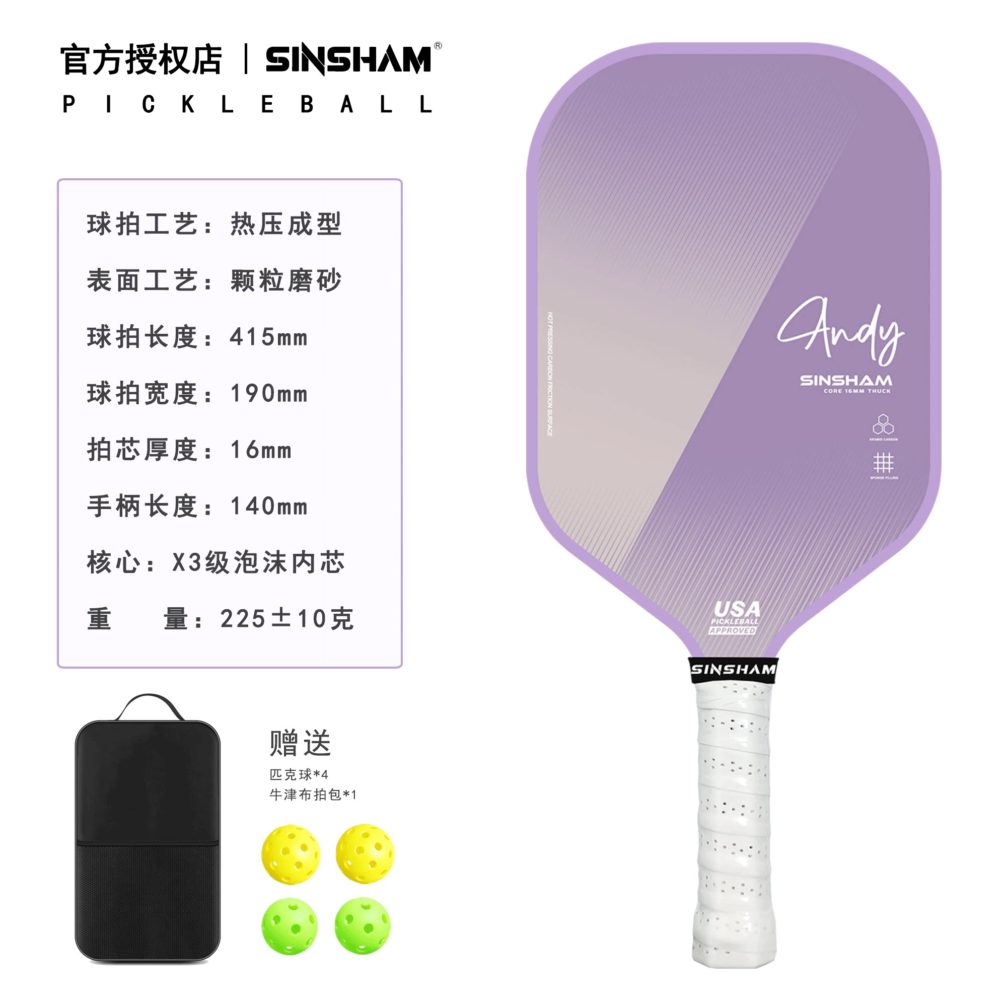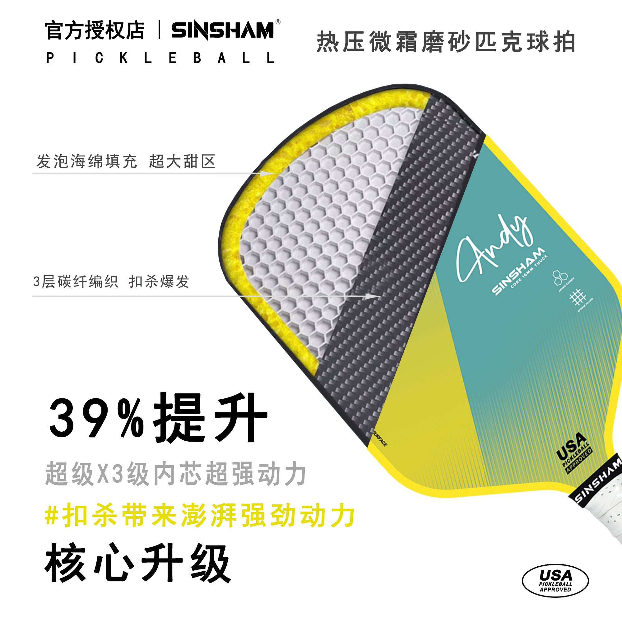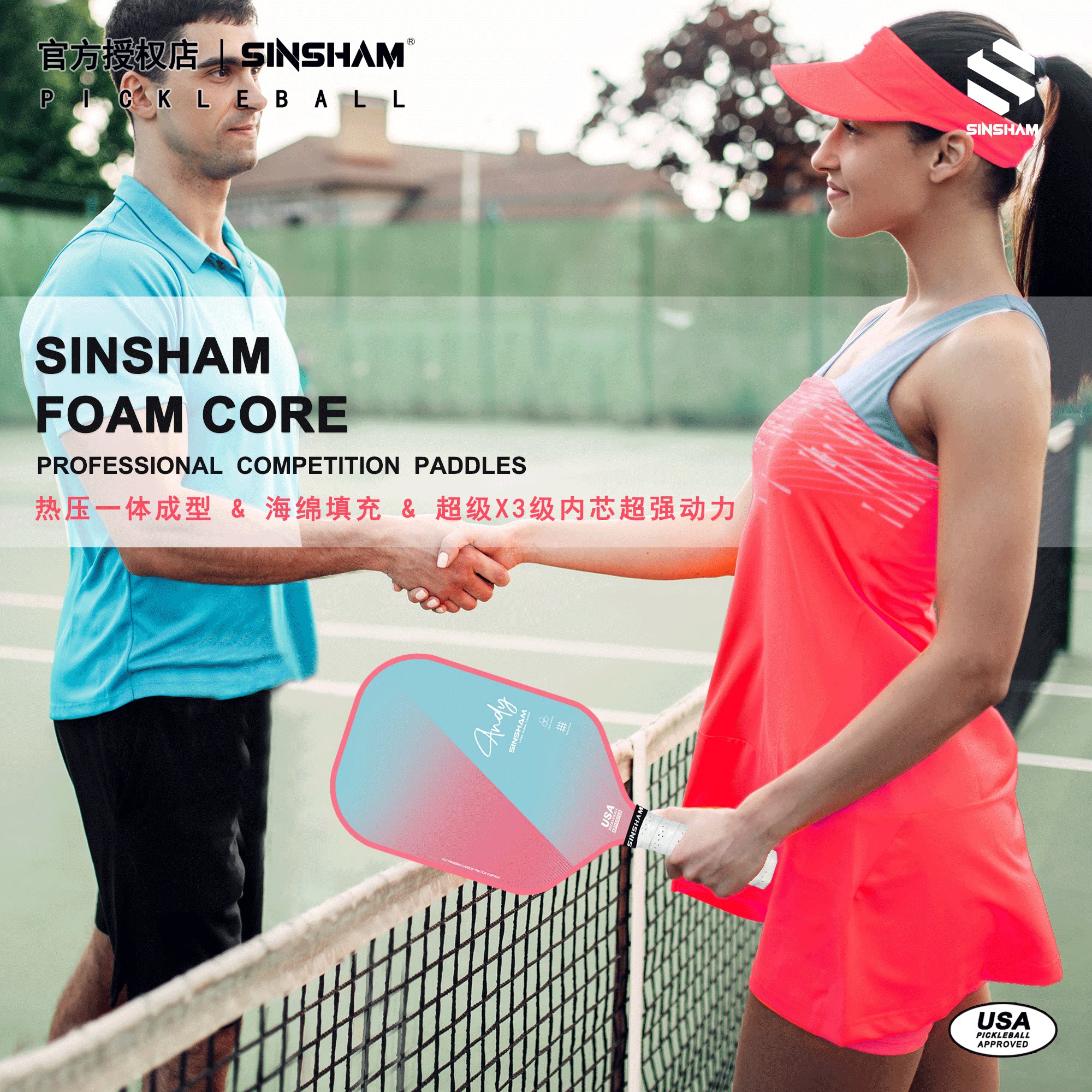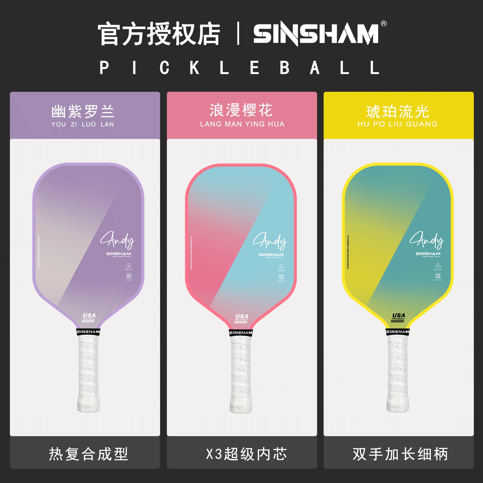 Sinsham Hot-Pressed Particle Frosted High-Elastic Competition-Grade Sponge-Filled Dream Pink Pickleball Paddle Carbon Fiber