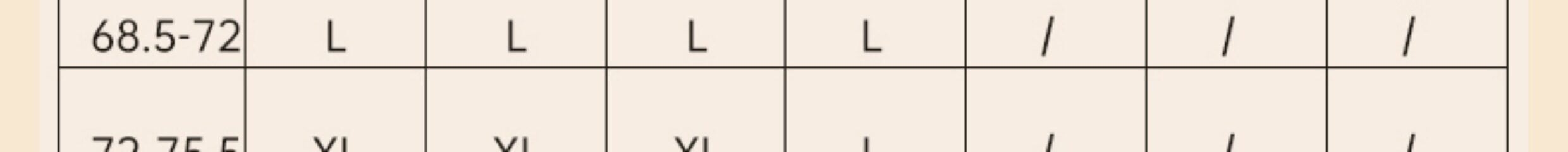 China(cm) 72-76 76-81 81-87 87-93 93-98