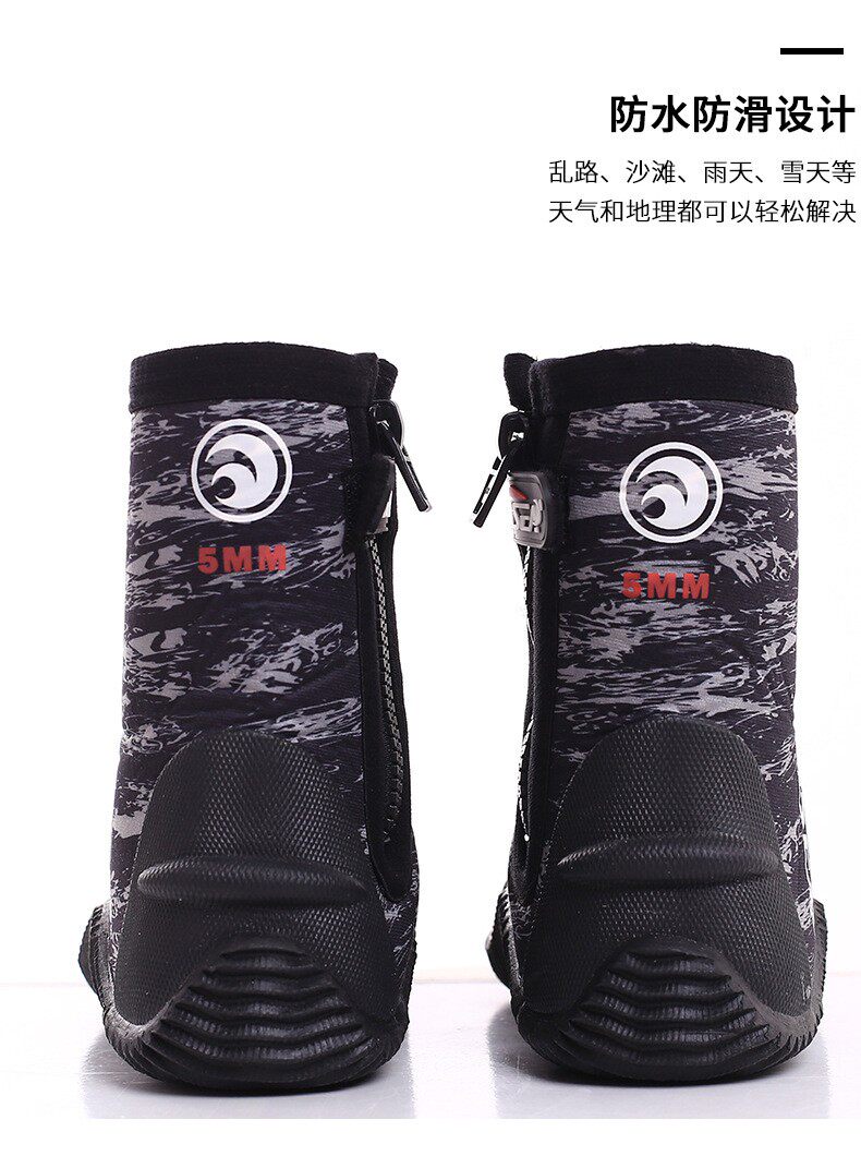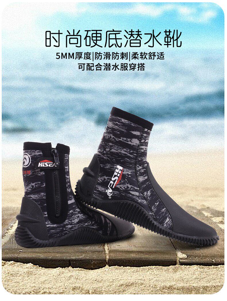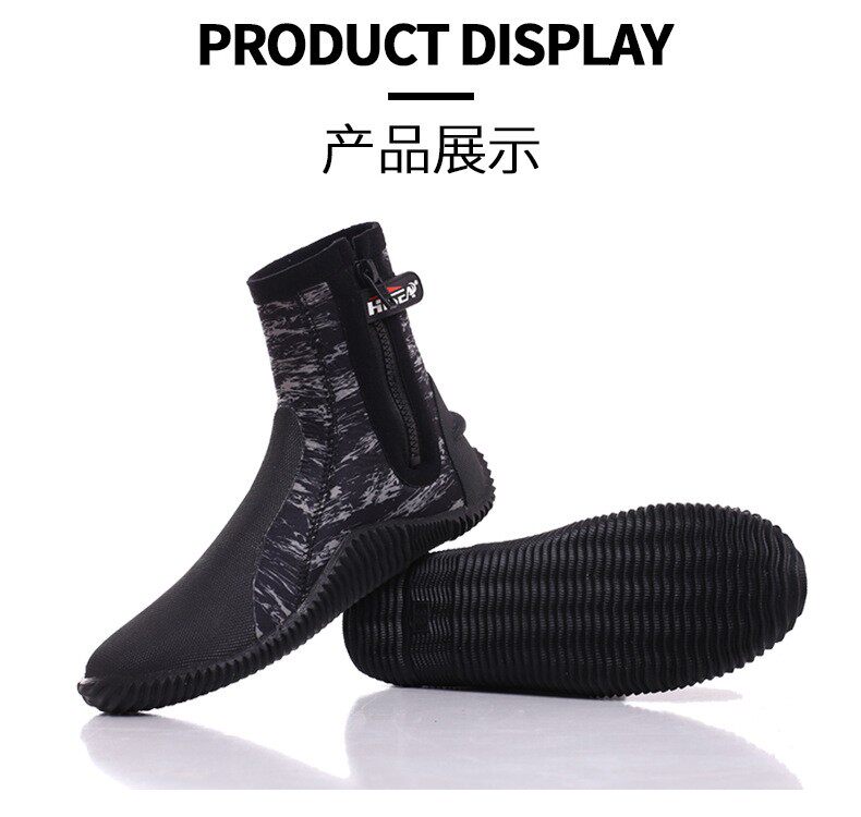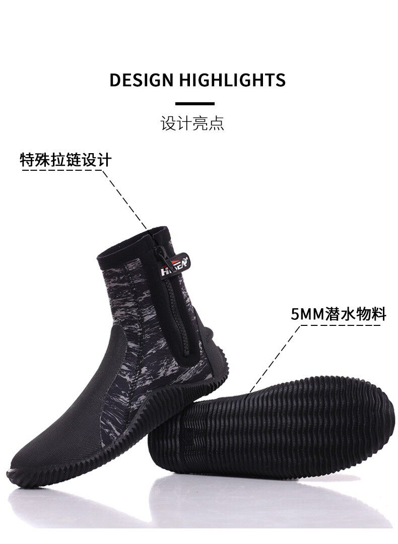 High-top warm, non-slip, anti-sharp, hard-soled 5MM diving boots for men and women, swimming, surfing, deep diving, snorkeling, diving shoes and socks