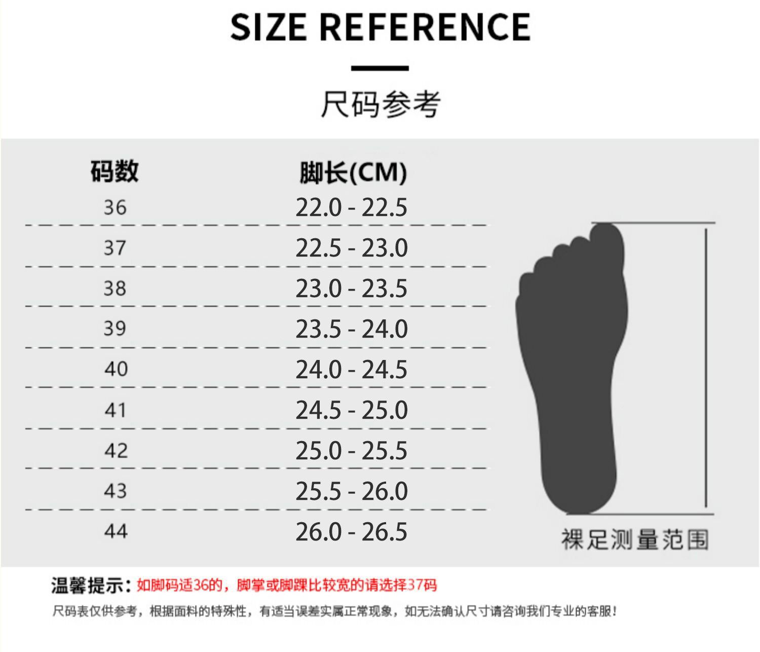 China (cm) 36 - 37 38 - 39 40 - 42 43 - 44 45 - 47
