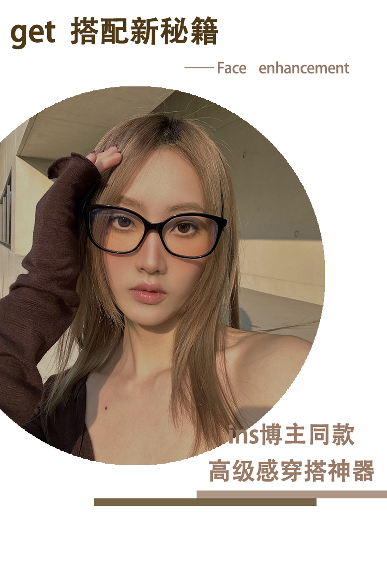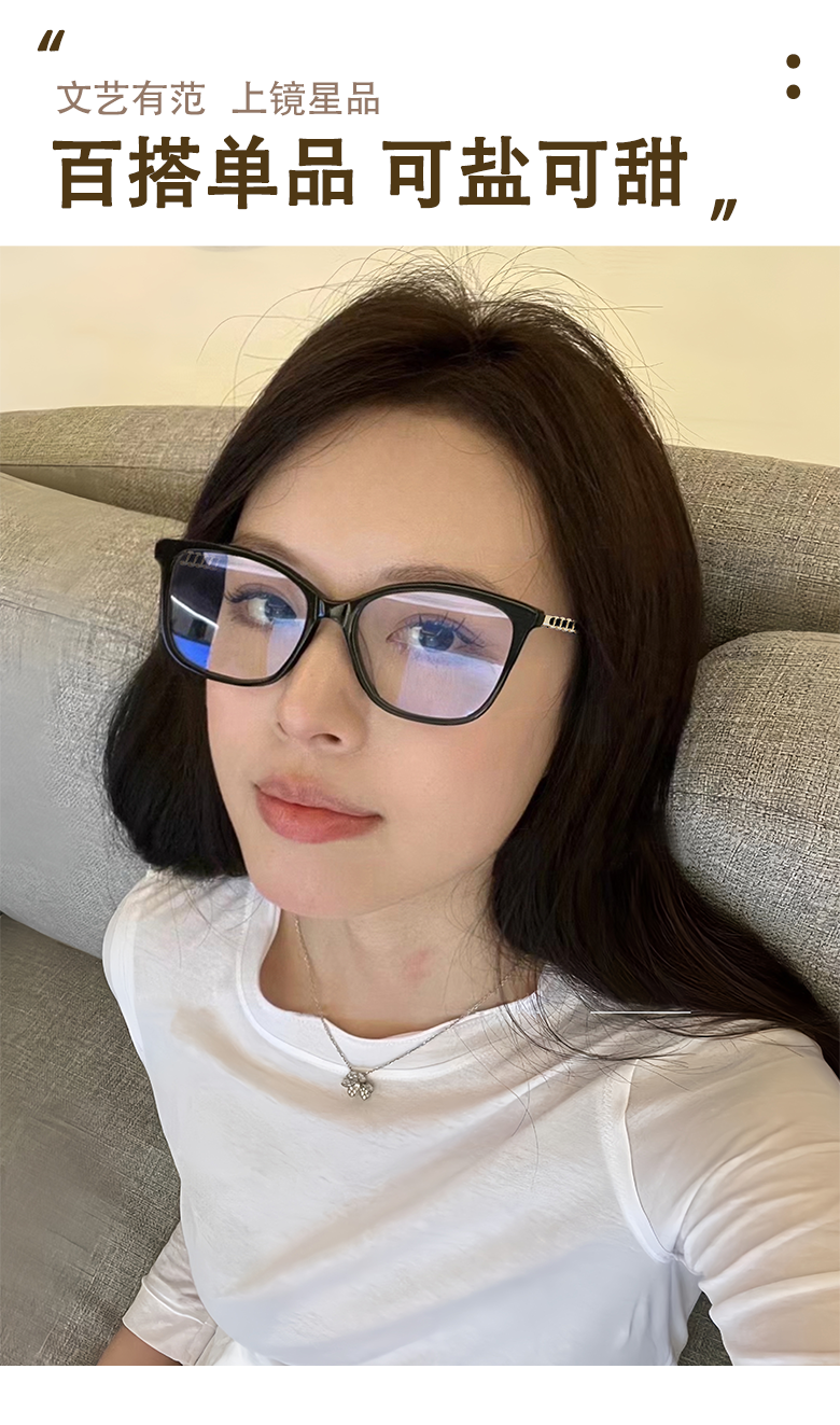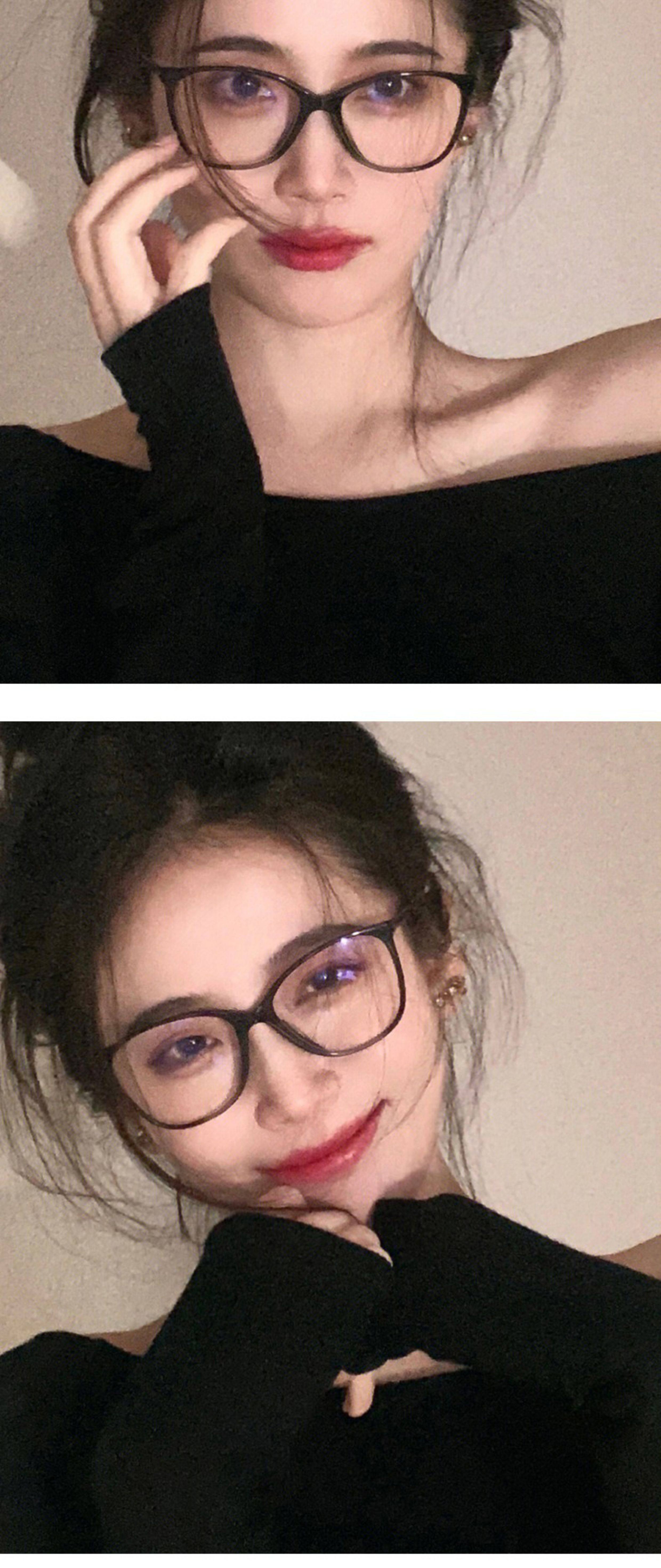 Black Frame Professional Anti-Blue Light and Anti-Radiation Glasses for Women, Eye Protection Plain Glasses, No-Makeup Essential, Can Be Fitted with Prescription Lenses