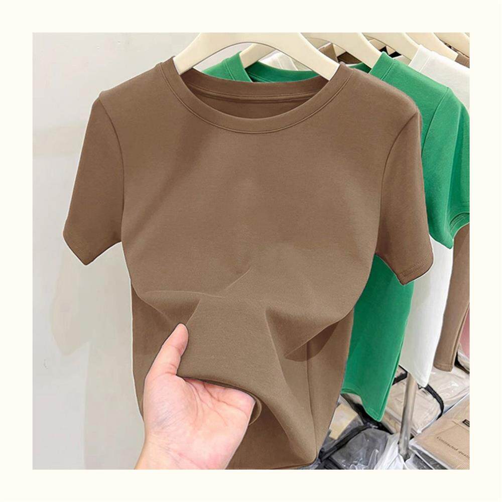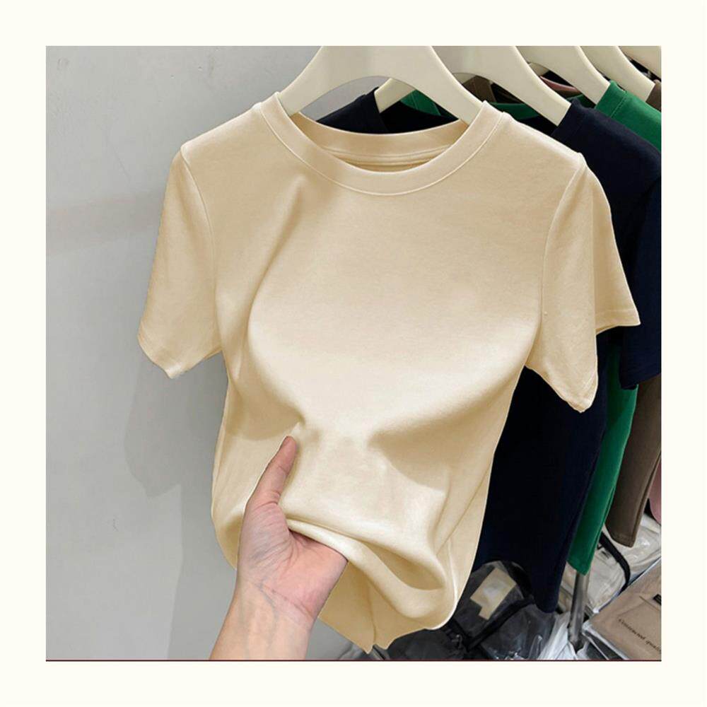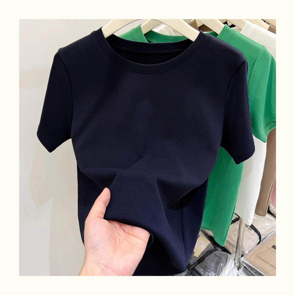T-shirt T-shirt summer gray 2025 cotton slim fit shoulder new Hong Kong style chic unique design matching women's clothing