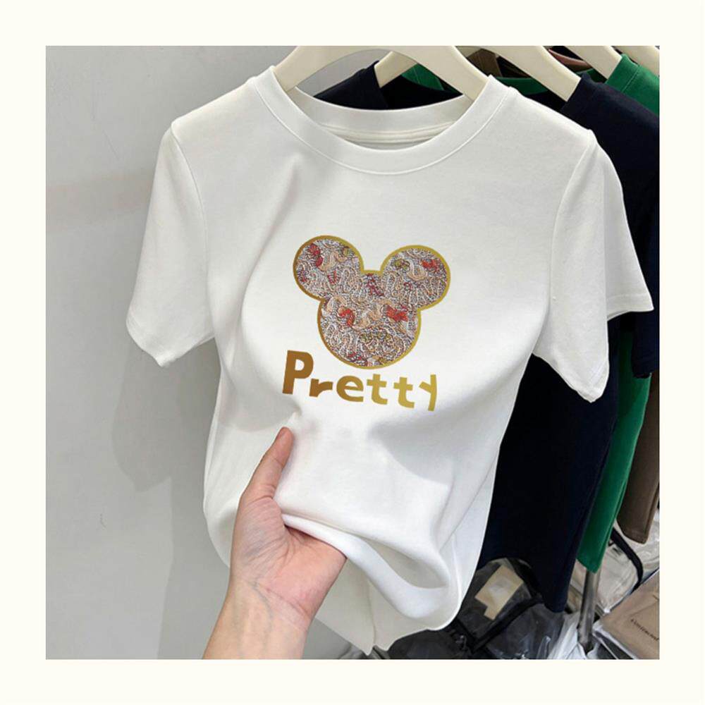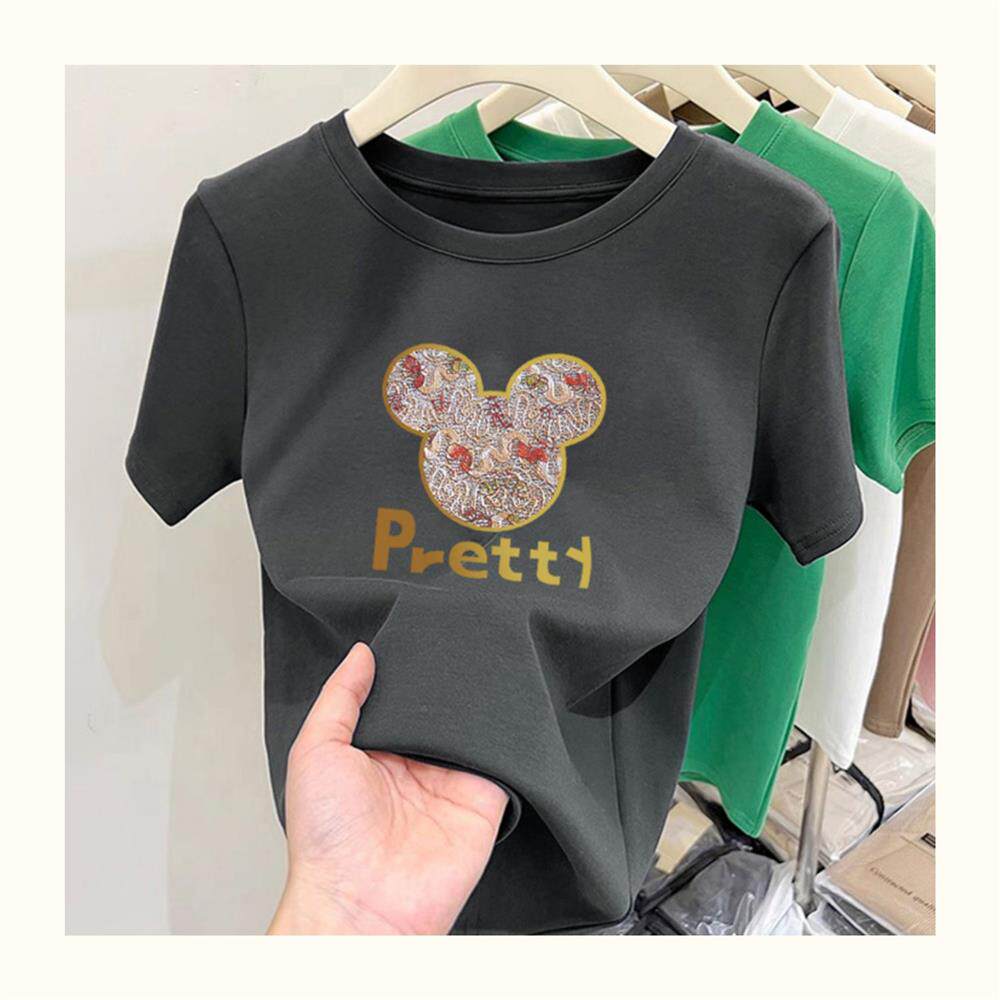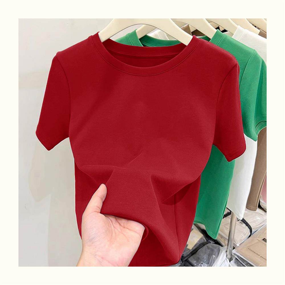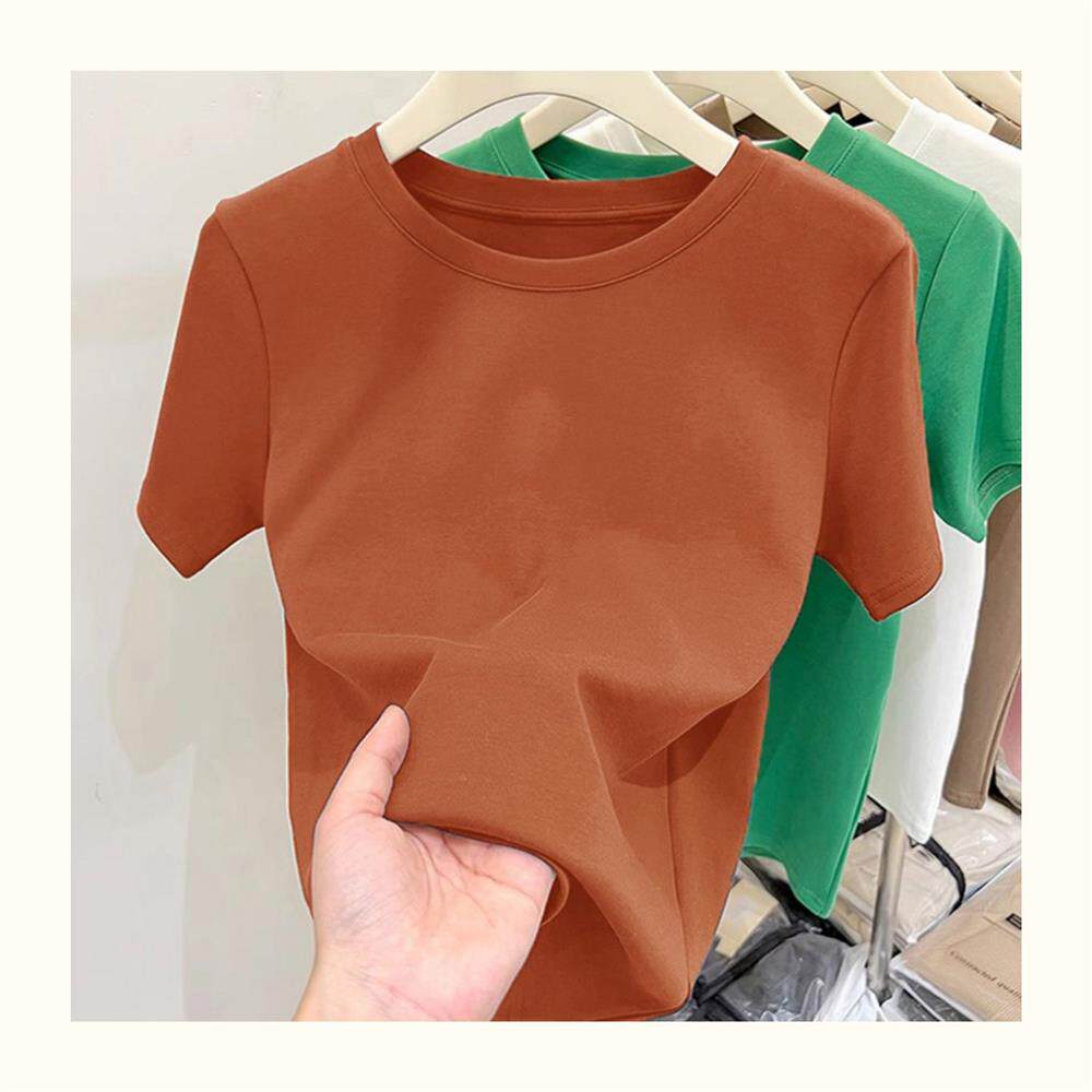 T-shirt T-shirt summer gray 2025 cotton slim fit shoulder new Hong Kong style chic unique design matching women's clothing