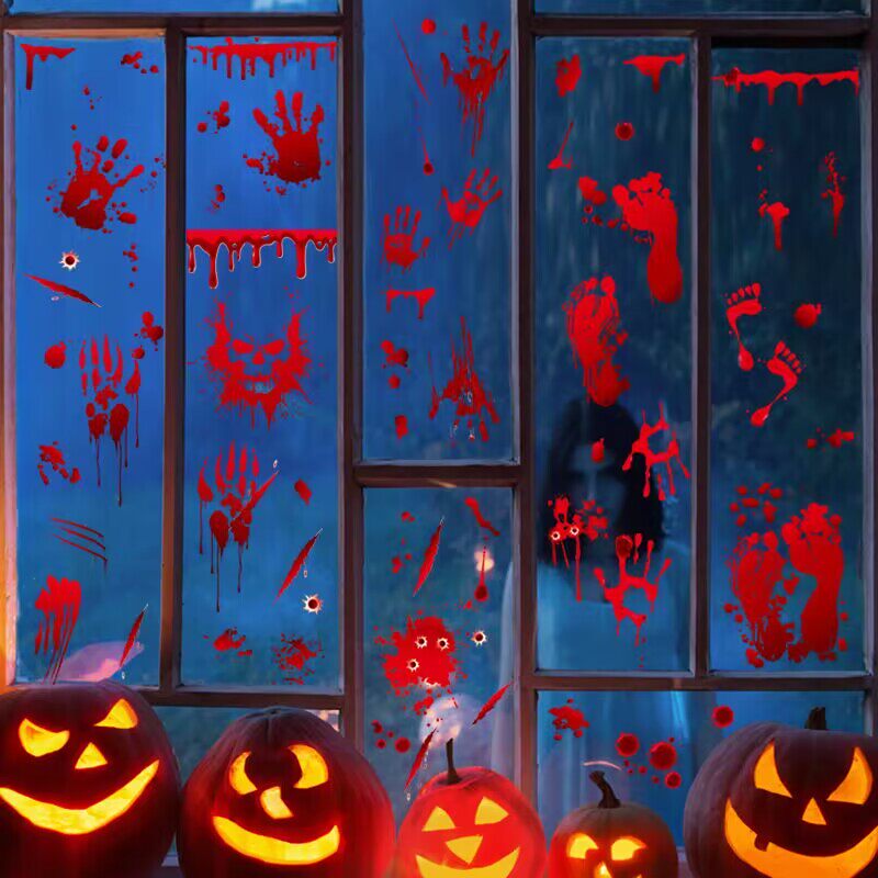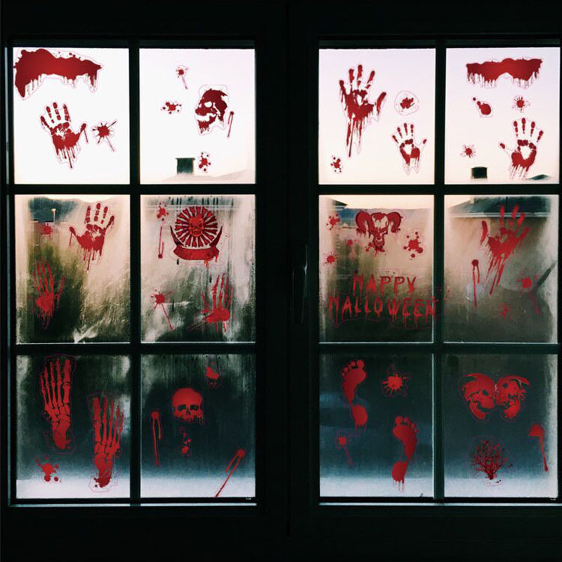 Halloween decoration horror stickers bloody handprints and footprints haunted house secret room bar scary window stickers layout props