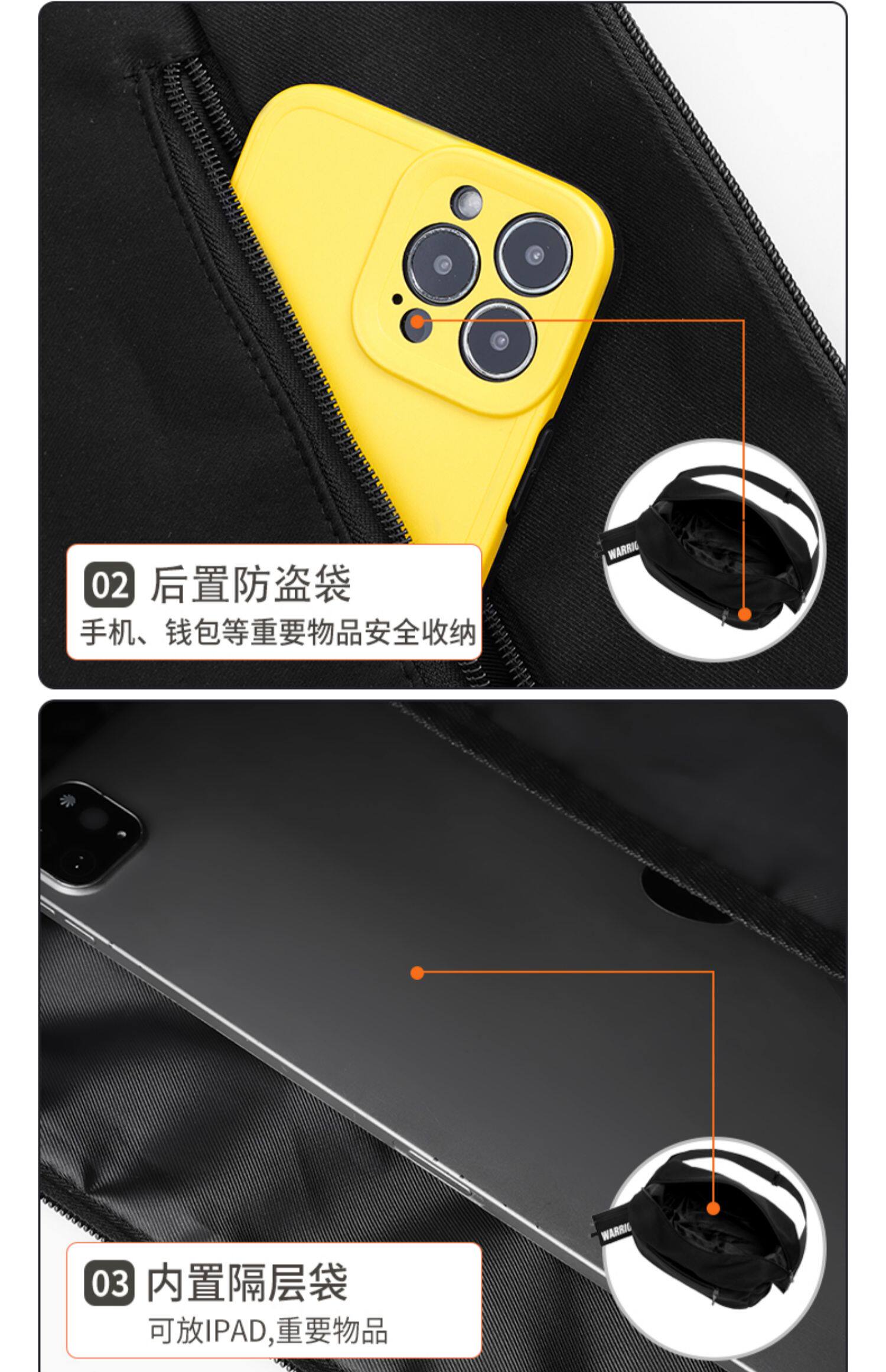 Internal structure Mobile phone bag,Zippered hidden bag,Certificate location,Coin bag