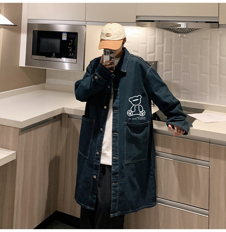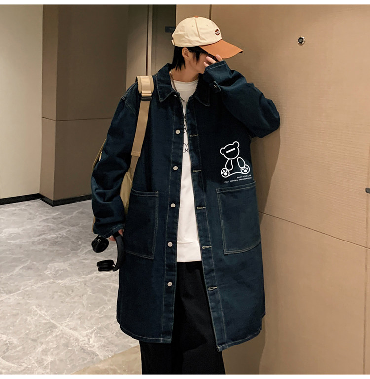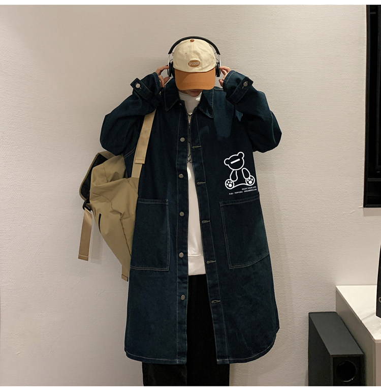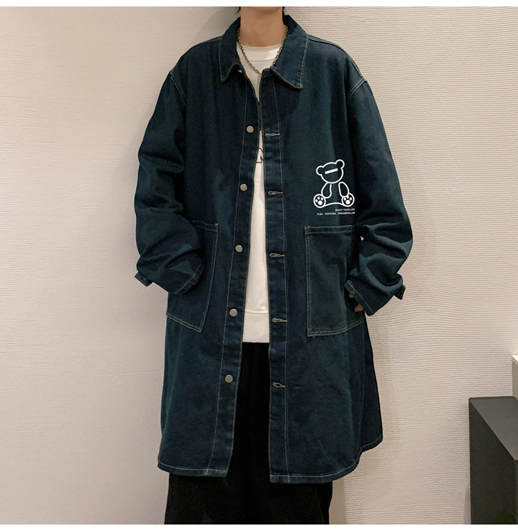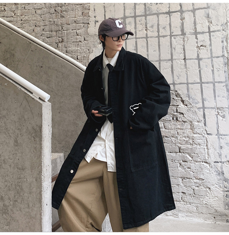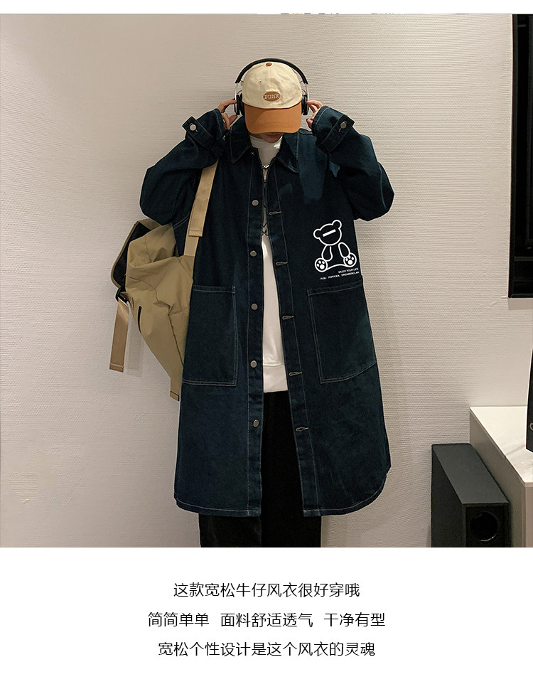 Mid-Length Trench Coat for Men, Spring and Autumn Korean Style Trendy Denim Coat, Oversized Casual Workwear Jacket