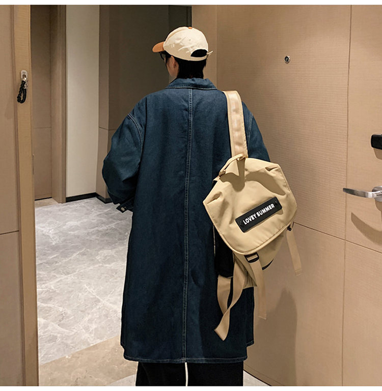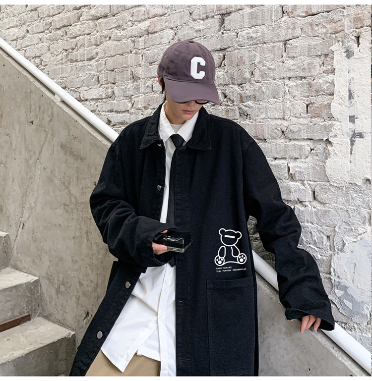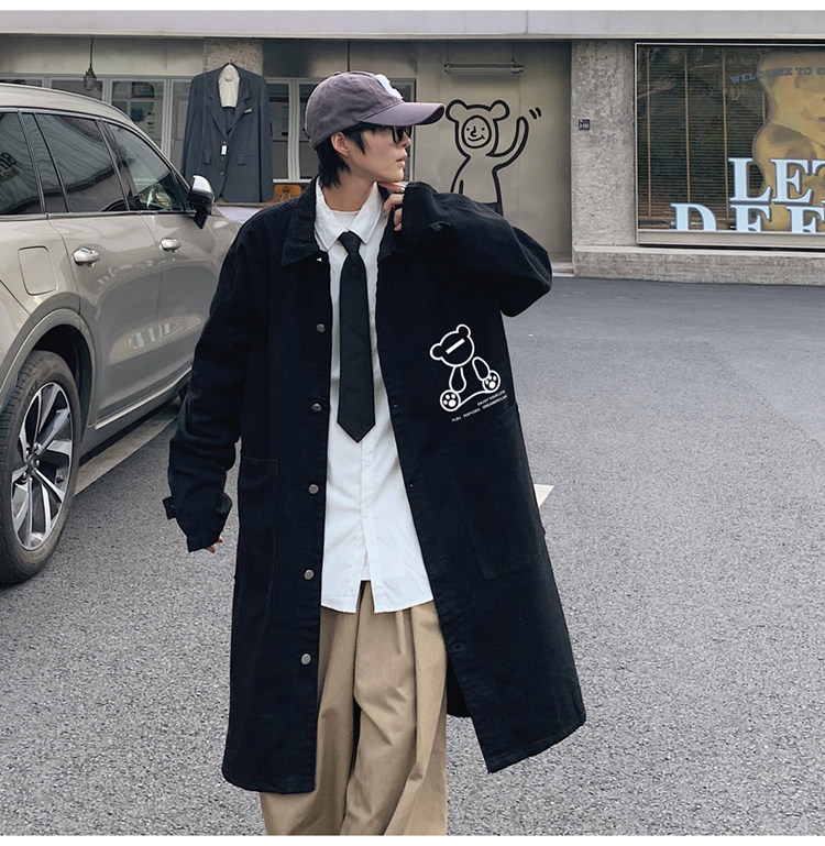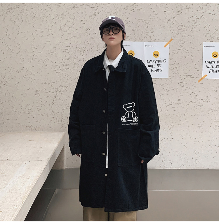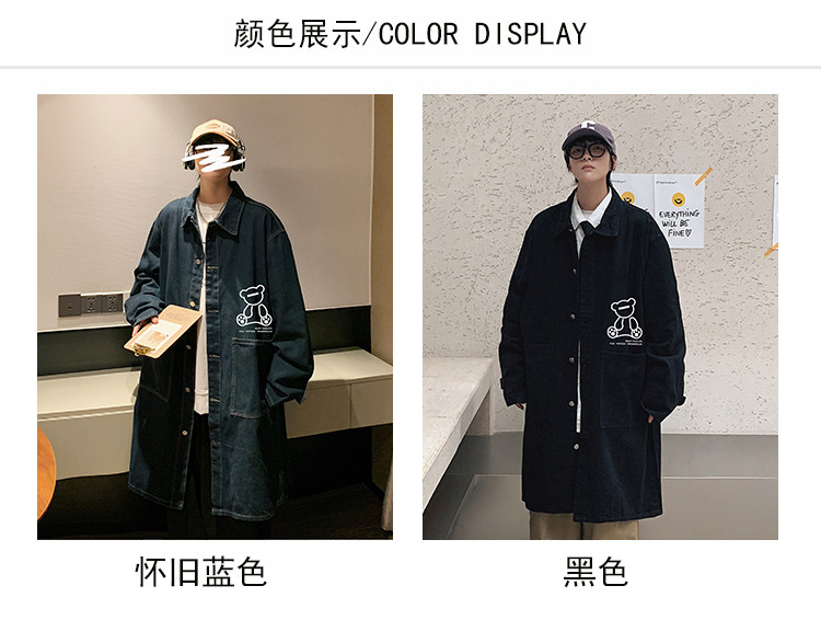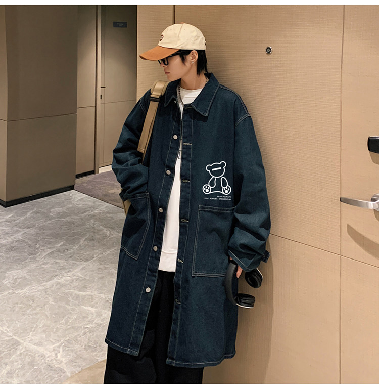 Mid-Length Trench Coat for Men, Spring and Autumn Korean Style Trendy Denim Coat, Oversized Casual Workwear Jacket