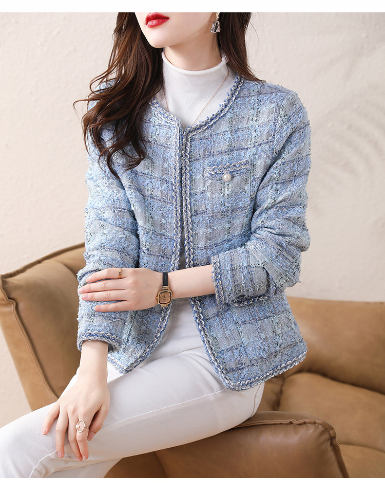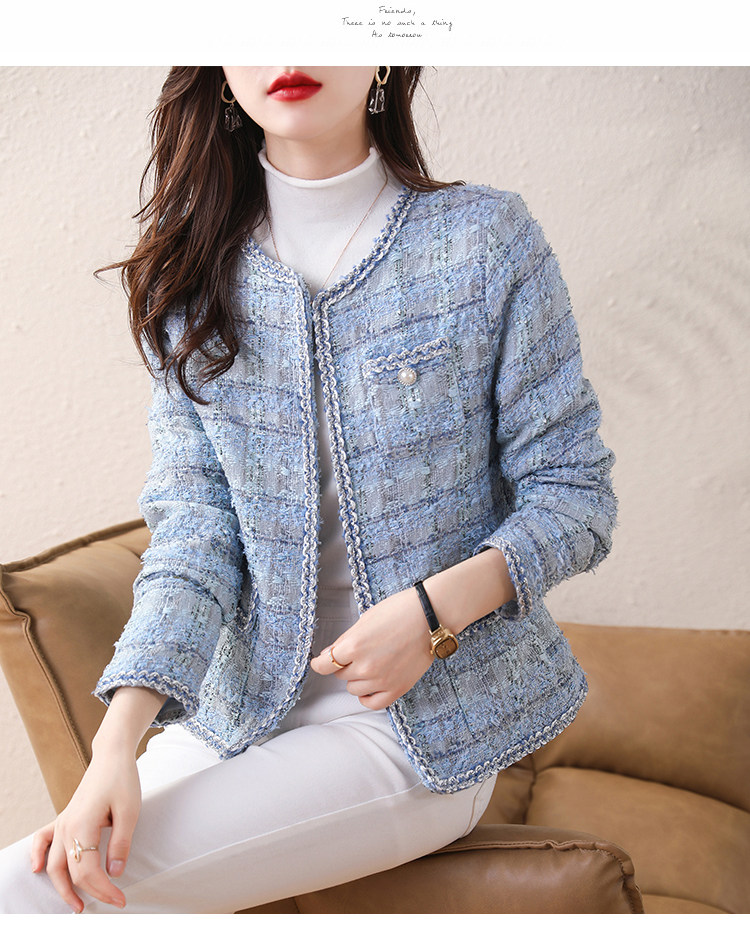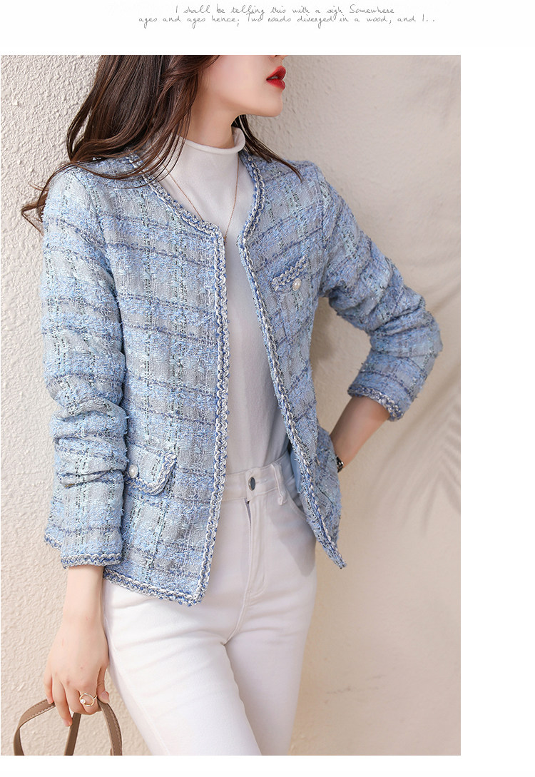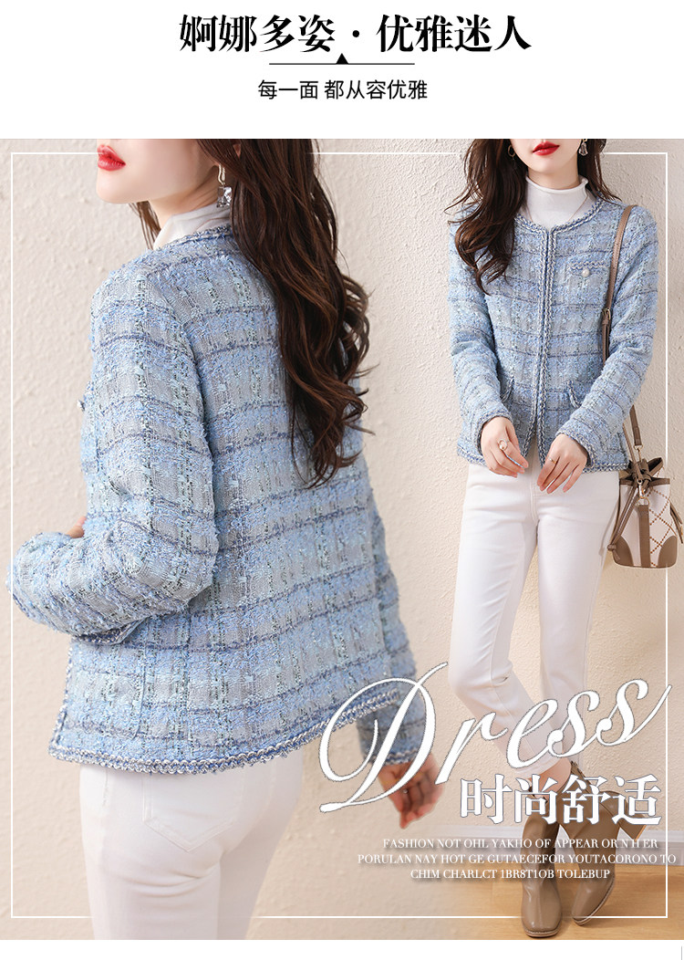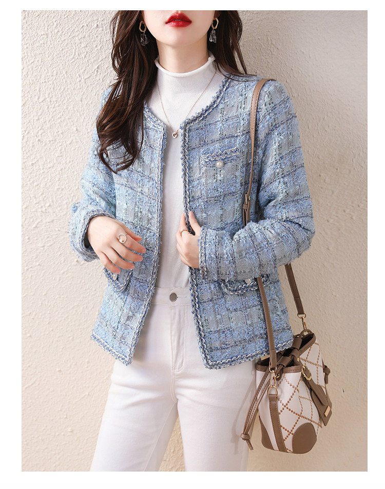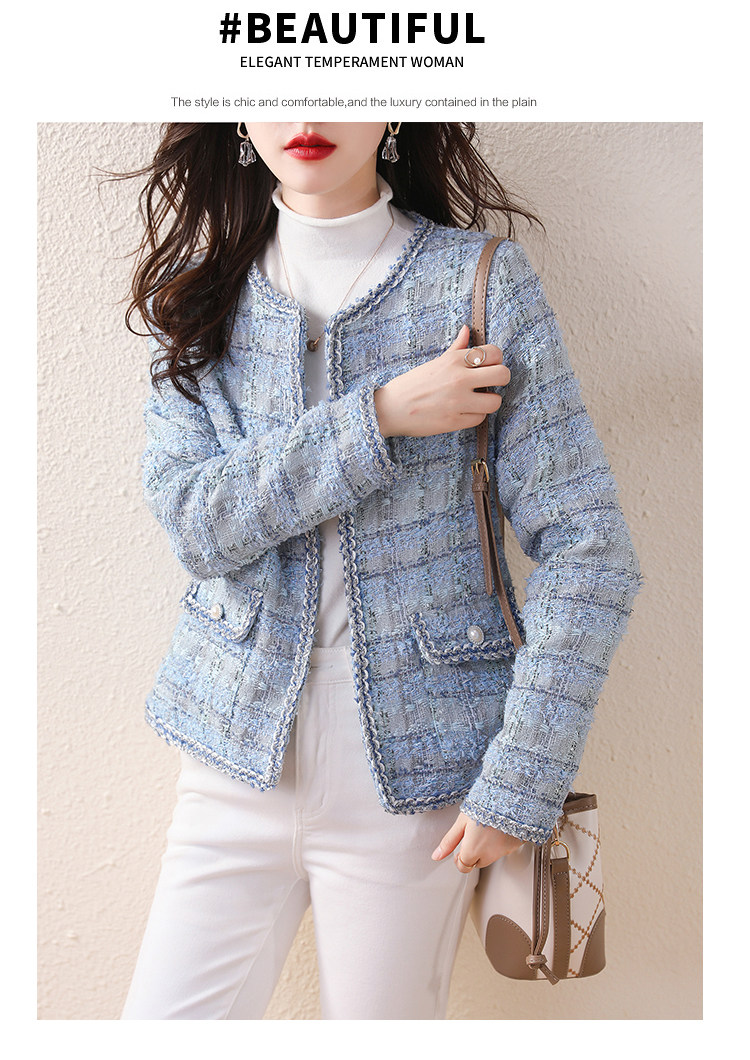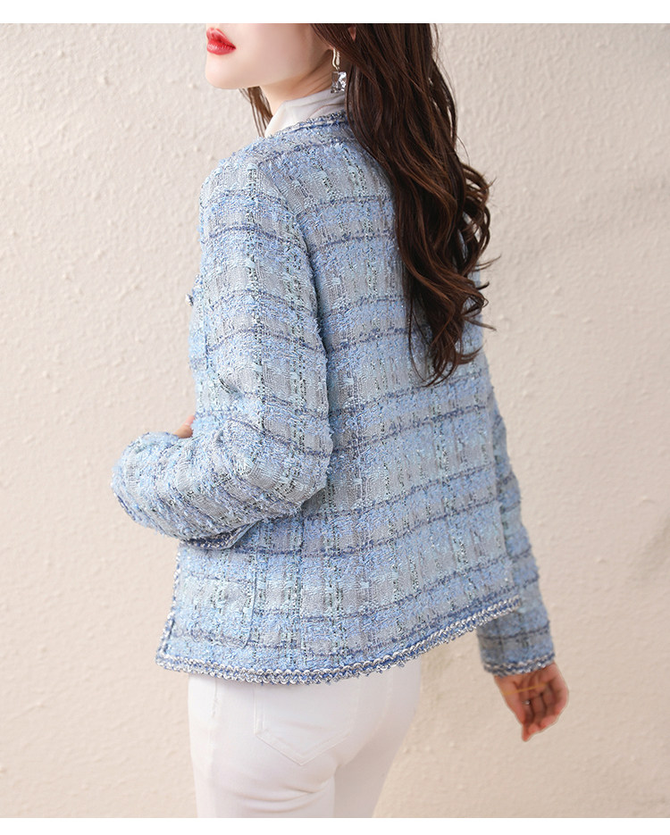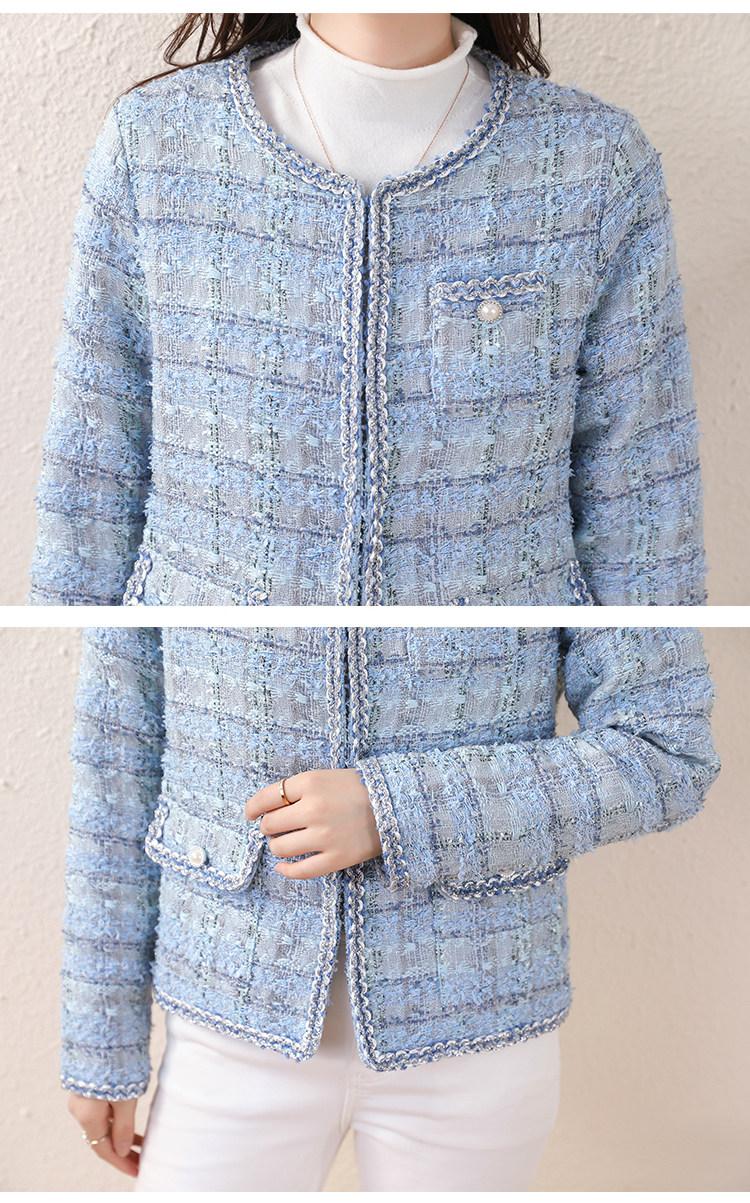 Authentic brother's new 2026 spring and autumn French blue small fragrance style high-end shaggy coat cardigan top for women