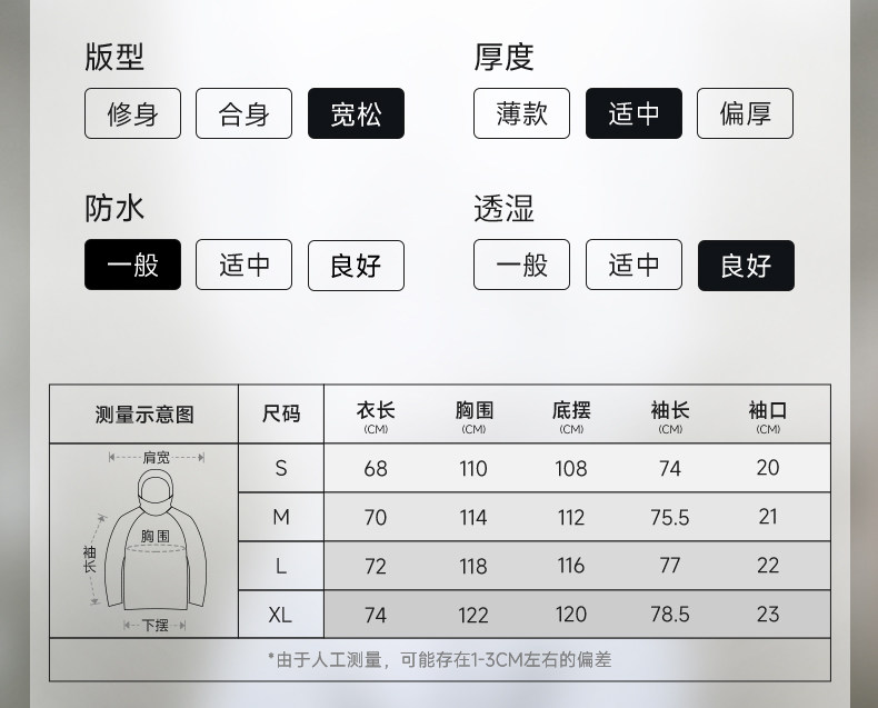 China (cm) 165 / 88-90 170 / 96-98 175 / 108-110 180 / 118-122 185 / 126-130