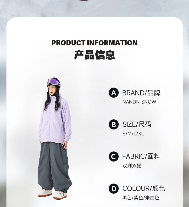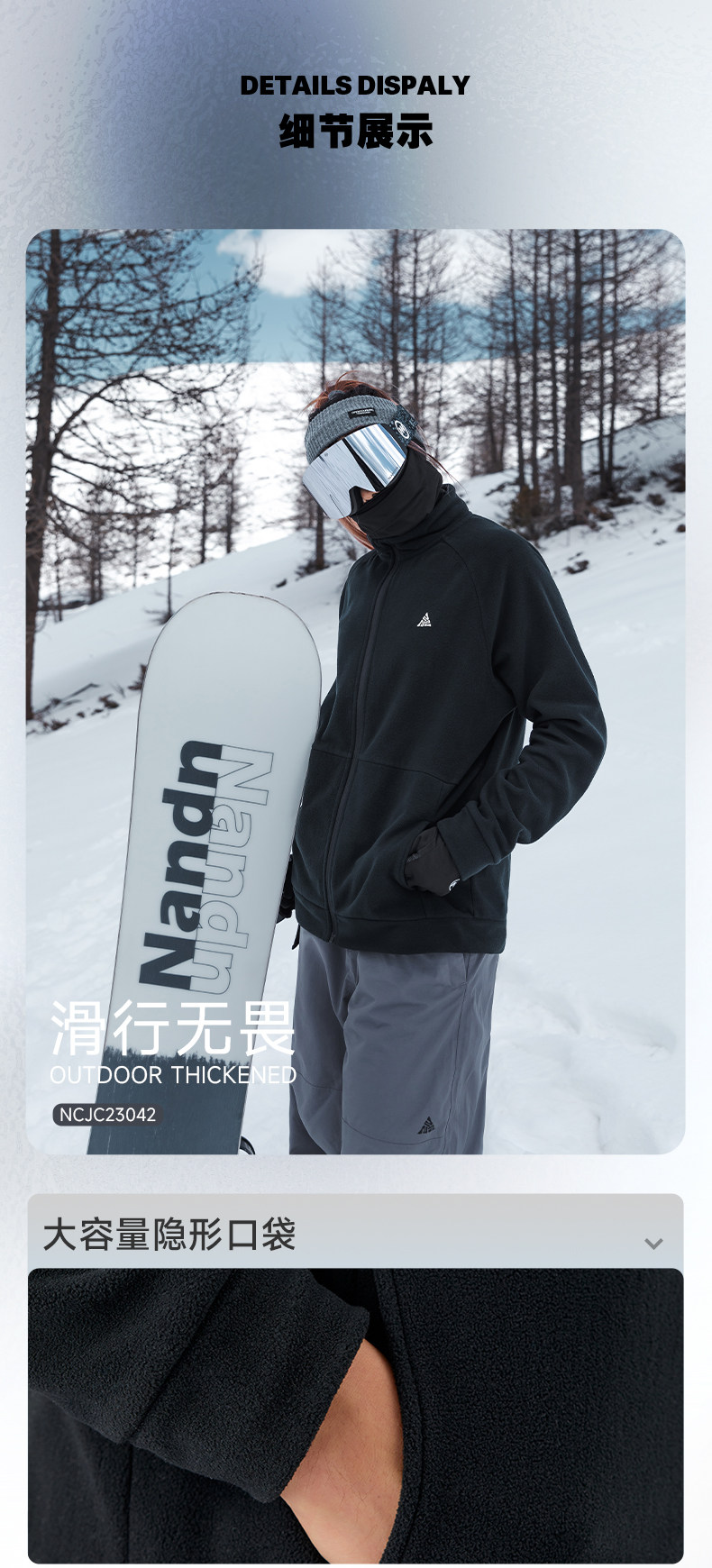 Nanen Fleece Jacket Ski Liner Warm Thickened Polar Fleece Cardigan Jacket Men's Outdoor Softshell Jacket Liner Women's Style