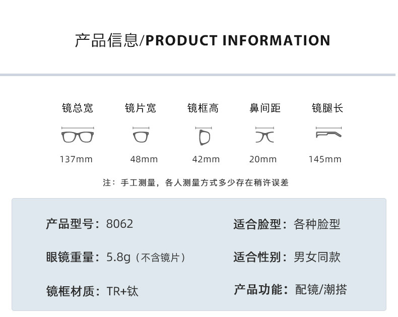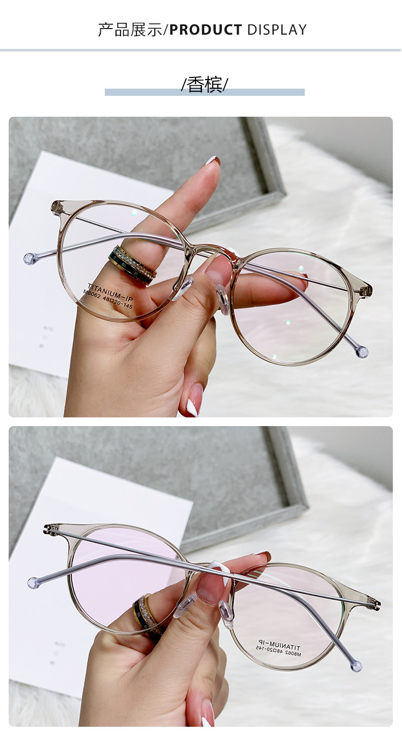 Sort by color Bright black frame,Transparent frame,Champagne frame,Gray-transparent frame,Green frame,(Gray anti-blue light flat mirror) Please leave a message for the frame color,(Brown anti-blue light flat mirror) Please leave a message for the frame color,Myopia, left and right eyes are 100 degrees each. Please leave a message for the frame color.,Myopia, left and right eyes are 150 degrees each. Please leave a message for the frame color.,Myopia, left and right eyes are 200 degrees each. Please leave a message for the frame color.,Myopia, left and right eyes are 250 degrees each. Please leave a message for the frame color.,Myopia, left and right eyes are 300 degrees each. Please leave a message for the frame color.,Equipped with 1.56 myopia lenses (please leave a message for the degree and frame color),Equipped with 1.61 myopia lenses (please leave a message for the degree and frame color),Equipped with 1.67 myopia lenses (please leave a message for the degree and frame color),Equipped with 1.56 photochromic lenses for myopia (please leave a message for the degree and frame color),Equipped with 1.61 photochromic lenses for myopia (please leave a message for the degree and frame color),Equipped with 1.67 photochromic lenses for myopia (please leave a message for the degree and frame color),Equipped with 1.56 myopia anti-blue light lenses (please leave a message for the degree and frame color),Equipped with myopia 1.61 anti-blue light lenses (please leave a message for the degree and frame color),Equipped with myopia 1.67 anti-blue light lenses (please leave a message for the degree and frame color),Equipped with myopia 1.56 color changing anti-blue light lenses (please leave a message for the degree and frame color),Equipped with myopia 1.61 color changing anti-blue light lenses (please leave a message for the degree and frame color),Equipped with myopia 1.67 color changing anti-blue light lenses (please leave a message for the degree and frame color)