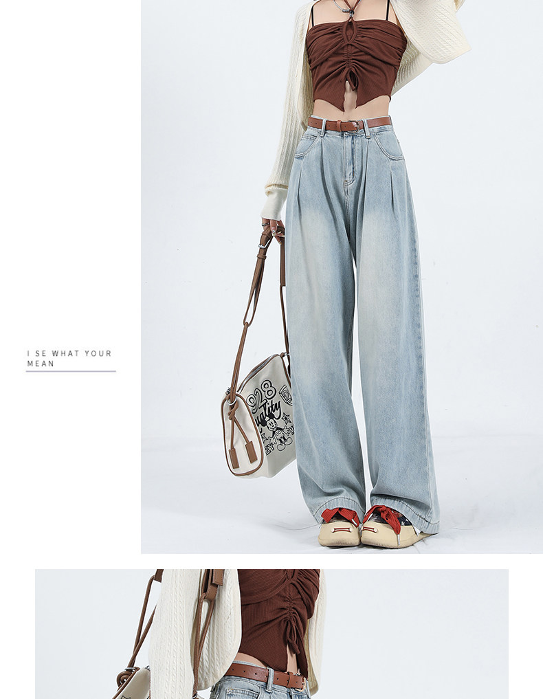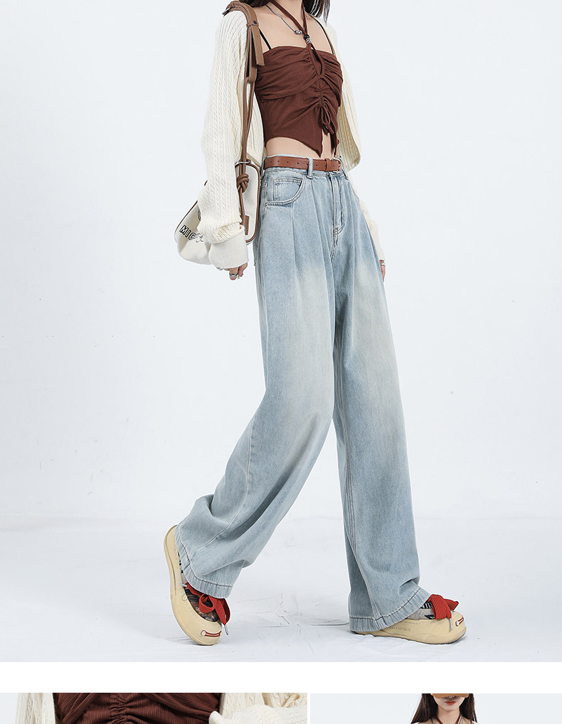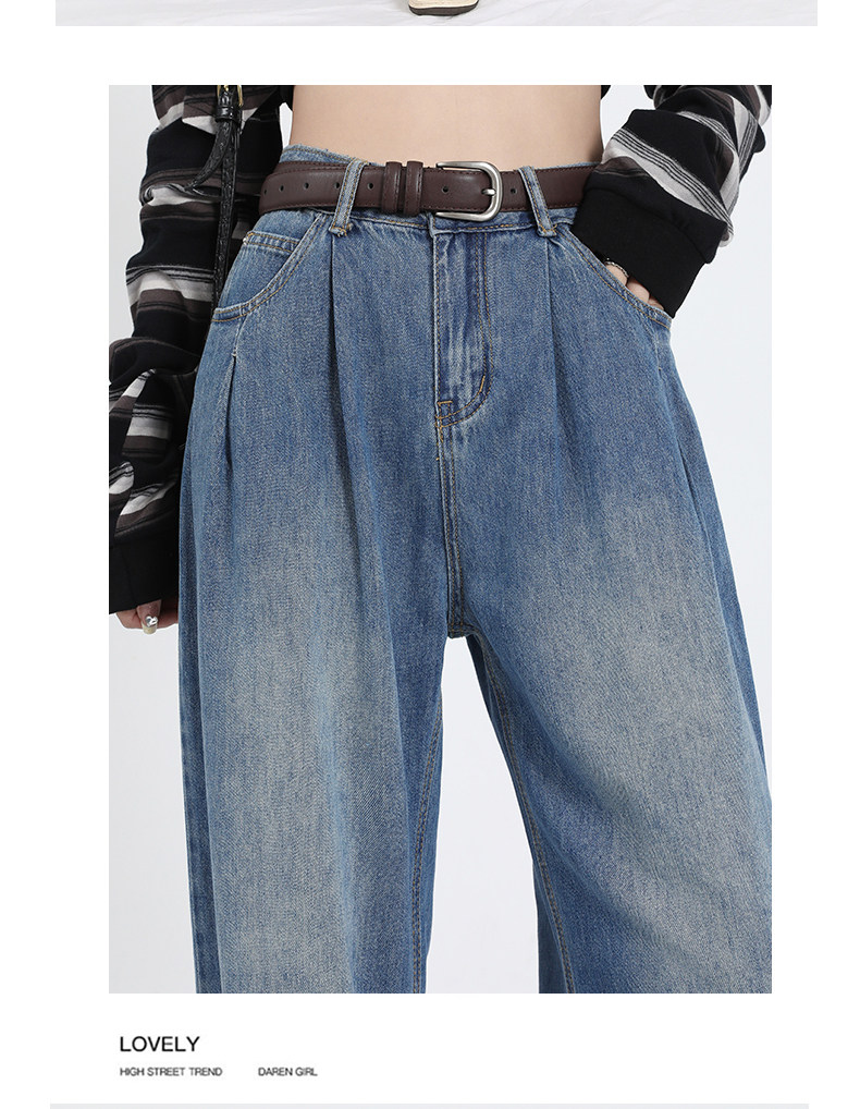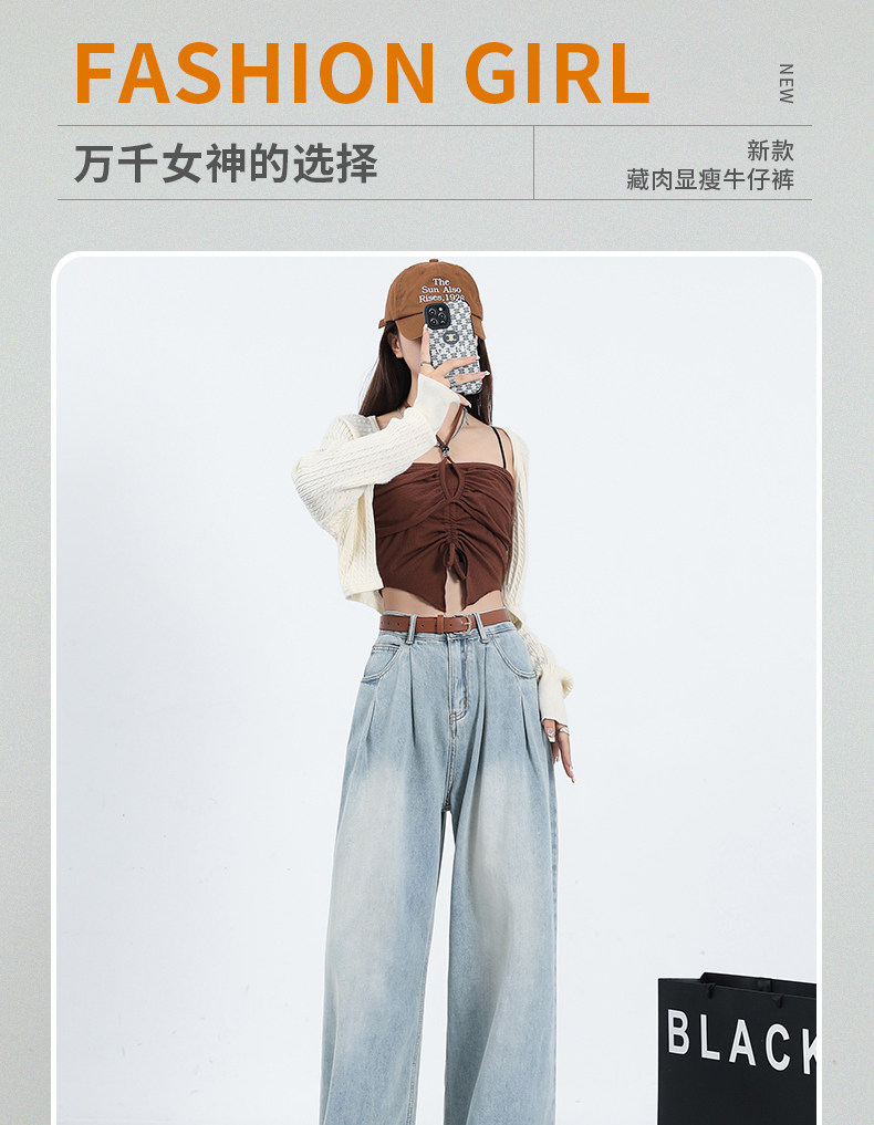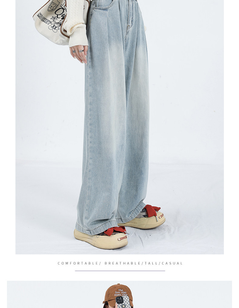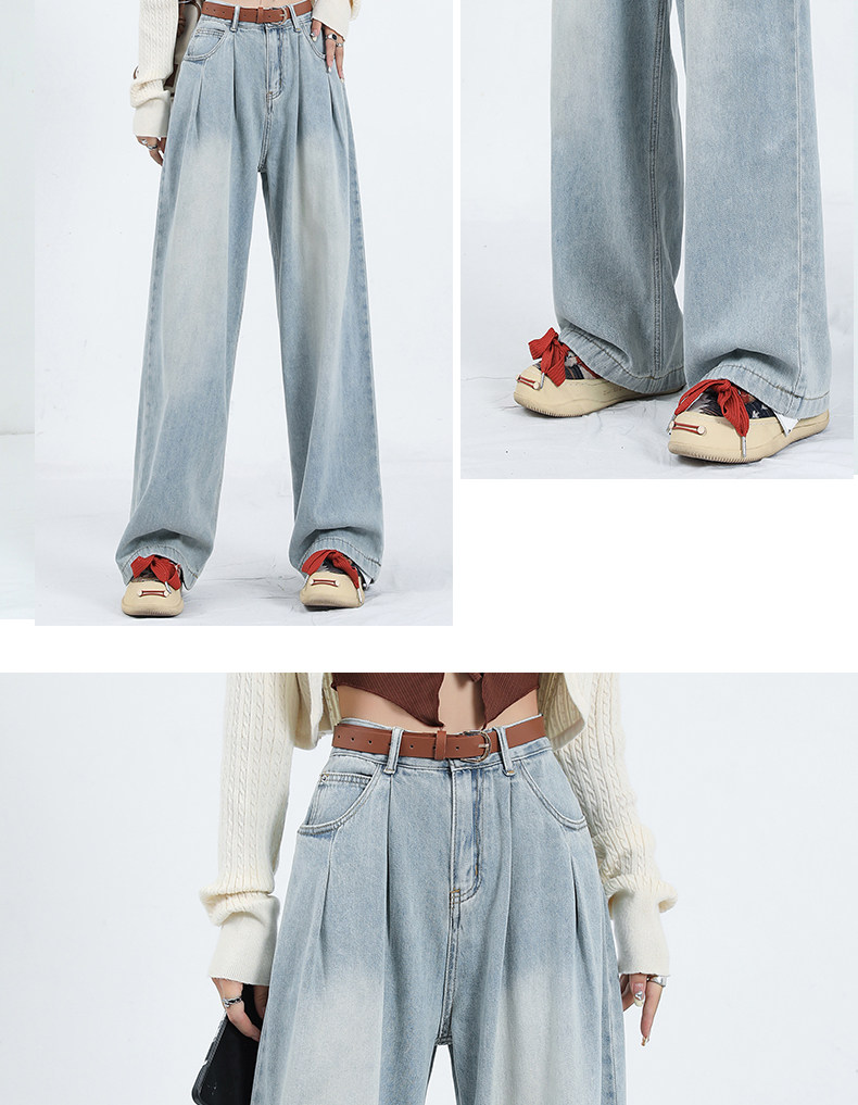 Nostalgic wide-leg jeans for women in spring and summer, loose straight high-waist pleated distressed soft super-soft drape floor-length trousers
