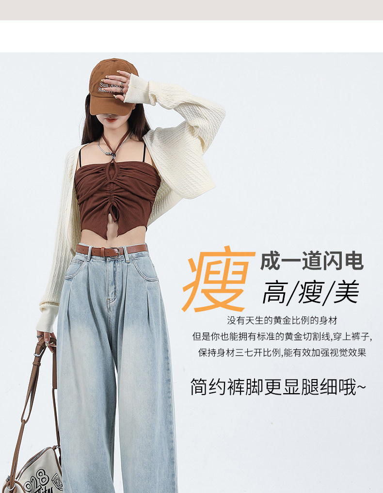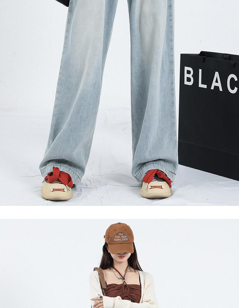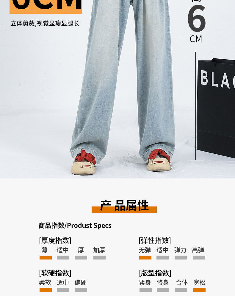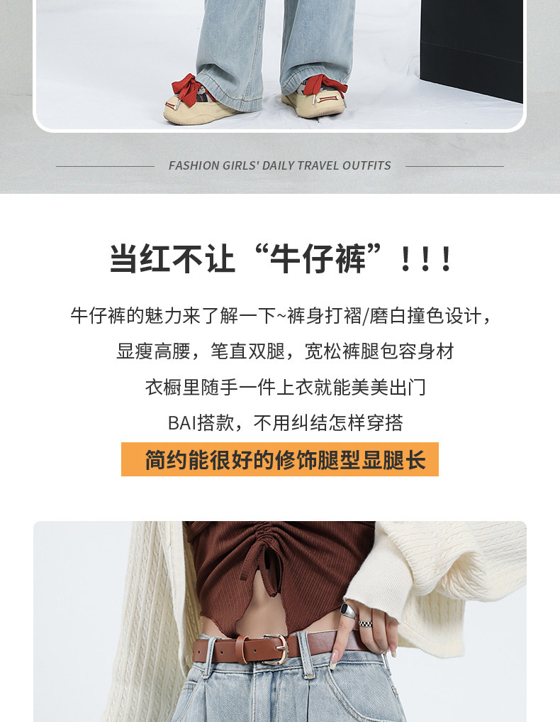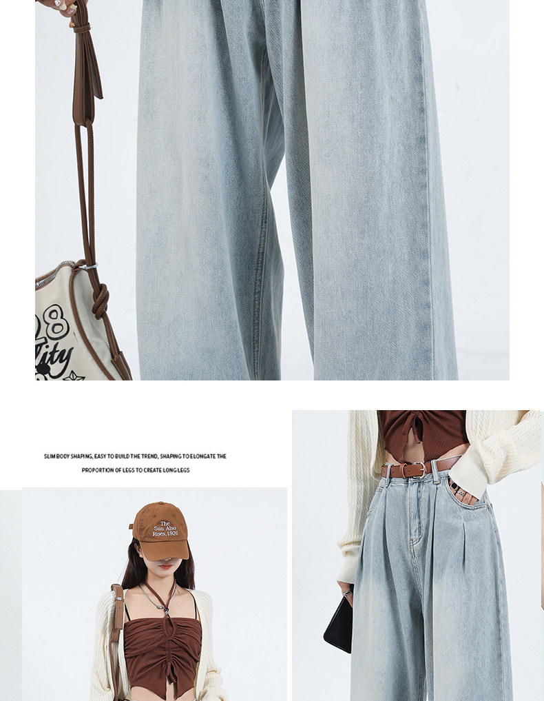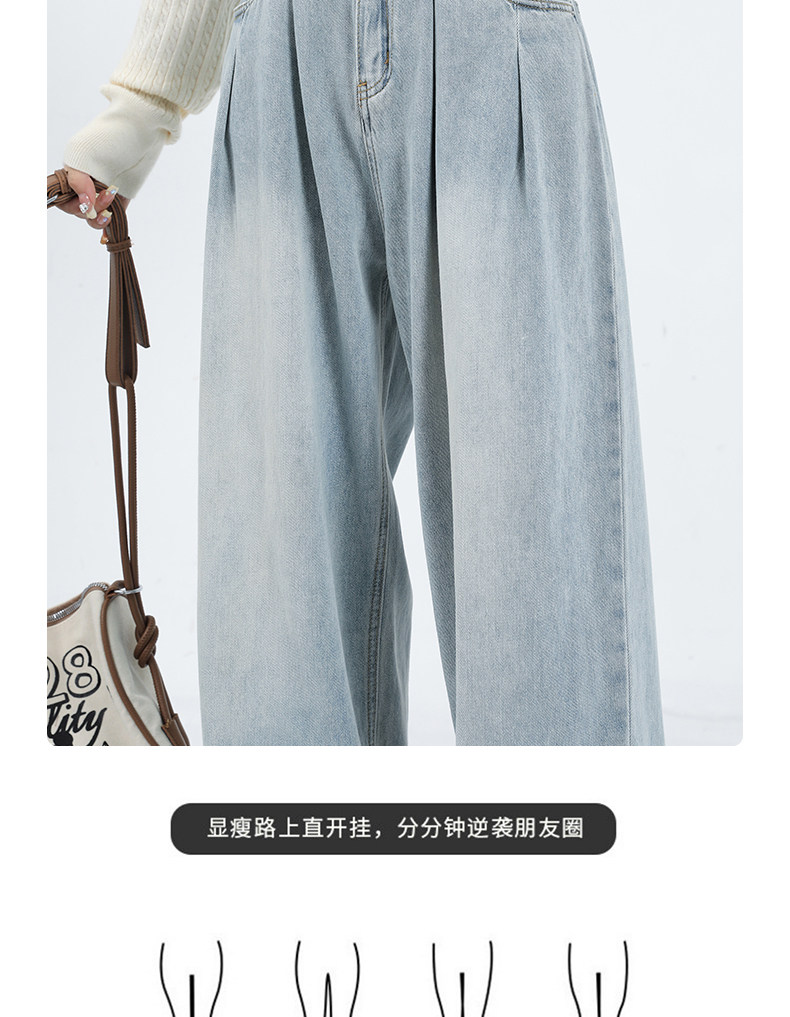 Nostalgic wide-leg jeans for women in spring and summer, loose straight high-waist pleated distressed soft super-soft drape floor-length trousers