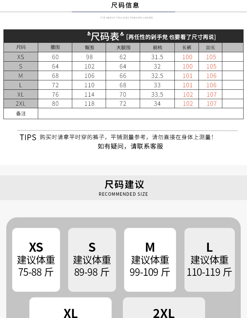 Outseam (cm) 99 cm 101.5 cm 104 cm 106.5 cm 109 cm
