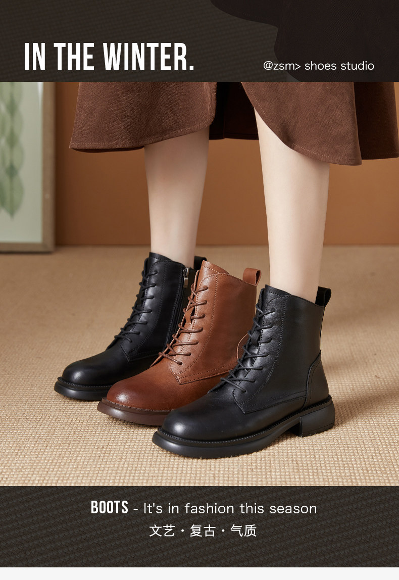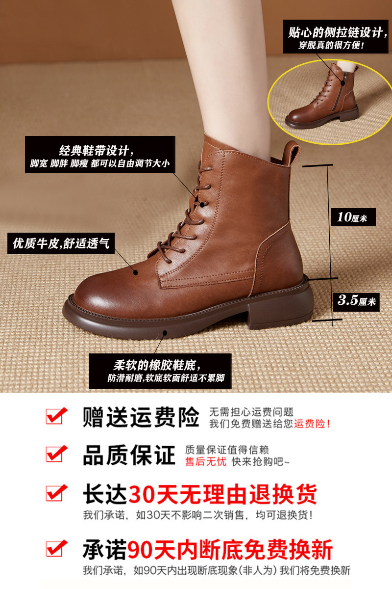 Martin Boots for Women, Spring and Autumn Single Boots, 2025 New Style, British Style Short Boots, Genuine Leather, Soft Sole, Soft Leather, Winter Fleece-Lined Boots