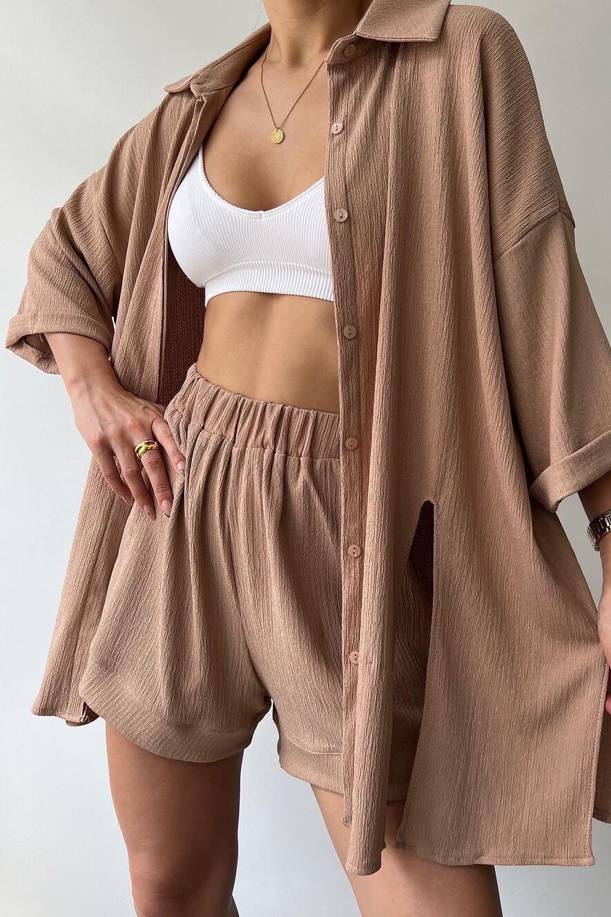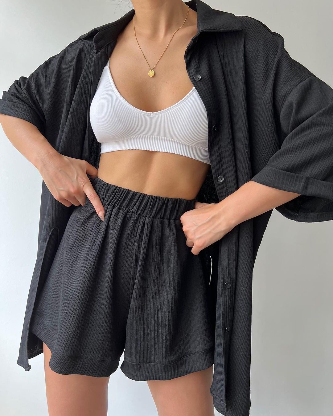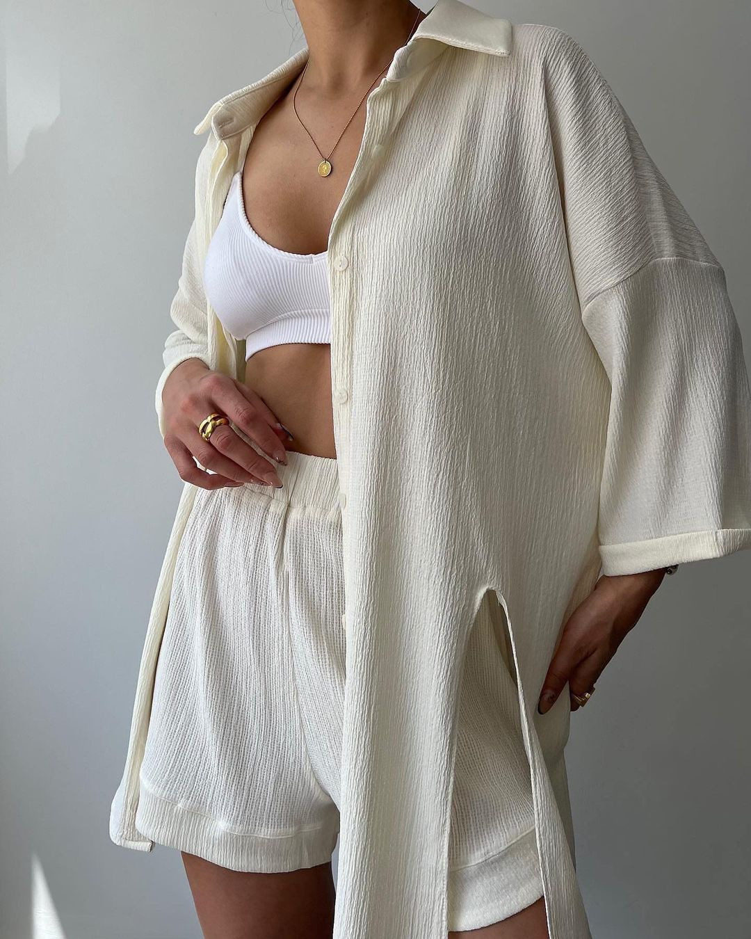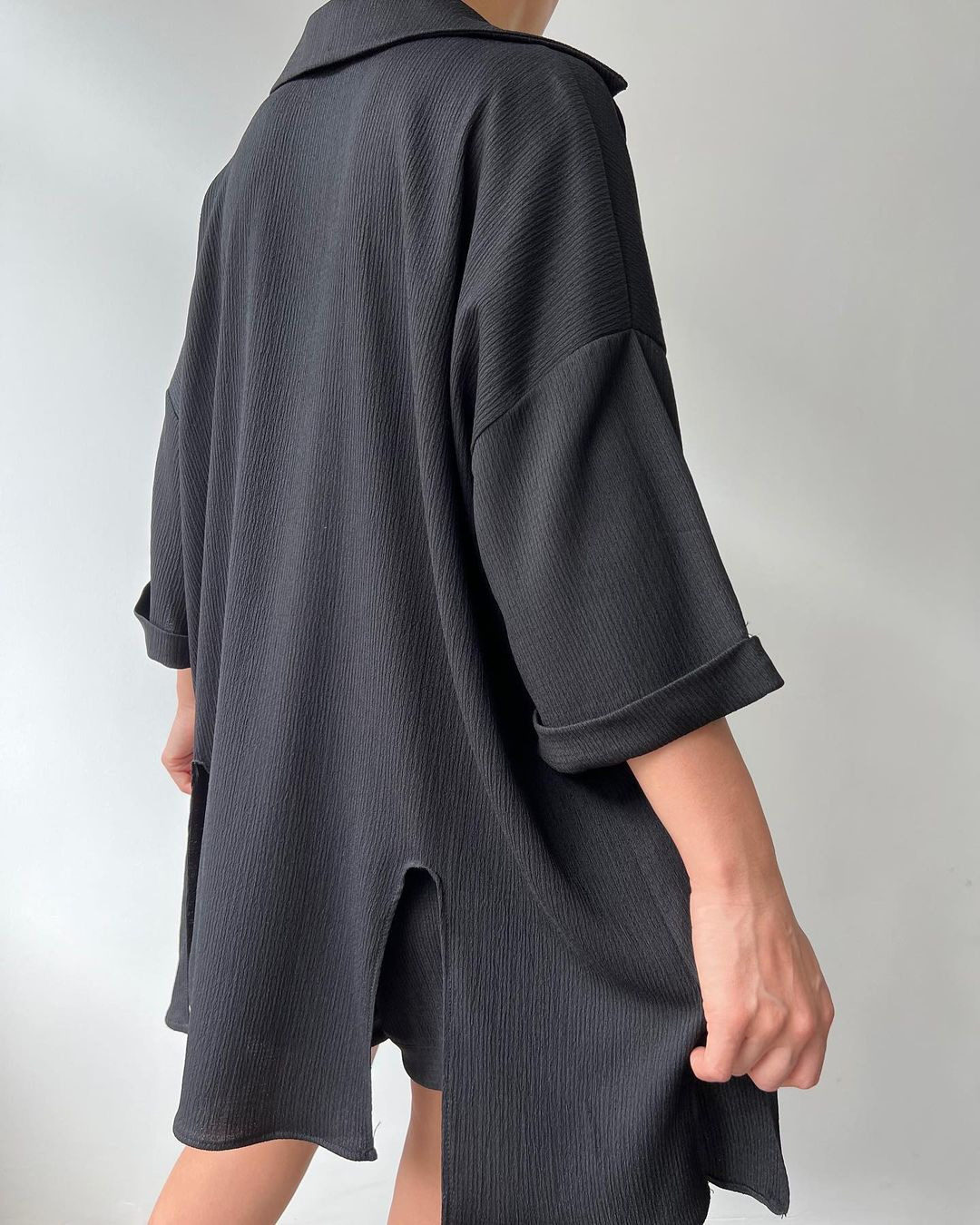 Casual shirt and shorts set 2023 European and American personalized slit mid-sleeve shirt shorts set