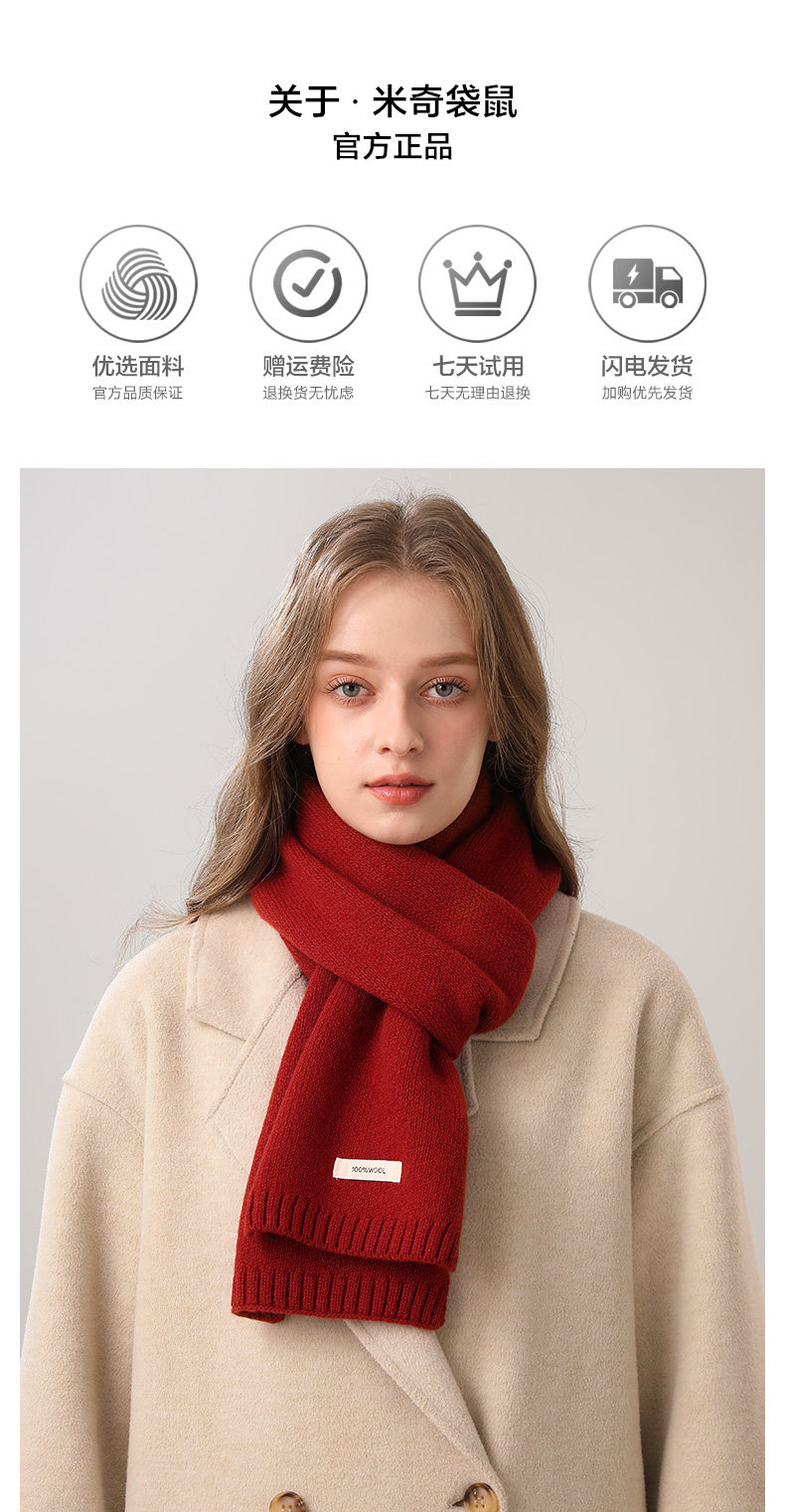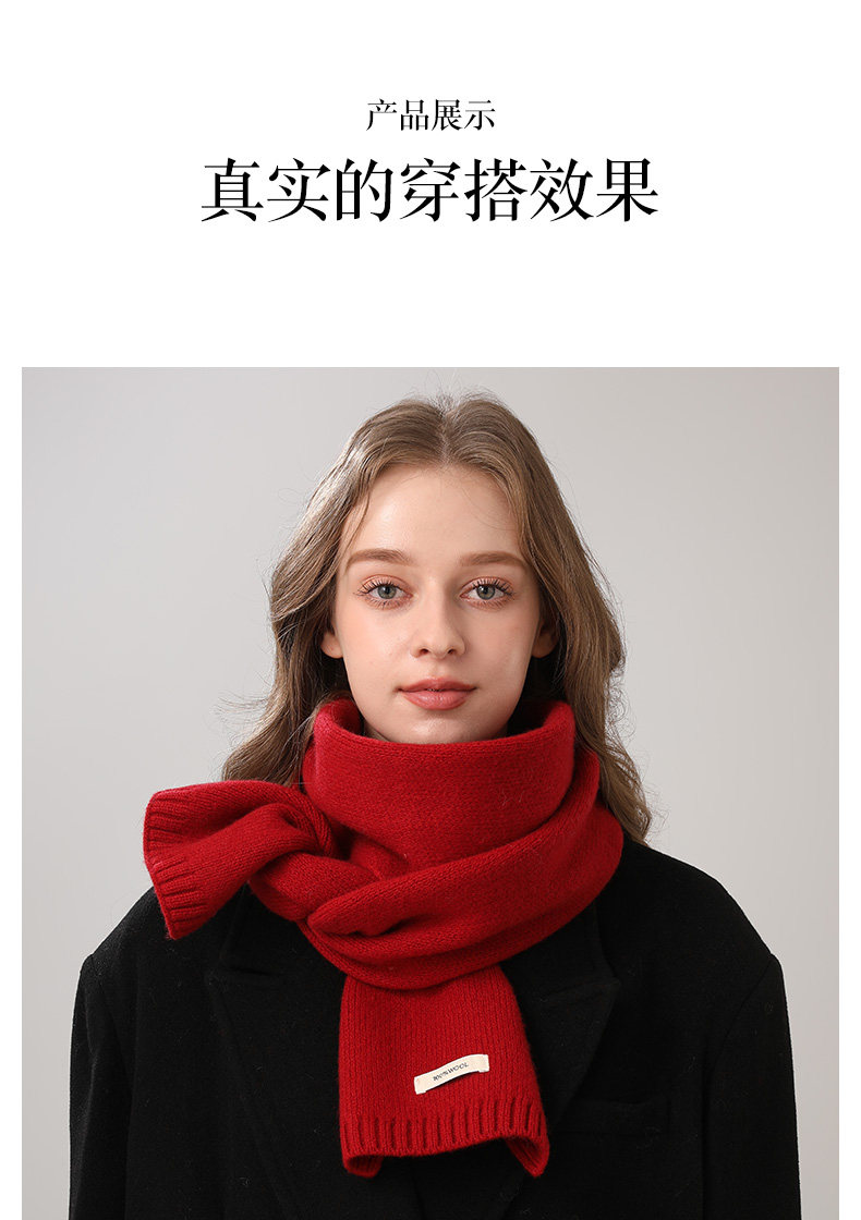100% merino wool red scarf women's 2026 new winter thick knitted cashmere scarf new year's gift