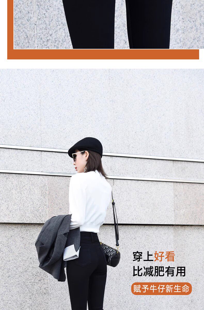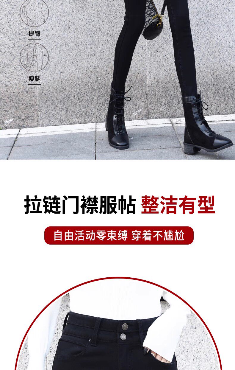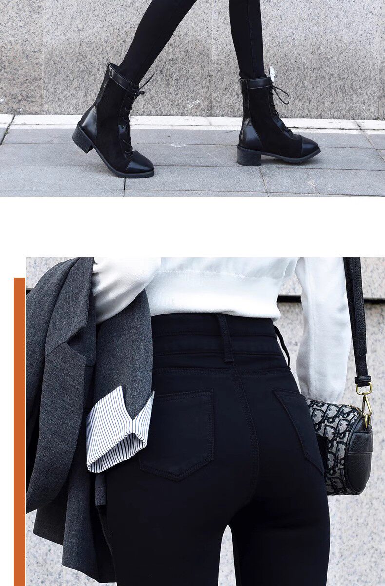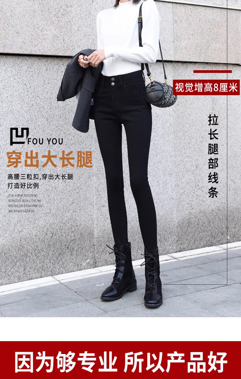 Black High-Waisted Fleece-Lined Skinny Jeans for Women, Slim-Fit, Stretchy, Suitable for Fall and Winter 2025, Ankle-Length