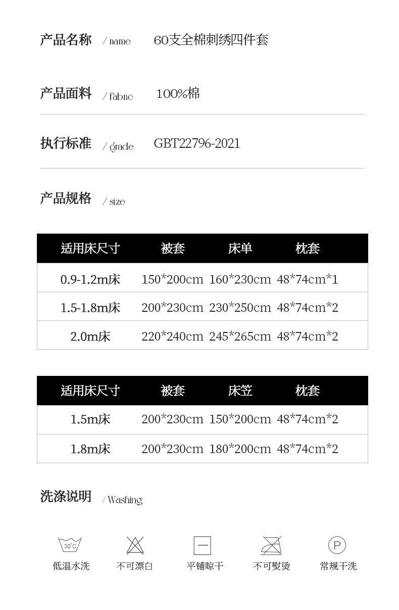 Applicable bed size 0.9m bed sheet three-piece set suitable for 150x200cm quilt,1.2m bed sheet three-piece set suitable for 150x200cm quilt,1.5m bed sheet four-piece set suitable for 200x230cm quilt,1.8m bed sheet four-piece set suitable for 200x230cm quilt,2.0m bed sheet four-piece set suitable for 220x240cm quilt,1.5m bed, four-piece set for fittings, suitable for 200x230cm quilt,1.8m bed, four-piece set, suitable for 200x230cm quilt