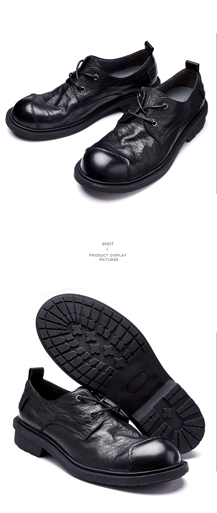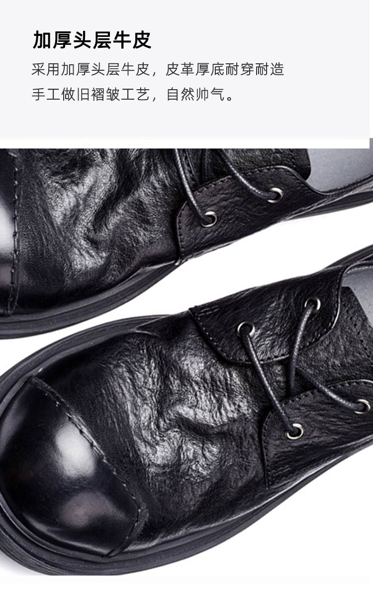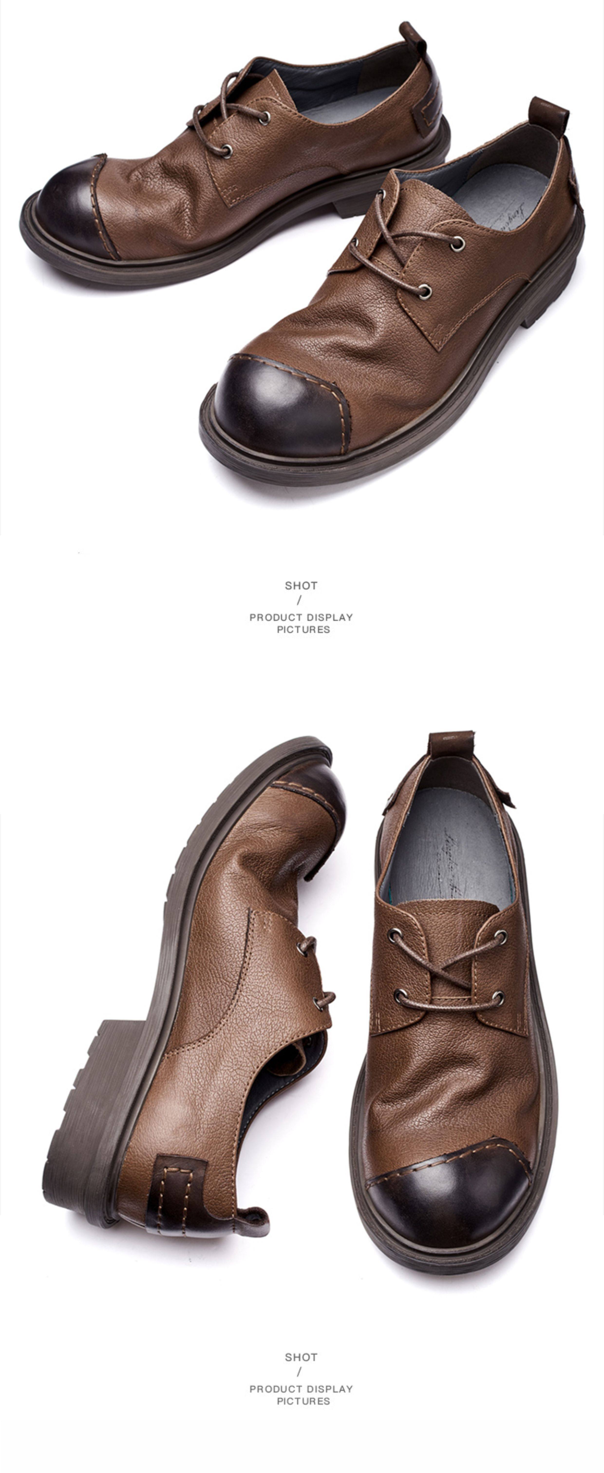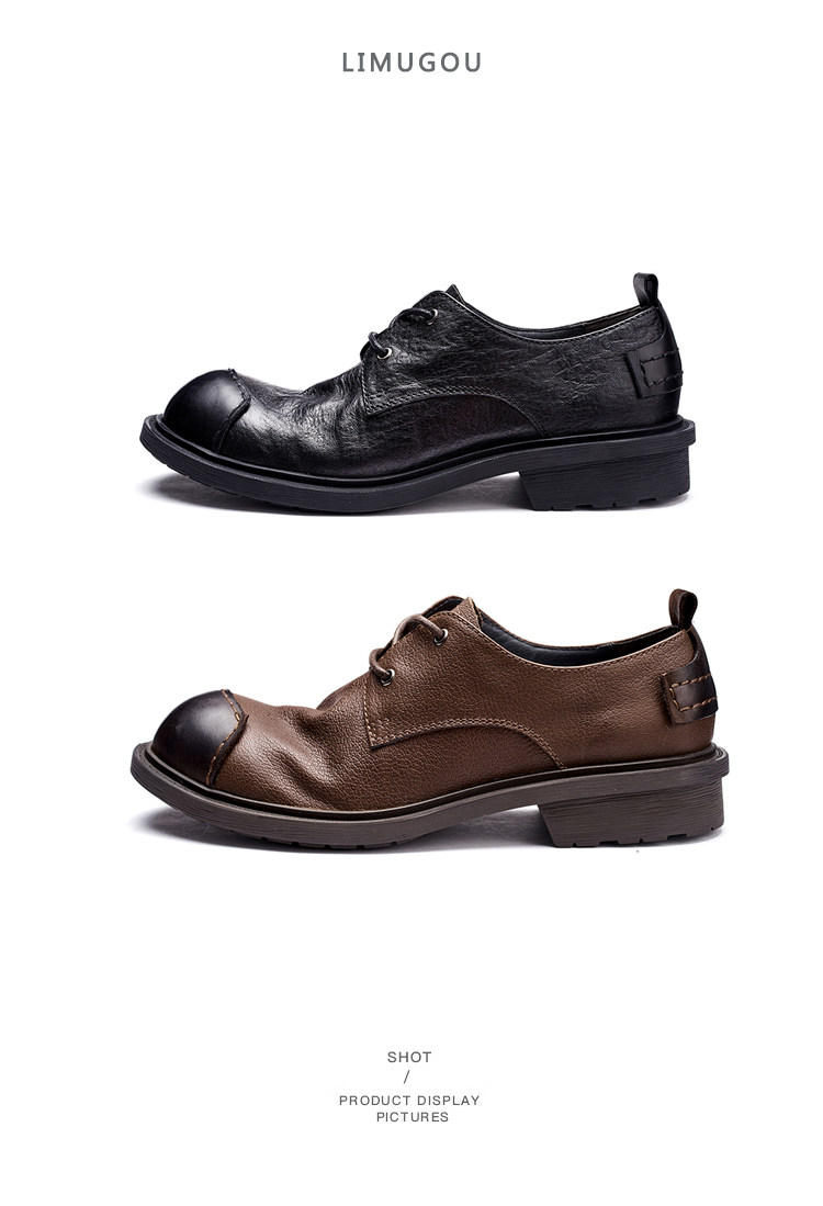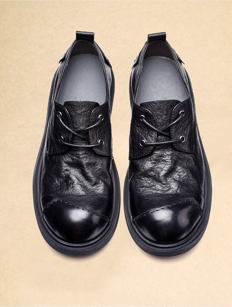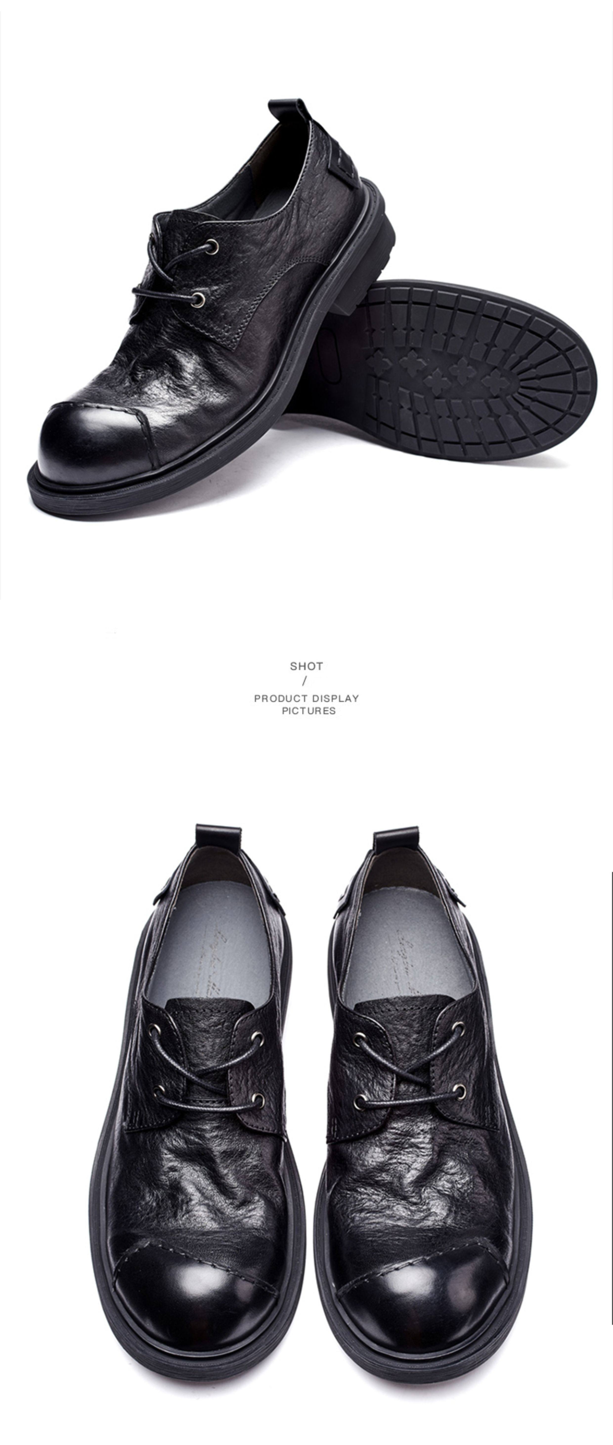 Casual Leather Shoes for Men, Genuine Leather, High-End, Large Toe, Business Formal Wear, Black, Retro British Style, Round Toe, Soft Leather, Handmade Men's Shoes