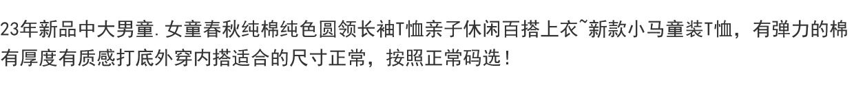 23Rd Year New Product, Medium and Large Boys' and Girls' Spring and Autumn Pure Cotton Solid Color Round Neck Long-Sleeved T-Shirt, Parent-Child Casual Versatile Top