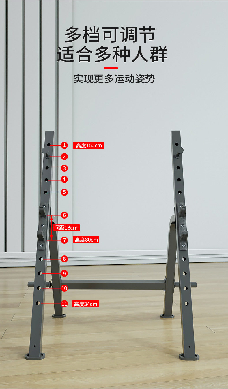 Men's Fitness Home-Use Bench Press Rack Squat Rack Gym-Style Commercial Weightlifting Bench Adjustable Multi-Functional Bench Press